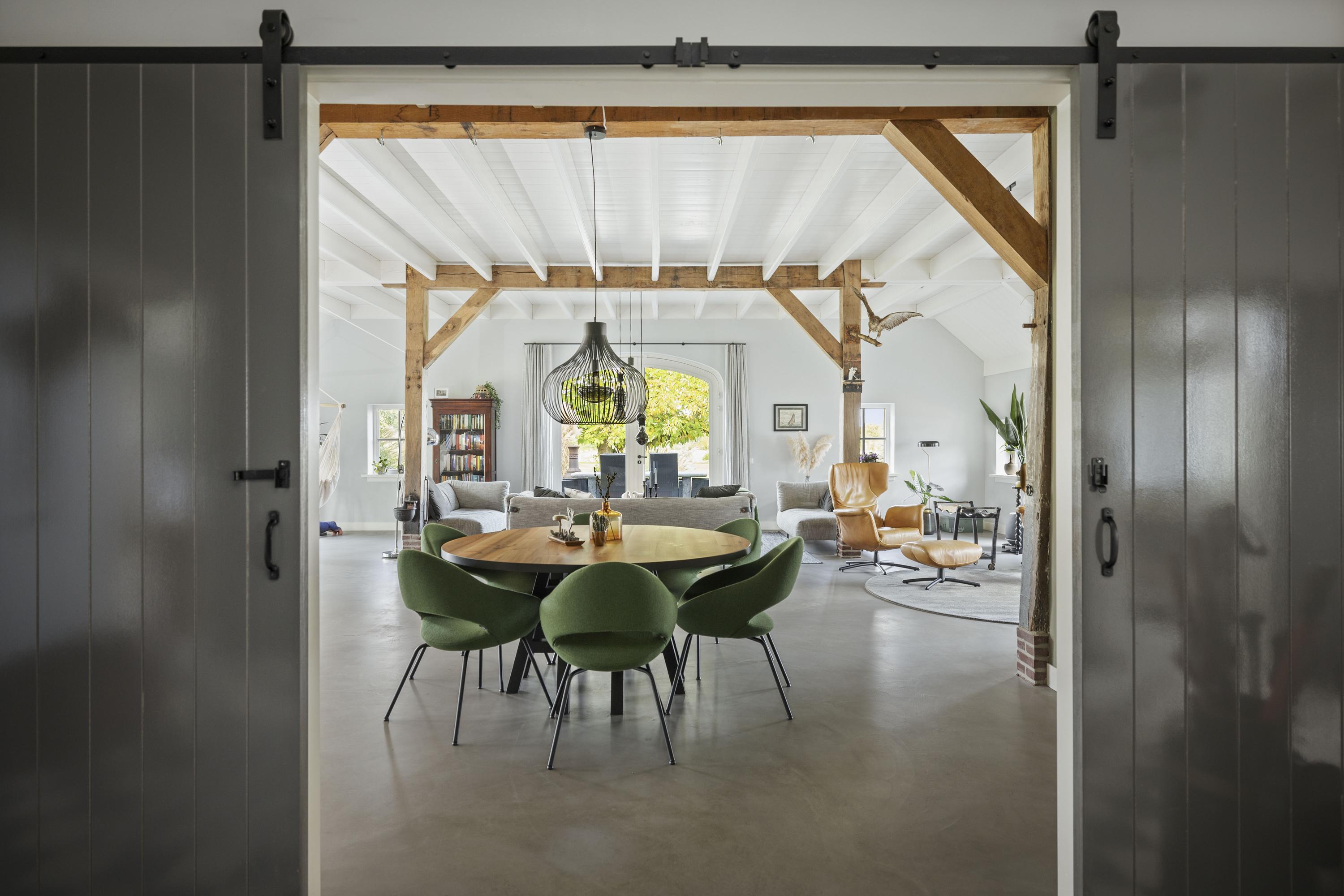 De keuken is maatwerk van Scheffer Keukens Zelhem en is ronduit indrukwekkend; met een dik, composiet werkblad, robuuste massief eiken fronten en alle moderne inbouwapparatuur – van inductieplaat tot Quooker - is het een heerlijke plek om je als chef-kok uit te leven. In de oude schouw staat nog een stoere Nordic Fire-houtkachel, die de keuken voorziet van extra sfeer en warmte.
