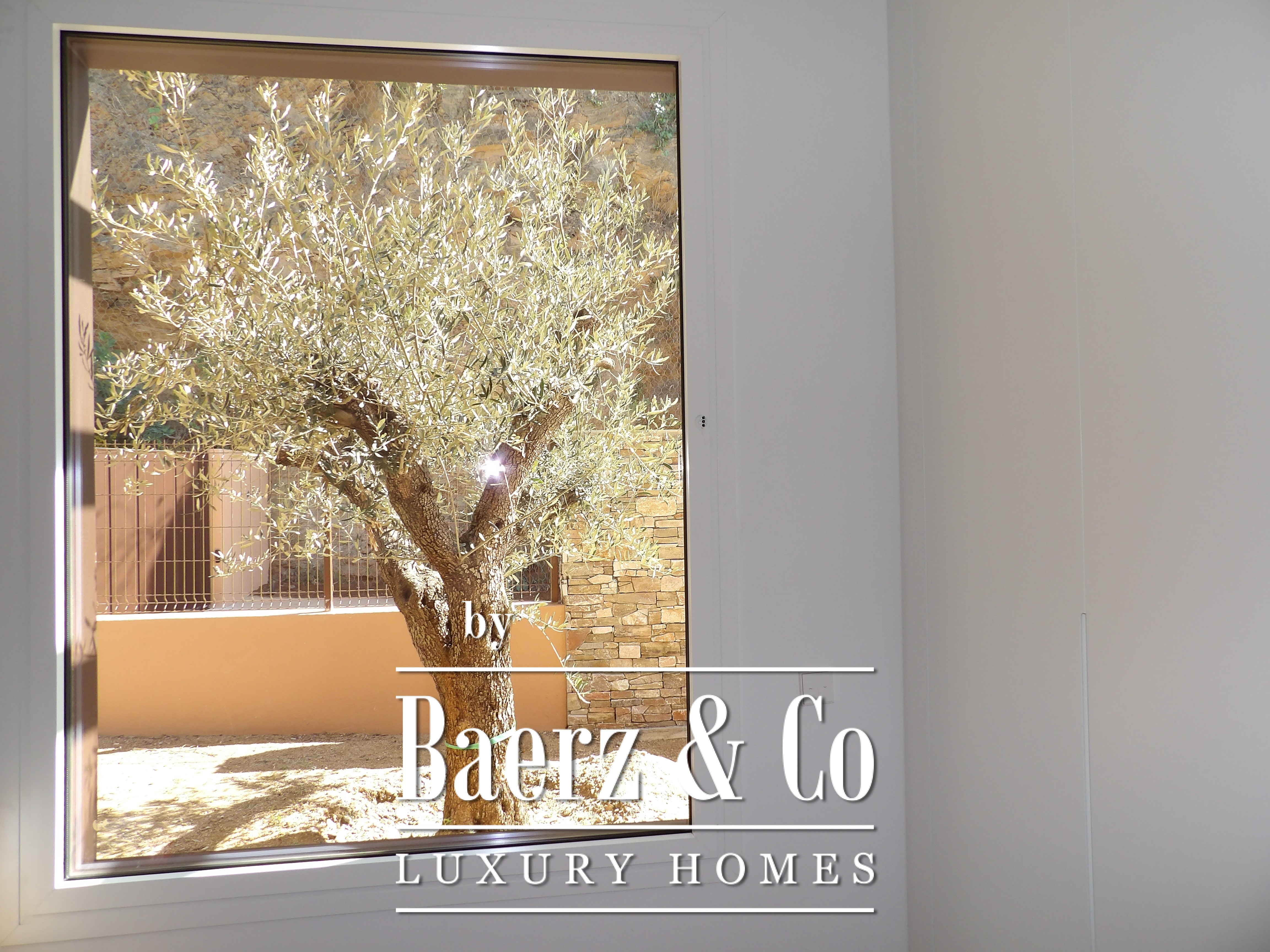 Binnen de 329 m² woonoppervlakte combineert de villa open interieurs met duurzame materialen, waarbij kamerhoge ramen iedere ruimte verbinden met zee en hemel. De architectuur kenmerkt zich door helderheid en ingetogenheid, gericht op individuele wensen, waardoor elke woning net zo uniek is als het omliggende landschap. De villa beschikt over vier slaapkamers, drie badkamers, een zorgvuldig aangelegde tuin, zwembad, privéparkeerplaats en een dakterras. Slimme domotica, beveiligingssystemen, airconditioning en een aparte speelkamer maken het geheel compleet.