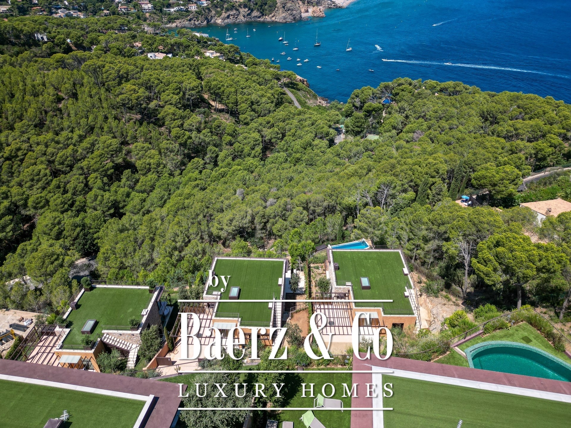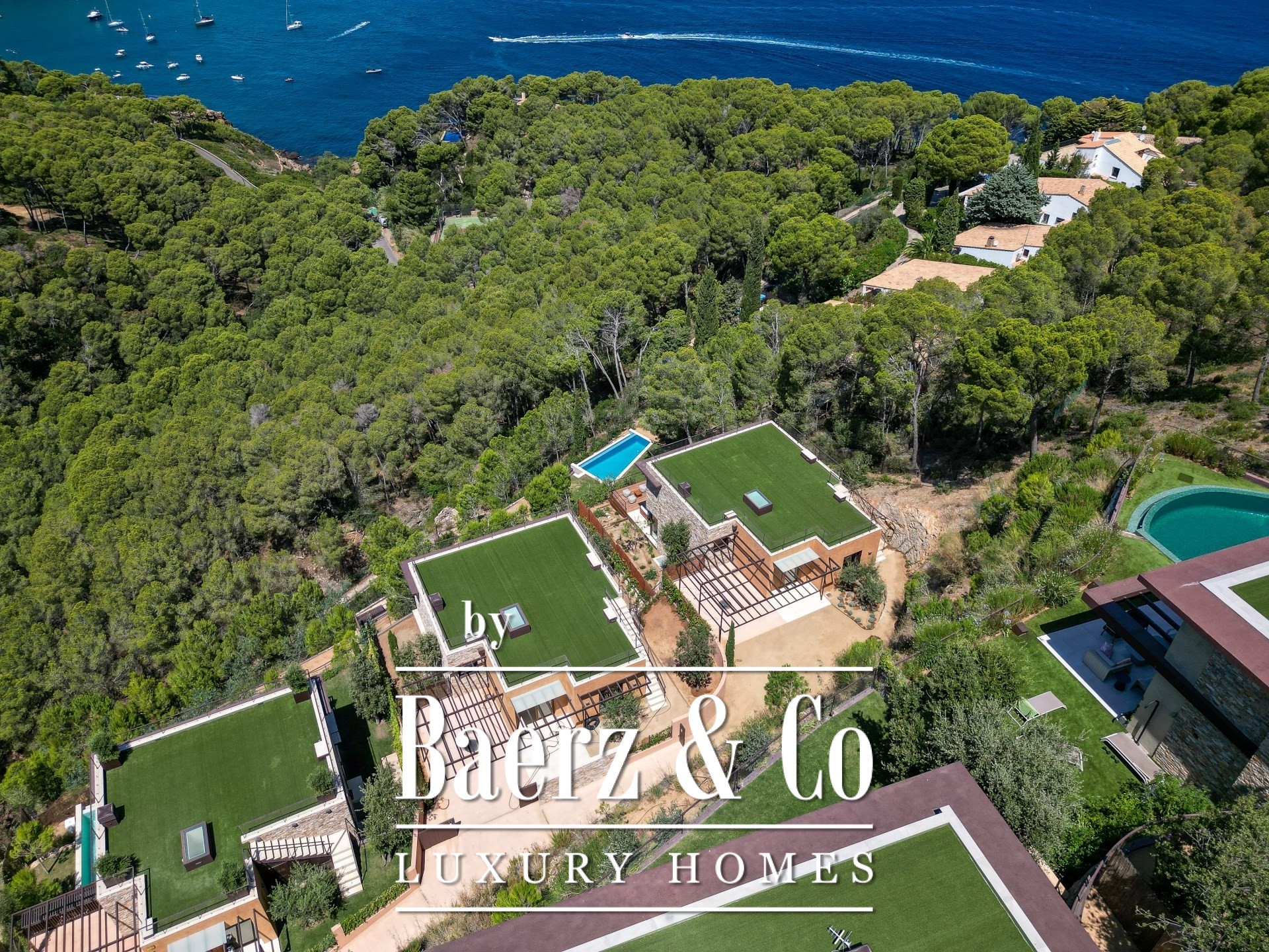 Villa Begur ligt rustig boven de pijnboomrijke kliffen van Sa Riera en biedt onbelemmerd uitzicht op de Middellandse Zee en de verre toppen van de Pyreneeën. Deze villa maakt deel uit van een exclusief ensemble van slechts zes eigentijdse woningen, elk ontworpen in harmonie met het natuurlijke ritme van de kust van de Costa Brava.