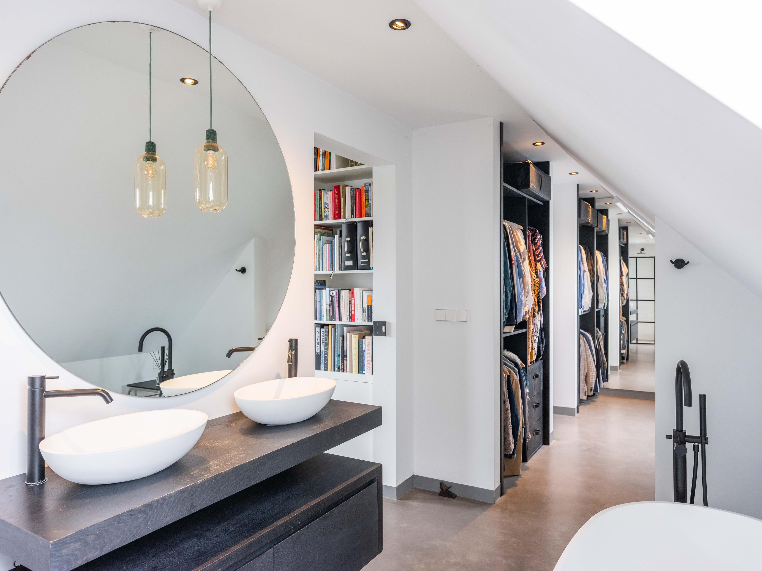 Op de verdieping bevinden zich de slaapkamers en 2 stijlvolle, moderne badkamers. Deze zijn ontworpen met oog voor comfort en gebruiksgemak. Door de hele woning is volop ingebouwde -op maat gemaakte- kastruimte aanwezig en er is een prettige werkplek gecreëerd op de entresol.