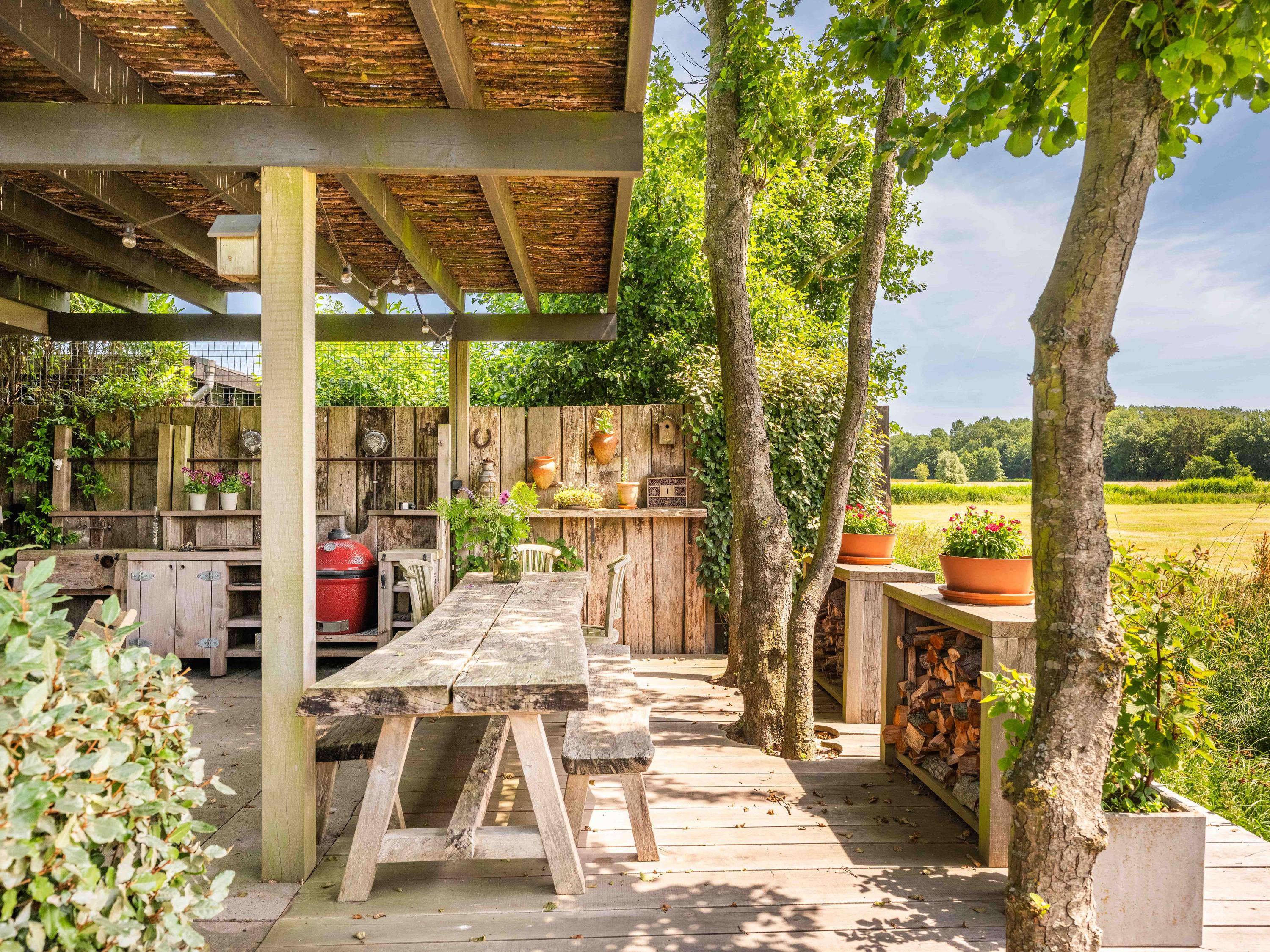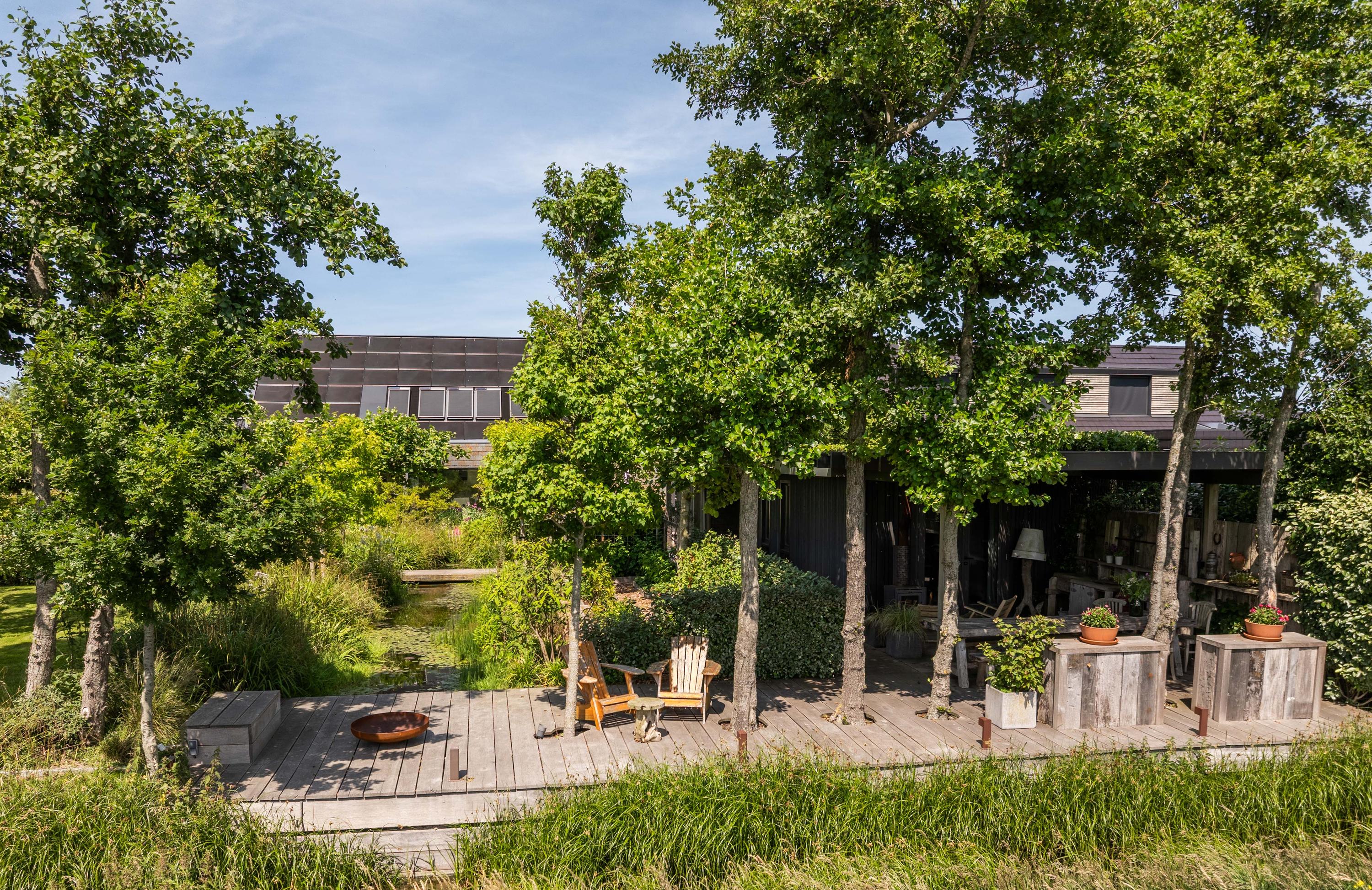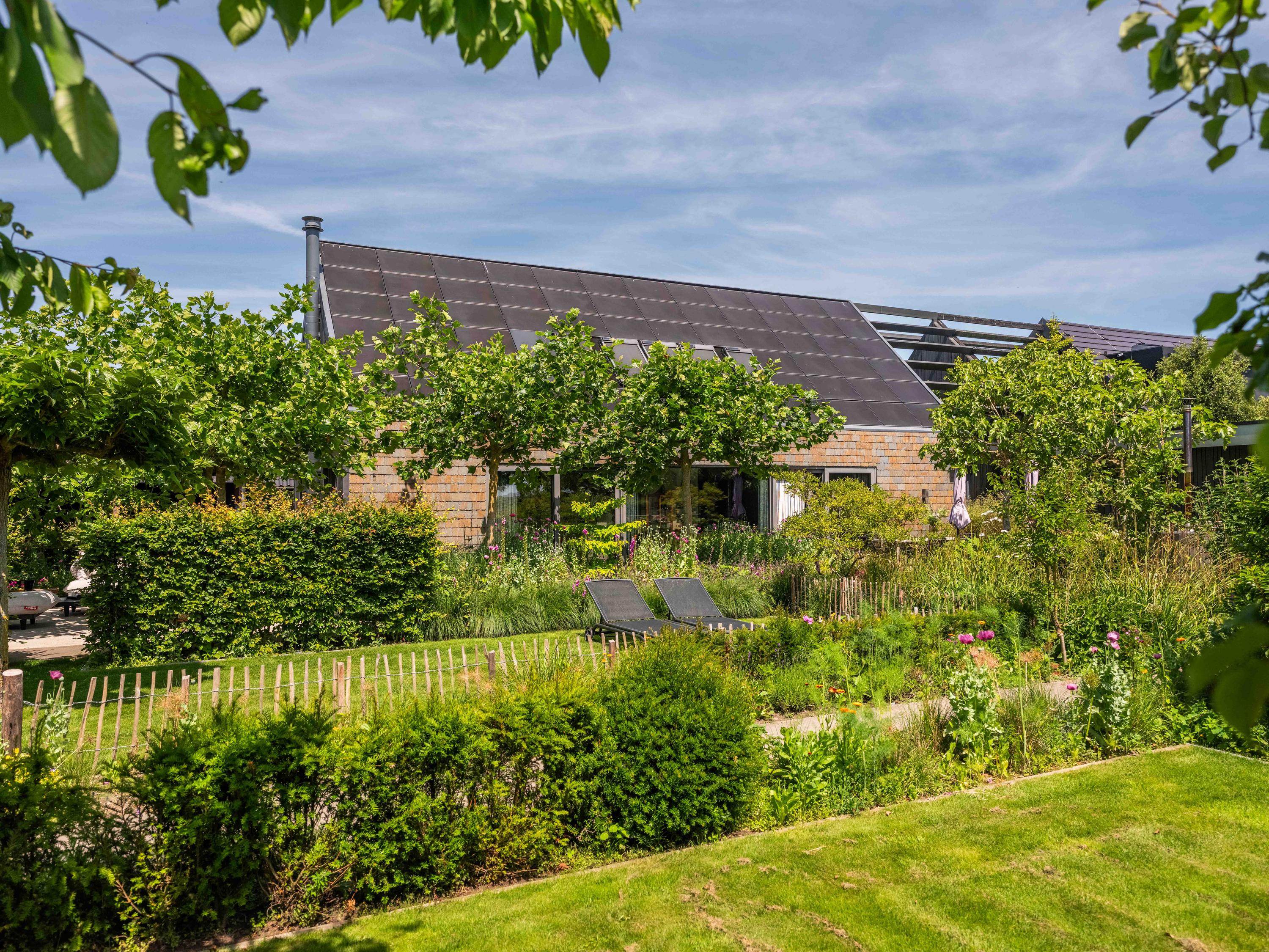 Een groot bijgebouw is multifunctioneel en kan naar wens worden ingericht als bijvoorbeeld atelier, relaxruimte of sportruimte. Hier bevindt zich ook een grote opbergruimte met de technische voorzieningen. Het huis is elektrisch uitgerust met een warmte pomp, warmte-terug-win-unit, 62 zonnepanelen, HR+++ glas, dus het hele huis is optimaal geïsoleerd. Hierdoor is deze woning voorzien van een heus A++++ label, wat betekent dat de energiekosten vrijwel nihil zijn. Vanuit het buitengebouw geniet u van het fantastische uitzicht over de weilanden. Aan de weilanden achter het huis is ook de buitenkeuken gesitueerd met een grote vlonder die ruimte biedt voor ontspanning en rust.