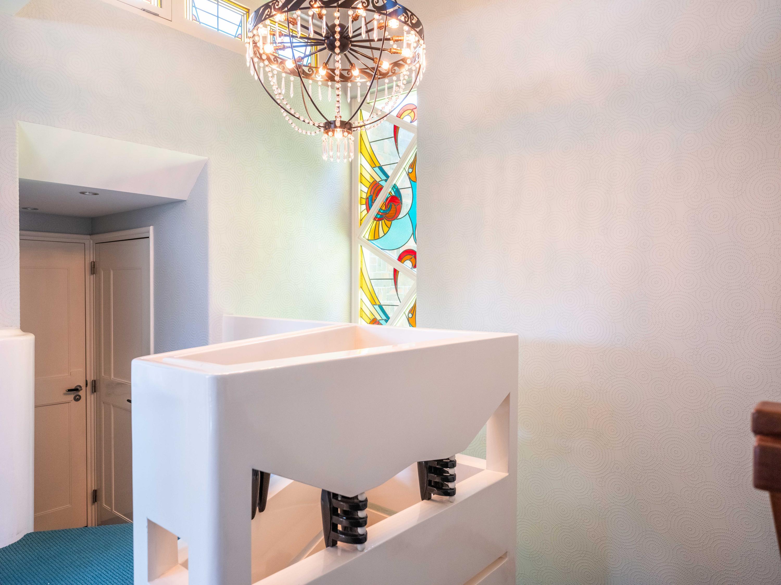 Via de trap met Amsterdamse School ornamenten en prachtig glas-in-lood raampartijen komen we op de 1e verdieping. Hier zijn 3 ruime slaapkamers gelegen waarvan de ouderslaapkamer met gashaard, inloopkast en een balkon met uitzicht op de groene tuin en de prachtige bomen. Ook op de overloop gelegen, enkele treden lager, een separaat toilet en een ruime badkamer met ligbad, douche, brede wastafel en een ruimte voor de wasmachine en droger.