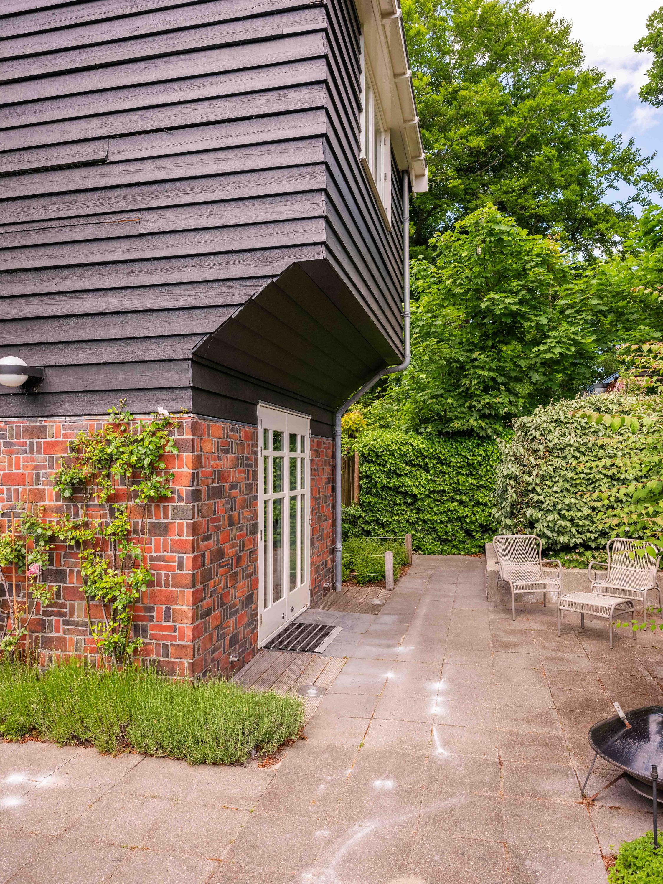 Als kers op de taart, hebben we nog het "ingangs"huisje, vooraan gelegen op het perceel, tussen de ligusterhagen. Dit karakteristieke gebouwtje met rieten kap roept het beeld op van "sloep aan het lijntje van de Ark". Een heerlijke werkplek met ook hier weer authentieke Amsterdamse School elementen.