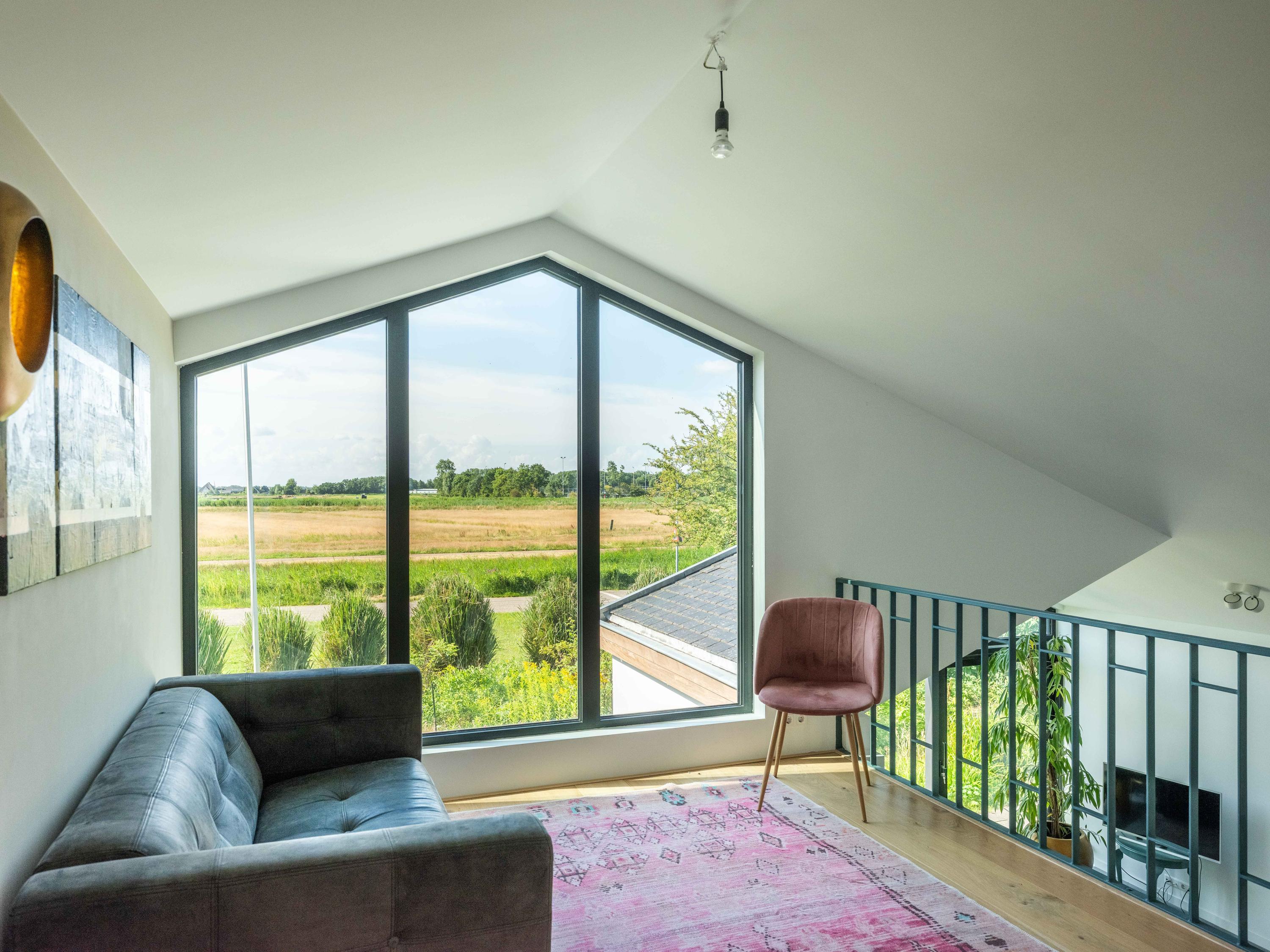 De bovenverdieping is het domein voor de kinderen en hobby's. Naast drie fijne slaapkamers, een tweede badkamer met grote inloopdouche, separaat toilet, en wasruimte, vindt u hier verrassende extra’s. Denk aan een inspirerende werkkamer met weids uitzicht, een serene yogaruimte en een speelse vide waar u zich terugtrekt met een goed boek.