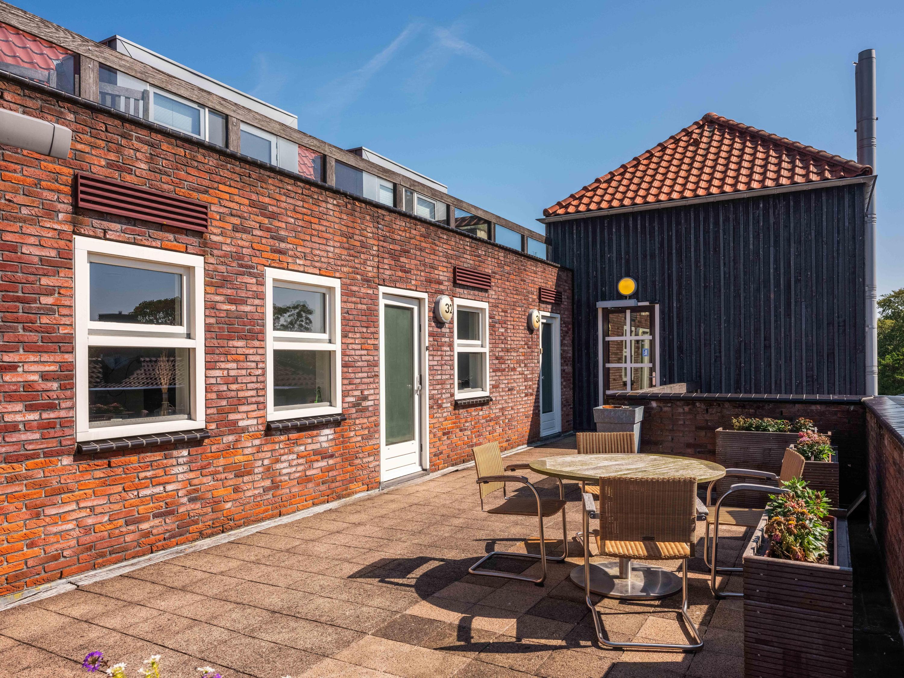 Via de centrale entree met trappenhuis en lift bereiken we hier het appartement. Via het ruime dakterras, gelegen op het zuiden, betreden wij via de voordeur het appartement. Bij binnenkomst in het appartement worden we verwelkomd in een ruime en lichte hal, waar voldoende ruimte is voor een garderobe. Hiervandaan toegang tot een slaapkamer, de eerste badkamer en de woonkamer.