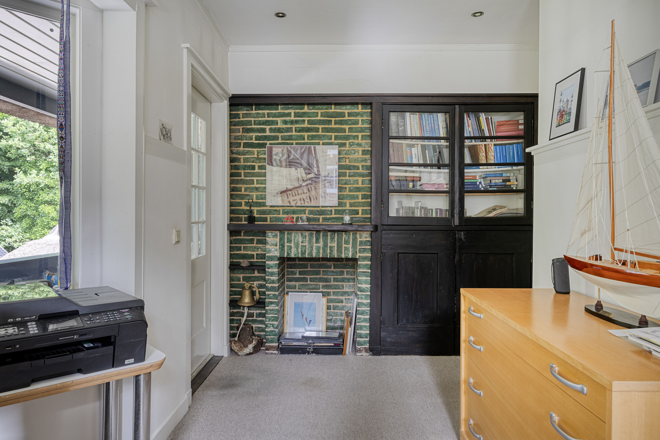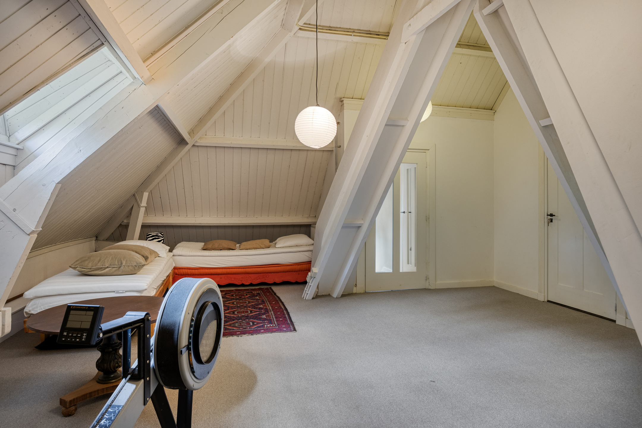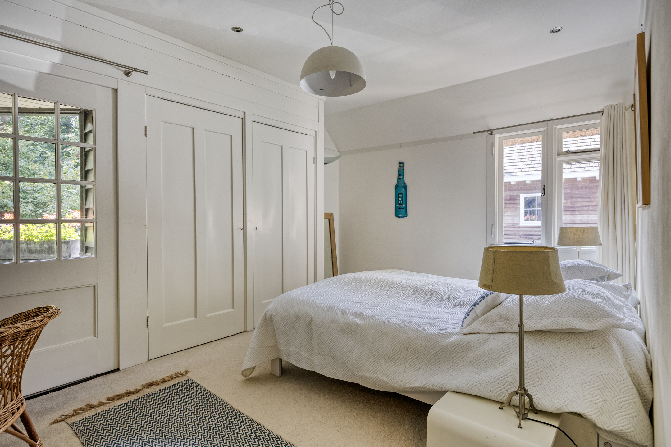 Op de eerste verdieping bevinden zich vier ruime slaapkamers, waarvan twee met toegang tot het balkon aan de voorzijde. Aan de achterzijde ligt een sfeervol kantoor met schouw en balkon. De vierde slaapkamer beschikt over een praktische zijkamer en eveneens toegang tot het balkon. De lichte badkamer is voorzien van ligbad, inloopdouche en wastafelmeubel. De badkamer en het separate toilet beschikken over vloerverwarming.