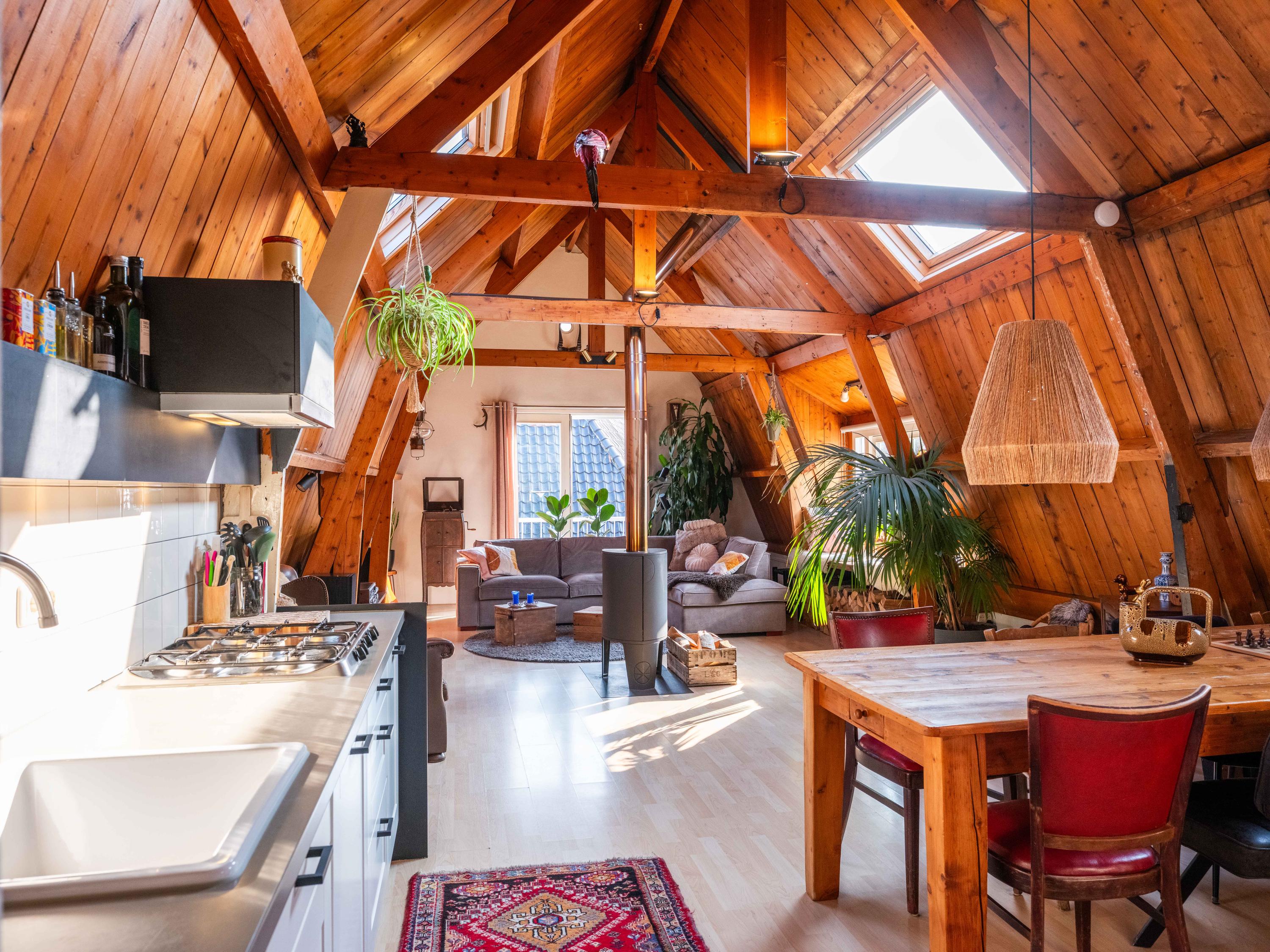 De bovenwoning (ca. 76 m²) beschikt over een zeer royale woonkamer met een Frans balkon en zicht op de twee kerken van Bergen. De sfeervolle dakkapel is in 2023 voorzien van een nieuw kozijn en isolatieglas en wordt momenteel gebruikt als gezellig zitgedeelte. De centrale houtkachel zorgt niet alleen voor sfeer, maar ook voor een aangenaam en comfortabel woonklimaat.