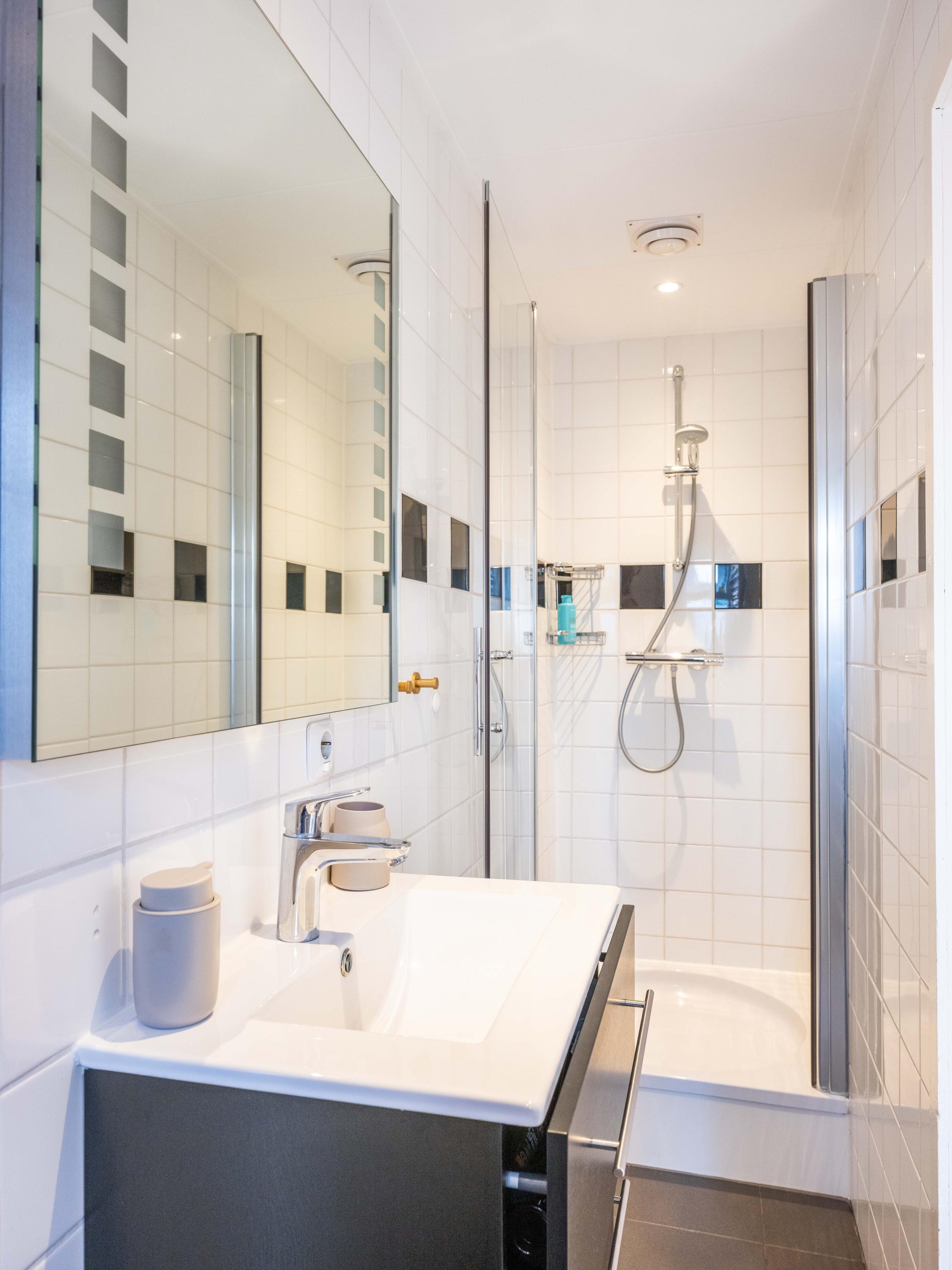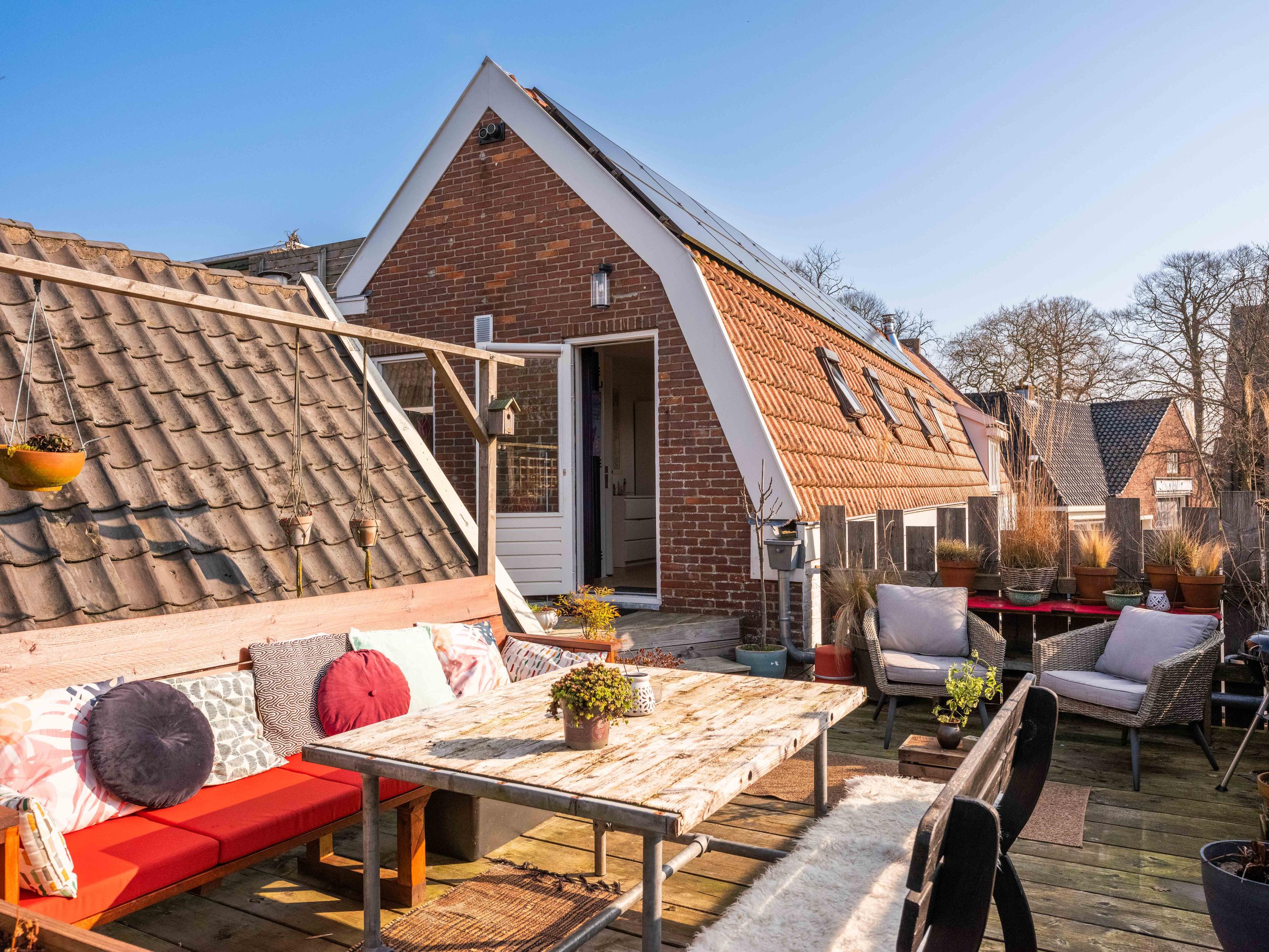 De woning beschikt over twee slaapkamers, die eventueel met elkaar verbonden kunnen worden via een schuifdeur. De badkamer is compact en voorzien van een douche, toilet en badkamermeubel. Daarnaast beschikt de woning over een zonnig dakterras – een unieke plek om in alle rust van de buitenlucht te genieten.