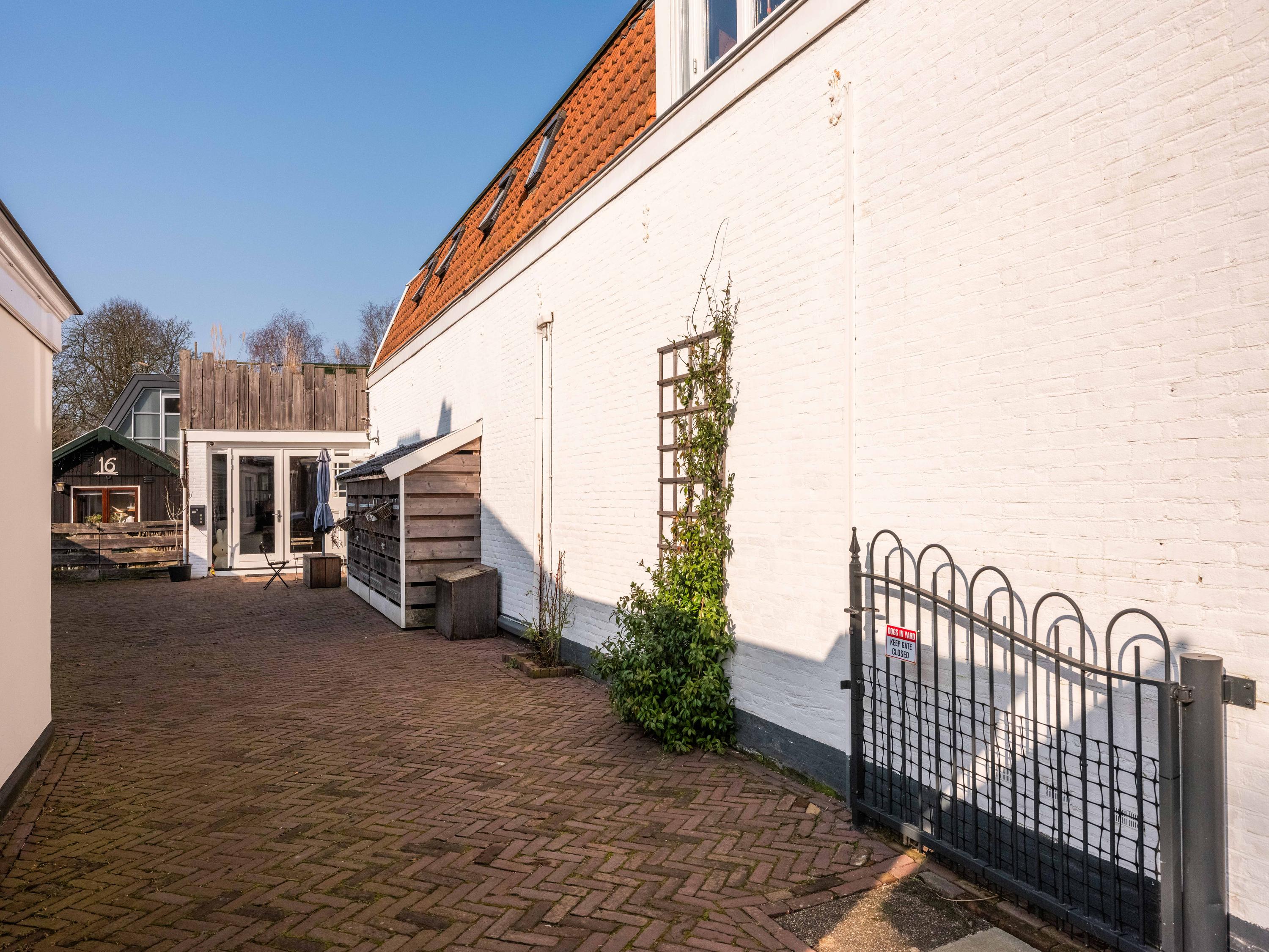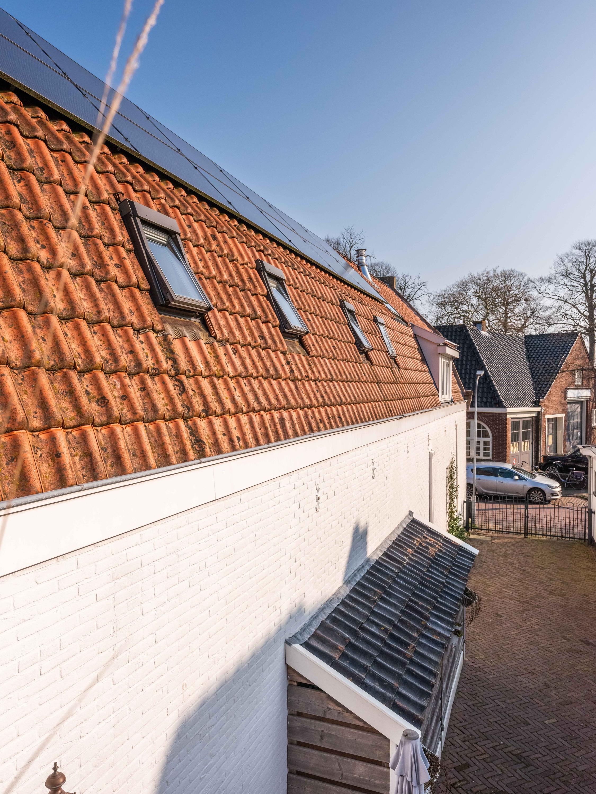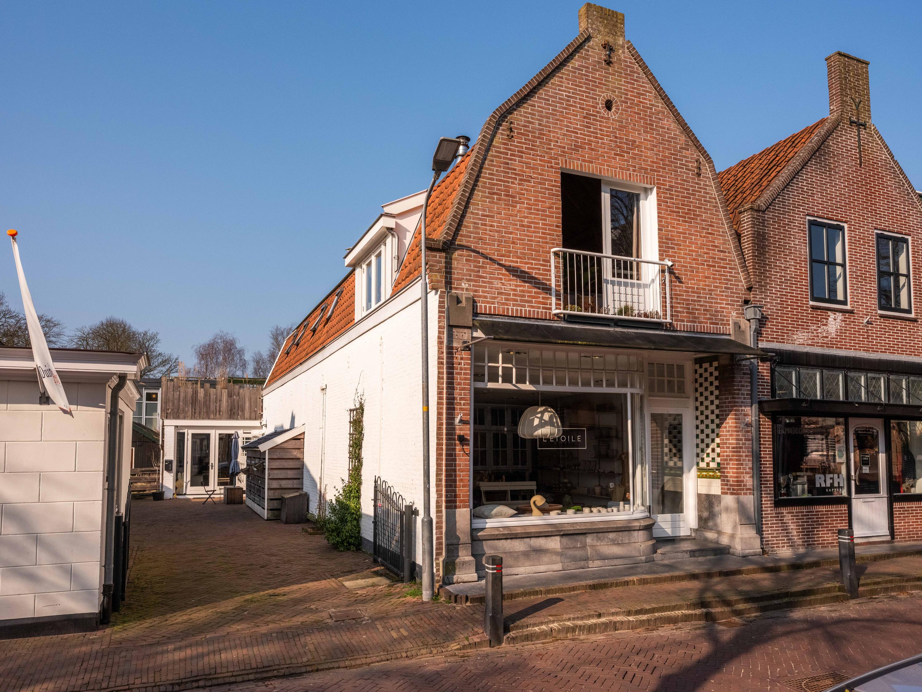 Achter de winkel bevindt zich een aparte kantoorruimte, ideaal voor bijvoorbeeld een praktijk aan huis, werkruimte of uitbreiding van de winkel of woning. Deze ruimte van circa 43 m² is in 2023 voorzien van een nieuwe pui met openslaande deuren.