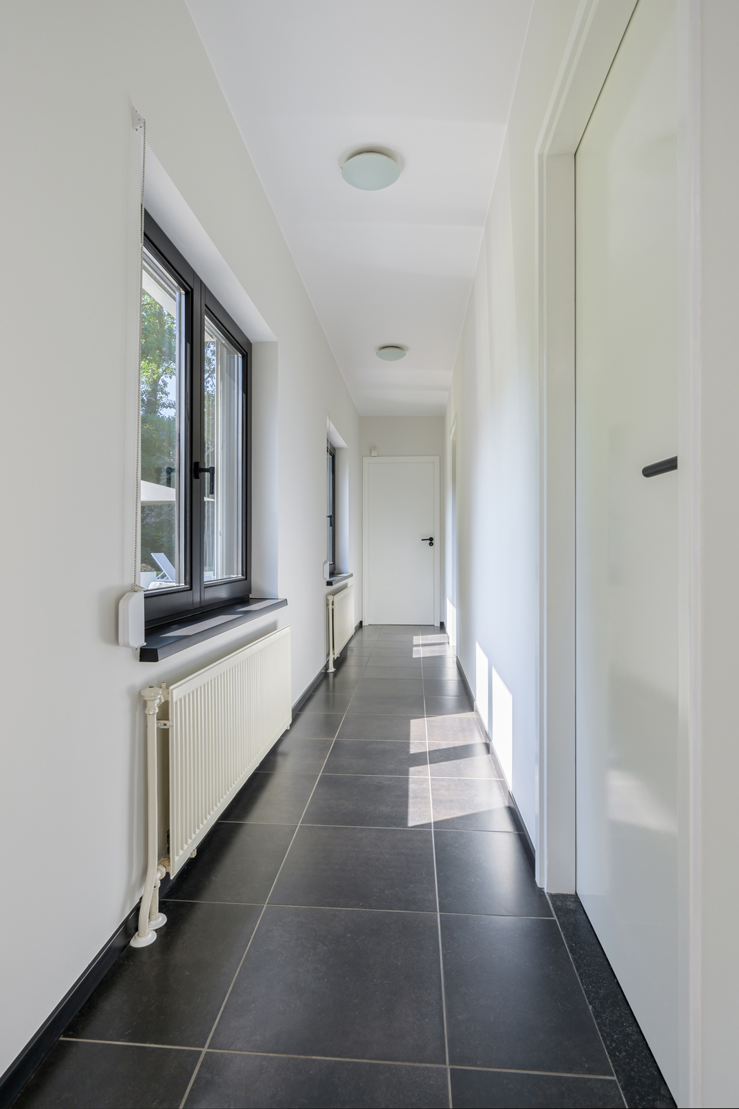Vanuit de keuken bereikt u een aparte gang met toegang tot diverse vertrekken. Voor extra daglichttoetreding is er in deze gang een solatube geplaatst.