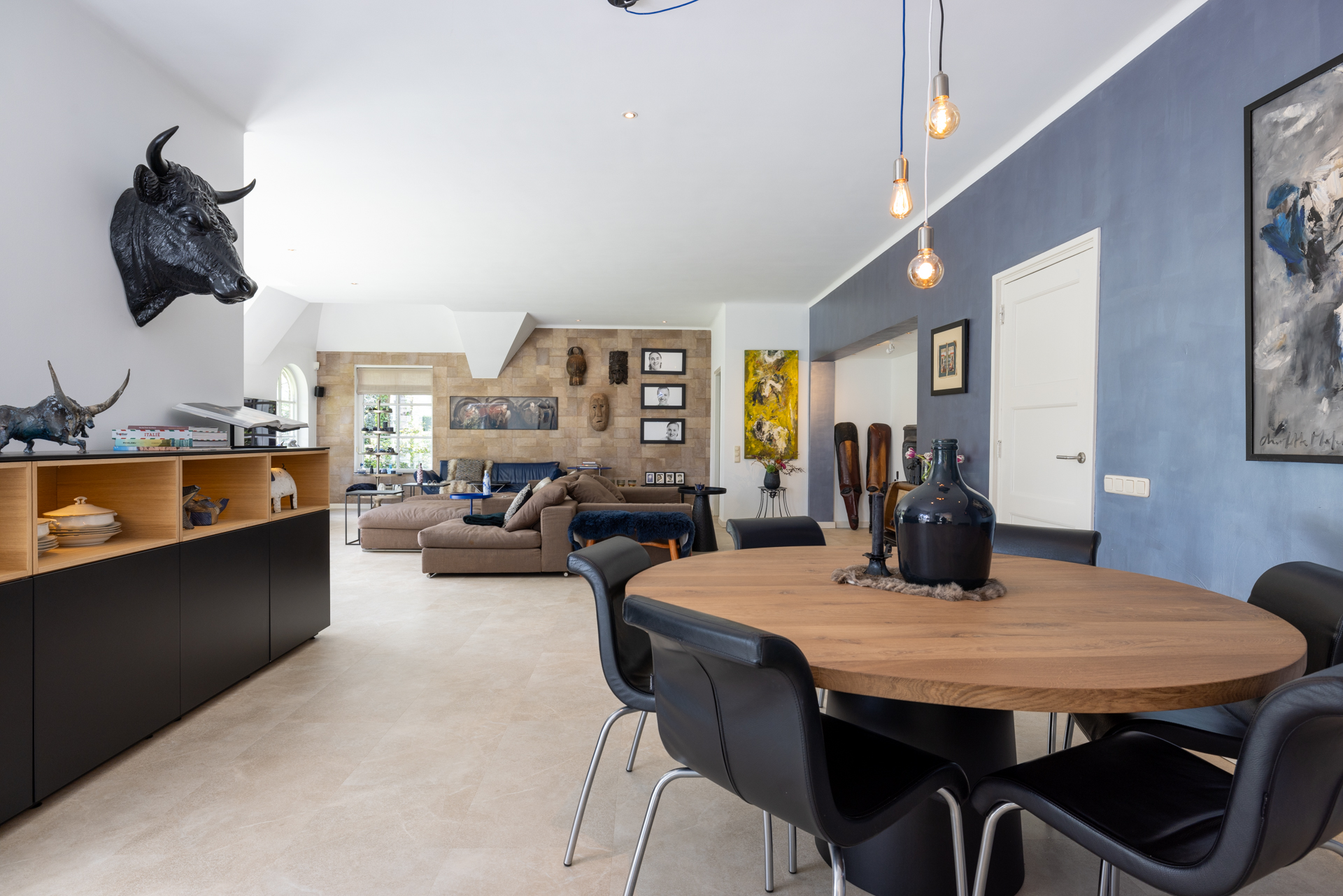 De woonkeuken heeft een gashaard, royaal eetgedeelte en dubbele openslaande deuren naar de tuin. Dit geeft een mooie connectie met de tuin en de buitenkeuken. Hier haalt u buiten naar binnen.