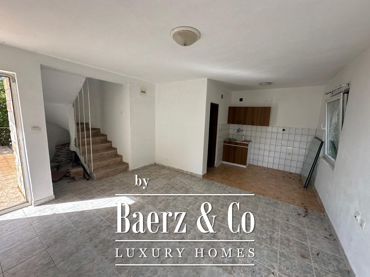House Budva bevindt zich in alle rust, omringd door de natuur van Sveti Stefan, waar het strand en de Adriatische Zee slechts 400 meter verwijderd zijn. Deze residentie van 210 m² beslaat twee woonlagen en een zolder, met vier slaapkamers, drie badkamers, drie balkons en een terras met panoramisch uitzicht van zee tot berg. Via een geasfalteerde weg is er directe aansluiting op de hoofdroute, waardoor privacy en bereikbaarheid perfect in balans zijn. De woning wordt casco opgeleverd en vergt renovatie, waardoor het een blanco canvas vormt voor persoonlijke invulling. Daglicht stroomt royaal door de leefruimtes, waaronder een woonkamer met keuken en royale balkonpartijen.