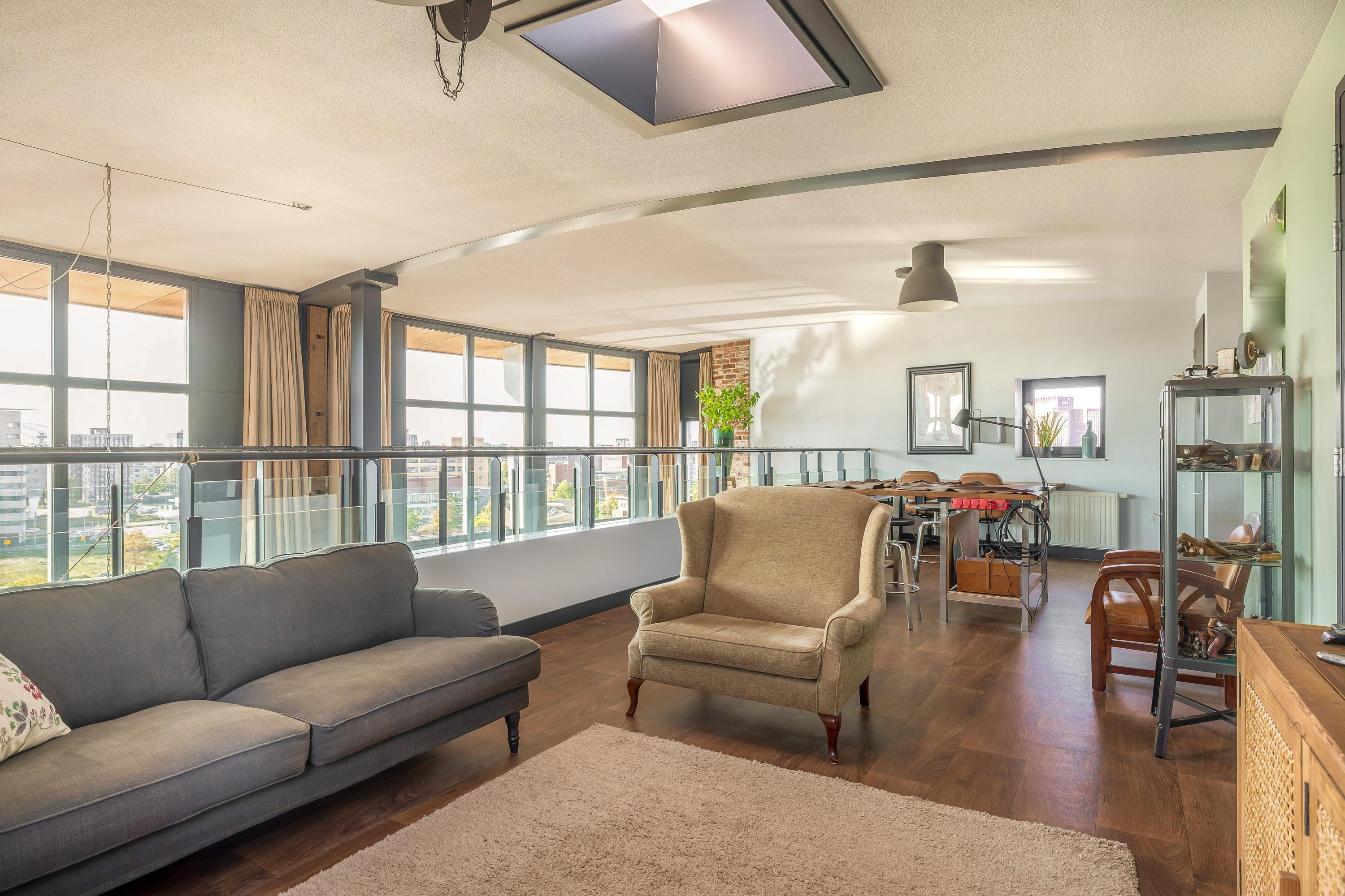 Wonen op het hoogste niveau. Dit unieke dubbel penthouse (251 m²) beslaat de 8e en 9e verdieping en biedt ultieme rust, luxe en privacy – zonder directe buren. De 7 meter hoge raampartij trakteert je op een adembenemend uitzicht over de skyline van Rotterdam, de Brienenoordbrug en De Kuip.