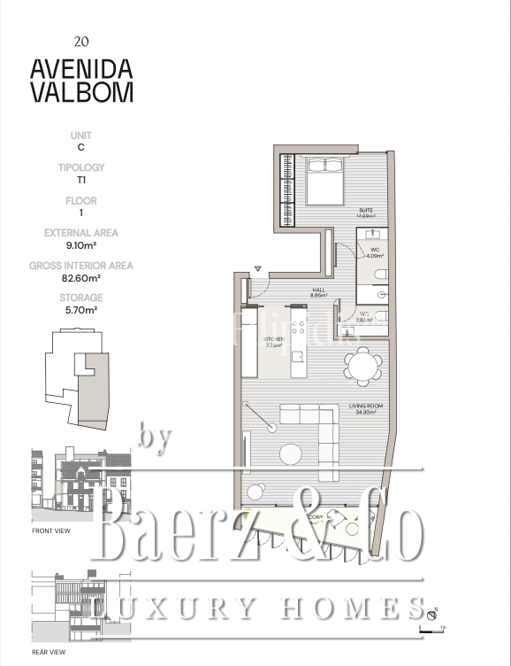 1 bedroom apartment, with an interior area of 83 sqm and a balcony of 8 sqm offers a comfortable and practical experience, perfect for families or those looking for a spacious home in one of the most desirable locations in Cascais.