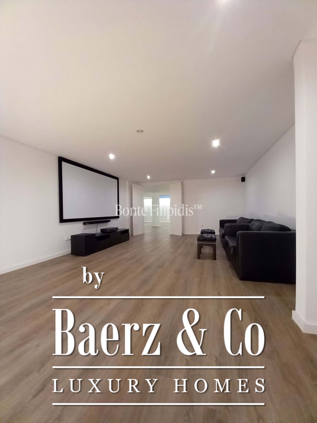 Op de benedenverdieping is veelzijdigheid troef. De garage van 61,49 m², een personeels- of logeersuite met eigen toegang vanaf de straat, een homecinema van 31,29 m², een entertainmentruimte van 74,39 m² en een wijnkelder van 31,59 m² bieden samen een as voor ontspanning en privacy. Multifunctionele ruimtes kunnen dienstdoen als fitness, spa of speelkamer, afhankelijk van de behoefte. Door het hele huis garanderen vloerverwarming, airconditioning, ook in het souterrain, en voorgeïnstalleerde home-entertainmentsystemen een verfijnde en comfortabele leefomgeving. De lokale voorzieningen—dichtbij restaurants, stranden, golfbanen, scholen en stedelijke verbindingen—maken het plaatje voor eigentijds wonen in deze villa in Cascais e Estoril compleet.