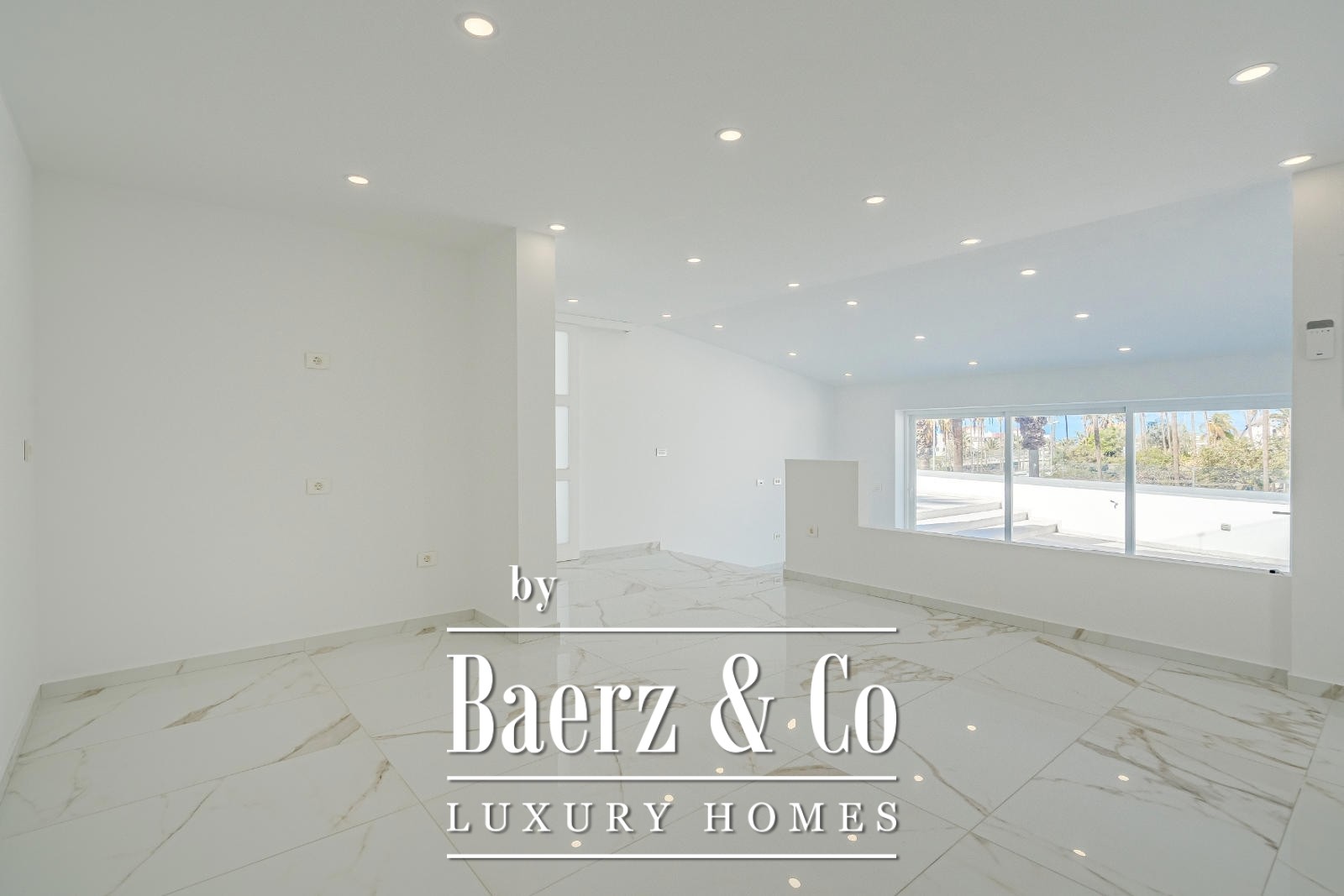Er is een groot overdekt terras, ontworpen als buitenlounge, maar het kan gemakkelijk worden afgesloten met ramen om een extra woonkamer te creëren, waardoor de huidige woonkamer kan worden omgebouwd tot een eetkamer of een extra slaapkamer. Er blijft nog voldoende ruimte over op het terras voor een buitenlounge en eethoek.