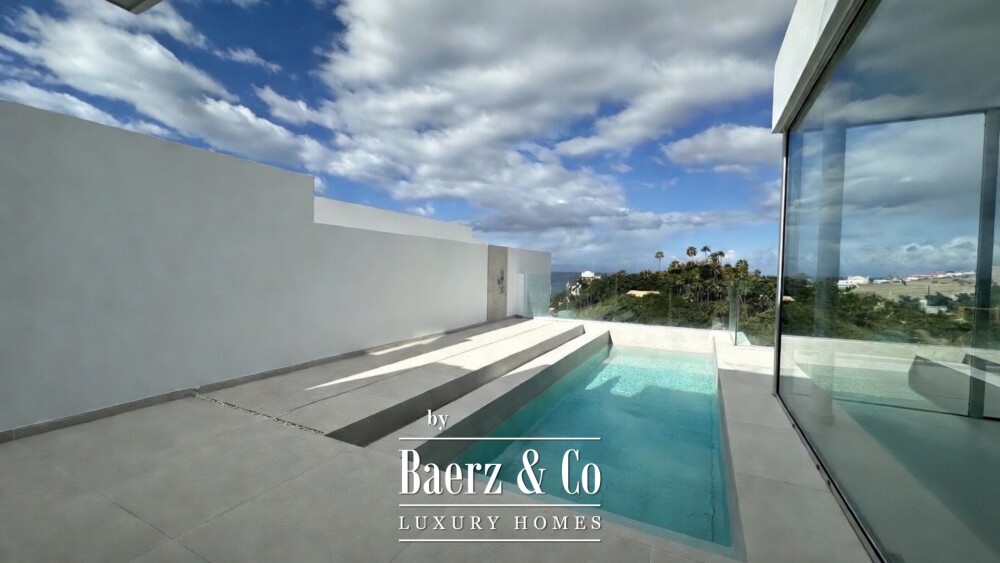 Op de benedenverdieping van de villa vindt u een extra woonkamer of multifunctionele ruimte, nog twee slaapkamers, twee complete badkamers en een wasruimte. Rondom de villa liggen groene zones met exotische planten en palmbomen, waar u heerlijk kunt ontspannen en van het uitzicht kunt genieten.