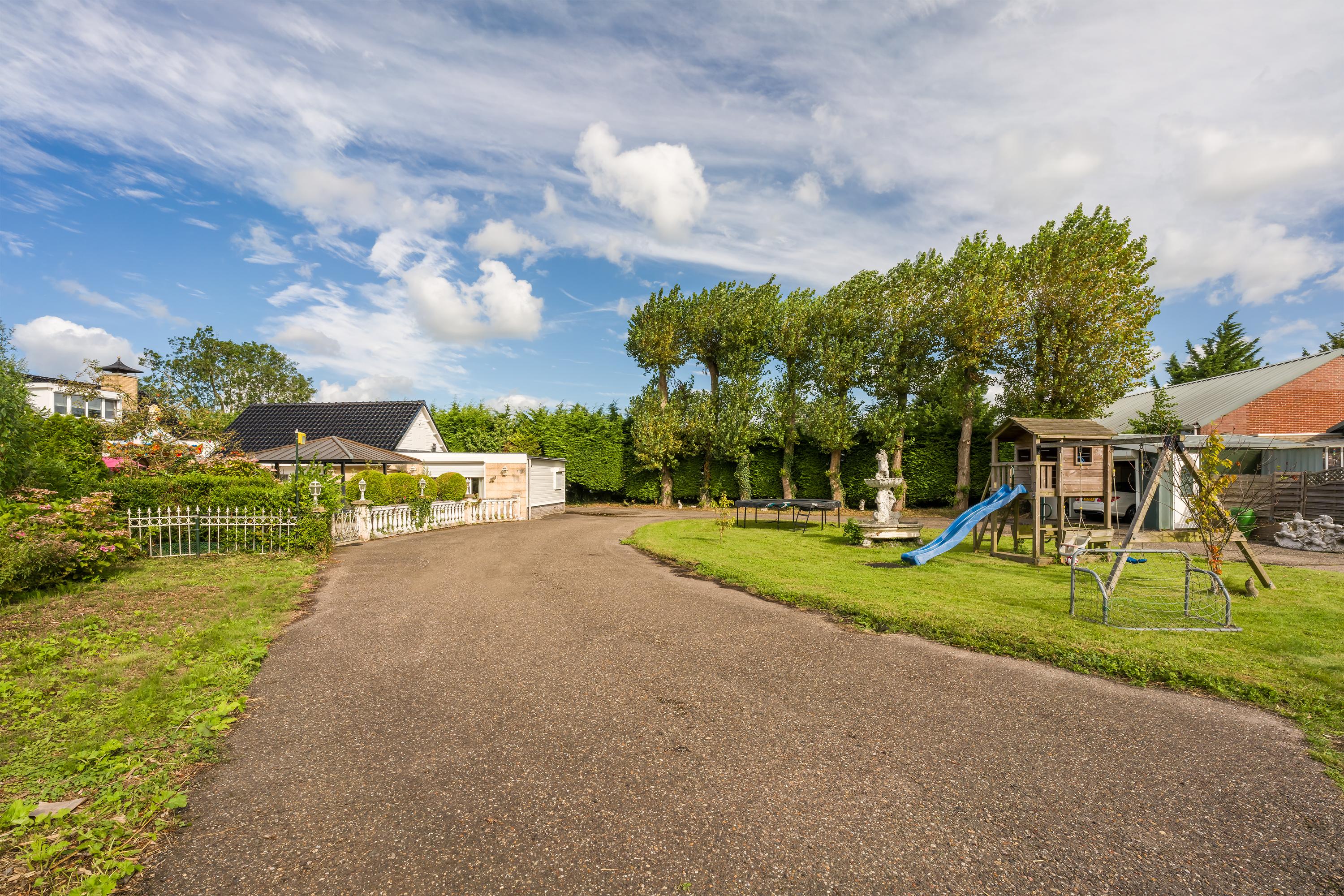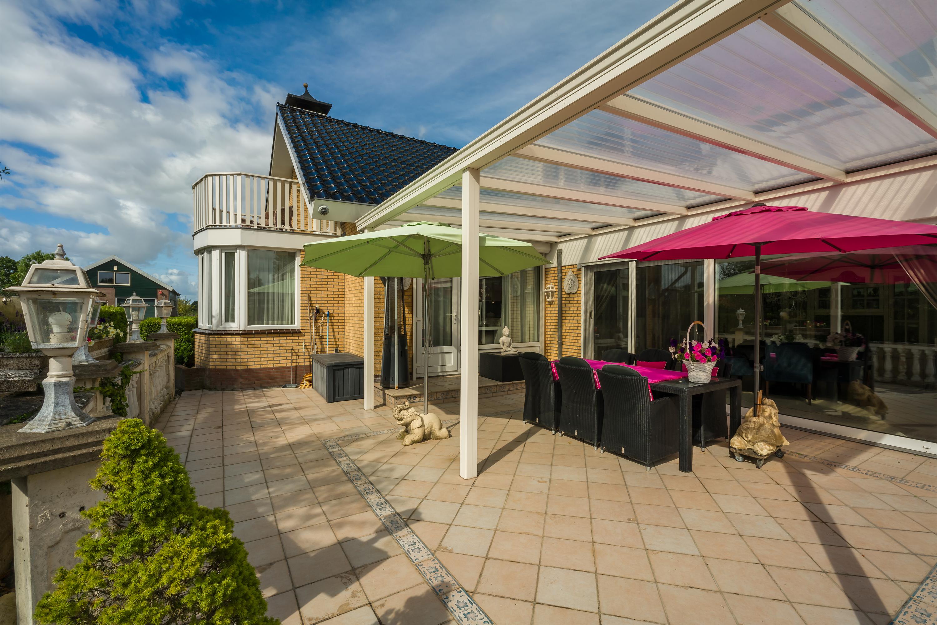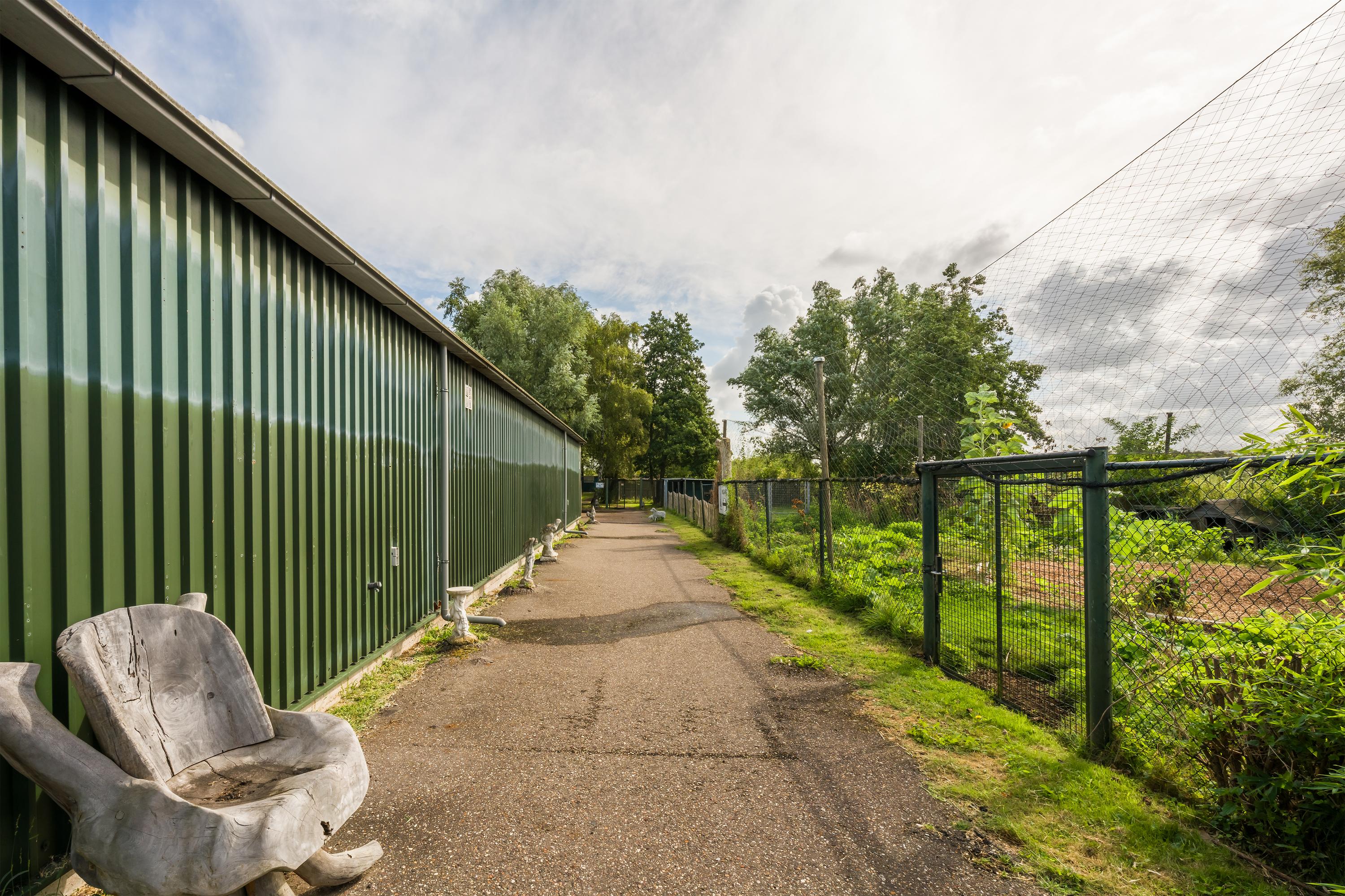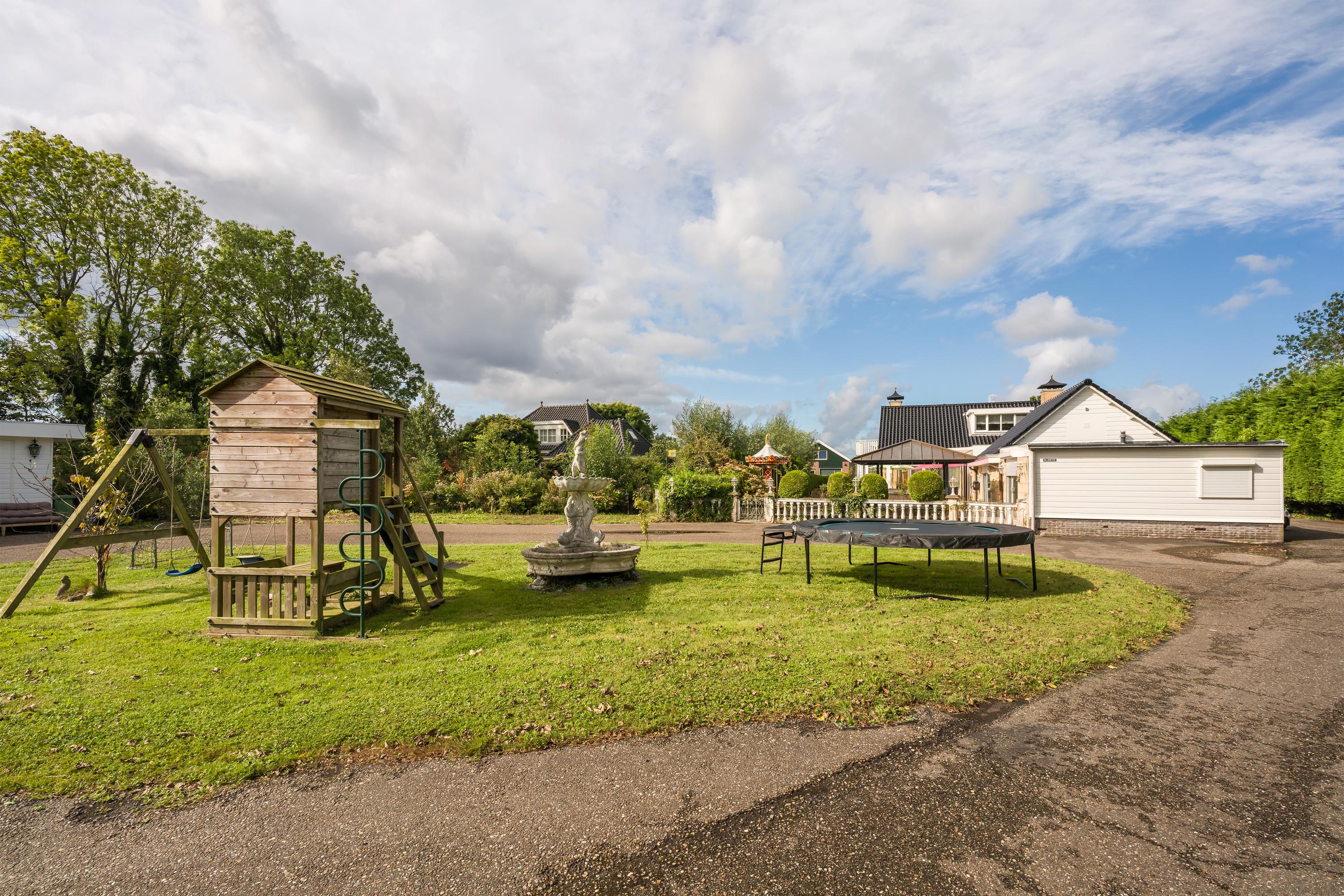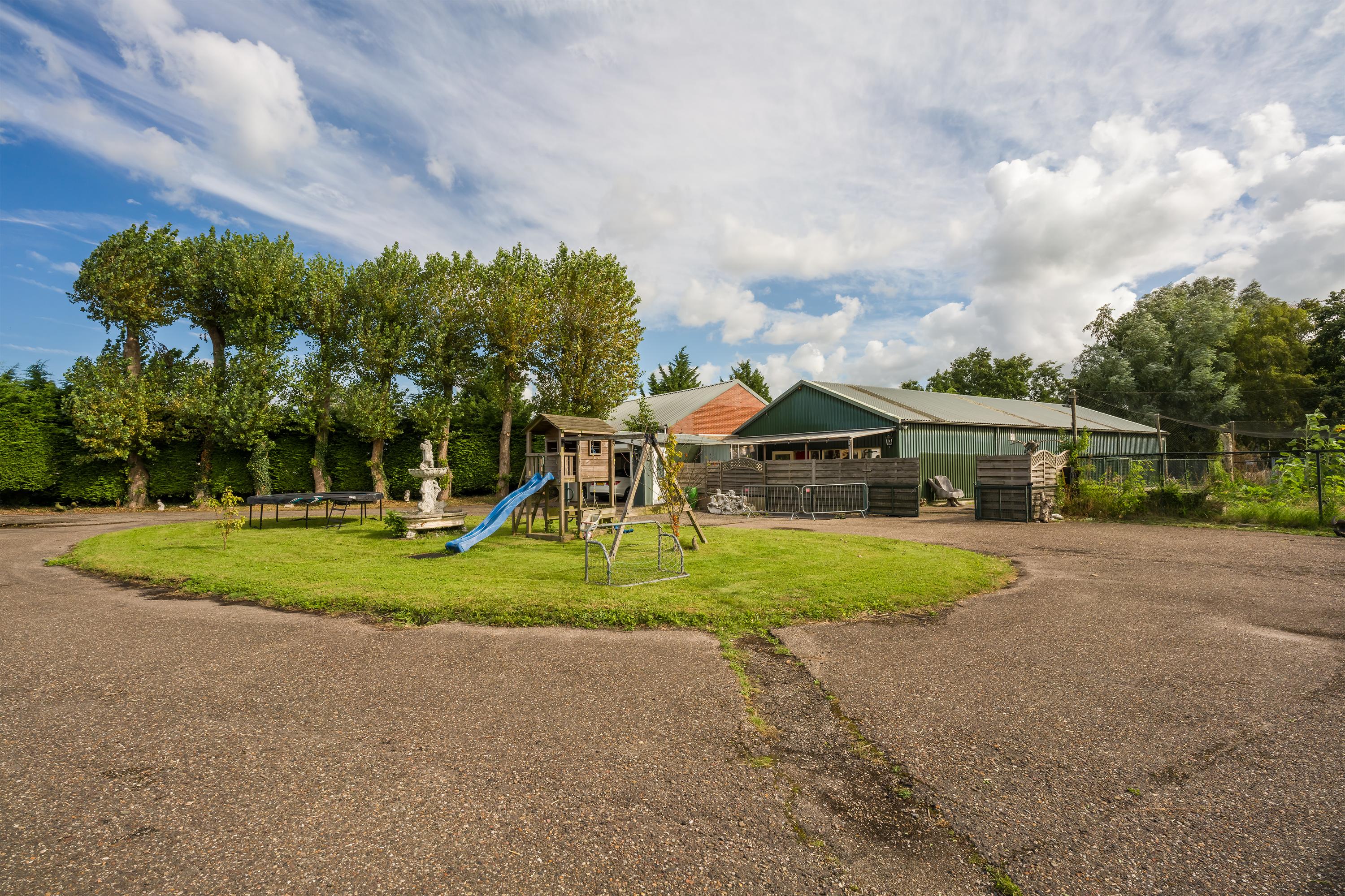 Een prachtig afgesloten privé domein ligt verscholen achter deze -slim op de kavel gesitueerde - vrijstaande woning met guesthouse. Het geheel geeft een grootse vibe, zodra je komt aanrijden. Je oog valt op de witte ijzeren hekken die het groene perceel accentueren, als je de poort benadert. Je reis vervolgt over de asfalt oprit, om achter op het erf te draaien en te parkeren op de rotonde. Vanaf hier kijk je naar de Amerikaans aandoende bungalow met onderheid terras, naar het ruime guesthouse, naar de bedrijfsruimte en de dierenverblijven, waar ooit flamingo's het Noord Hollandse landschap sierden.