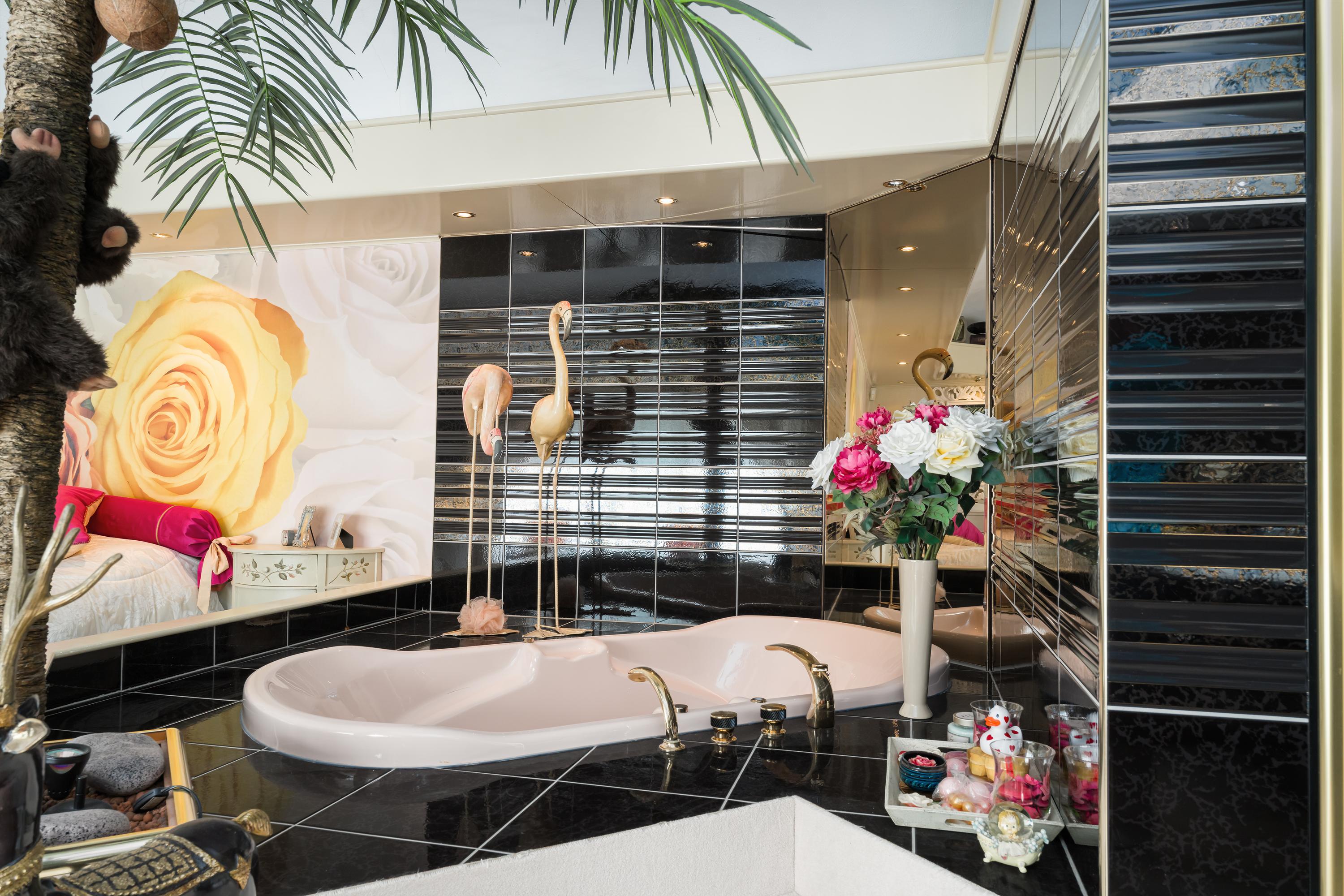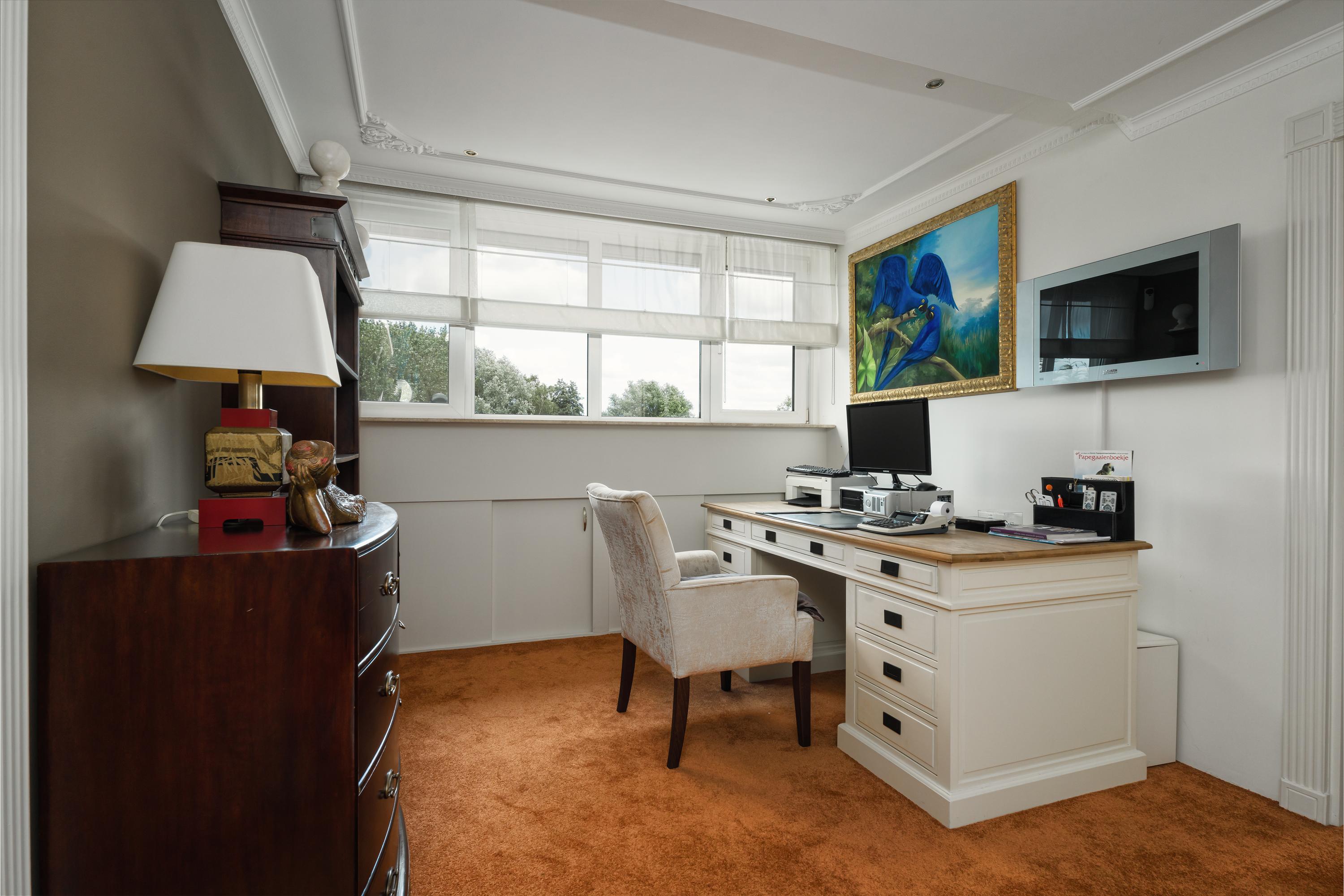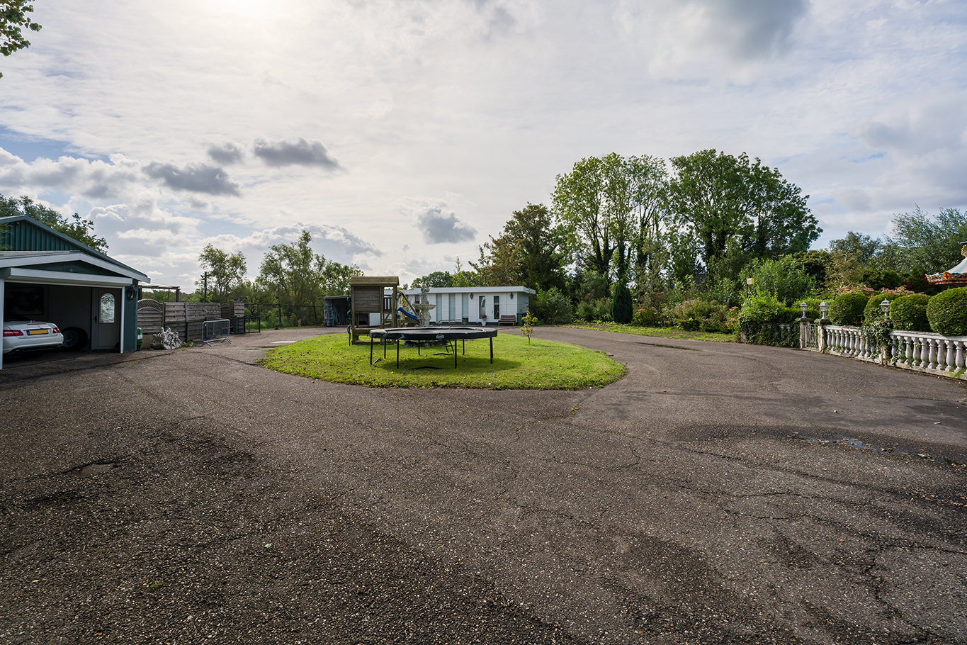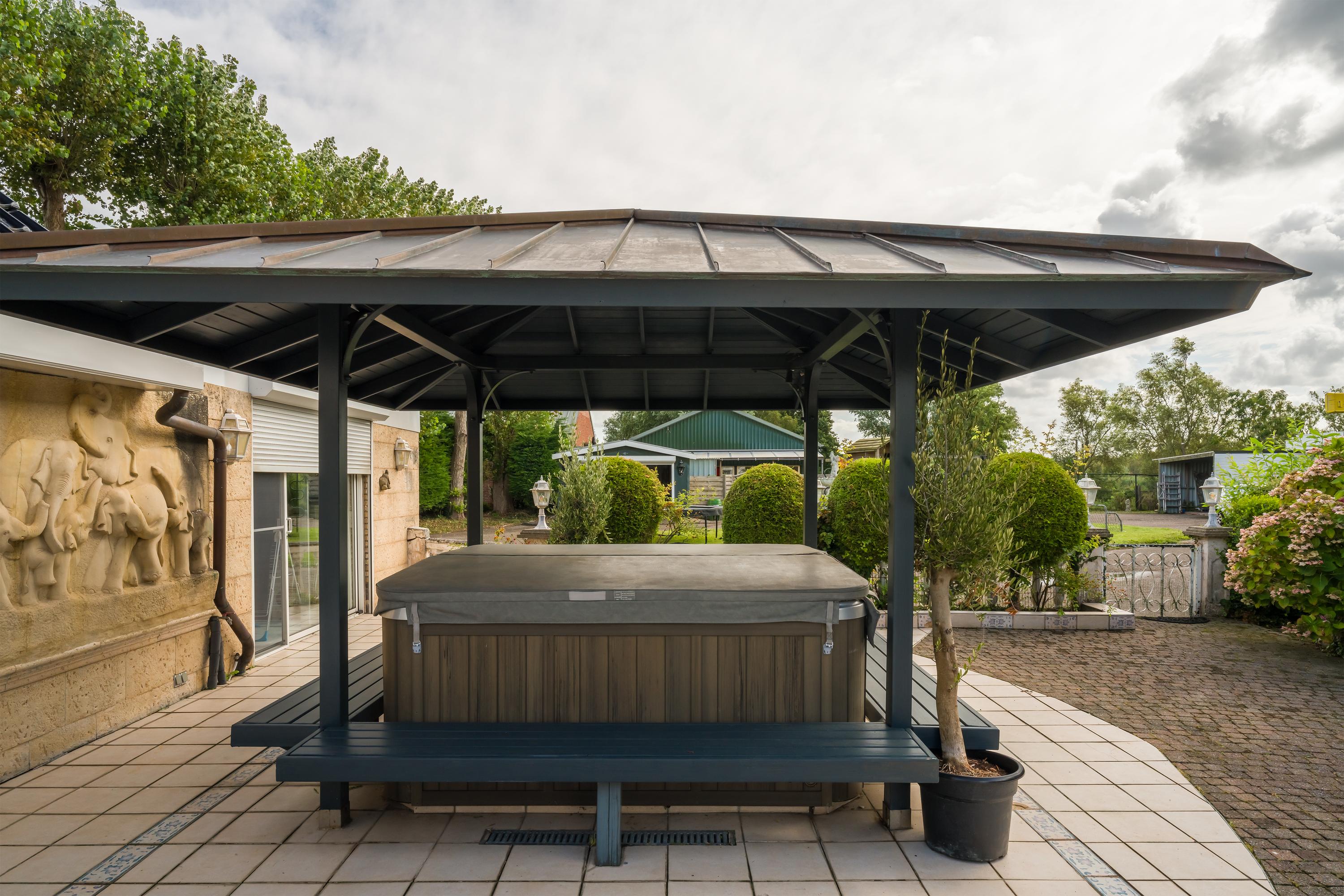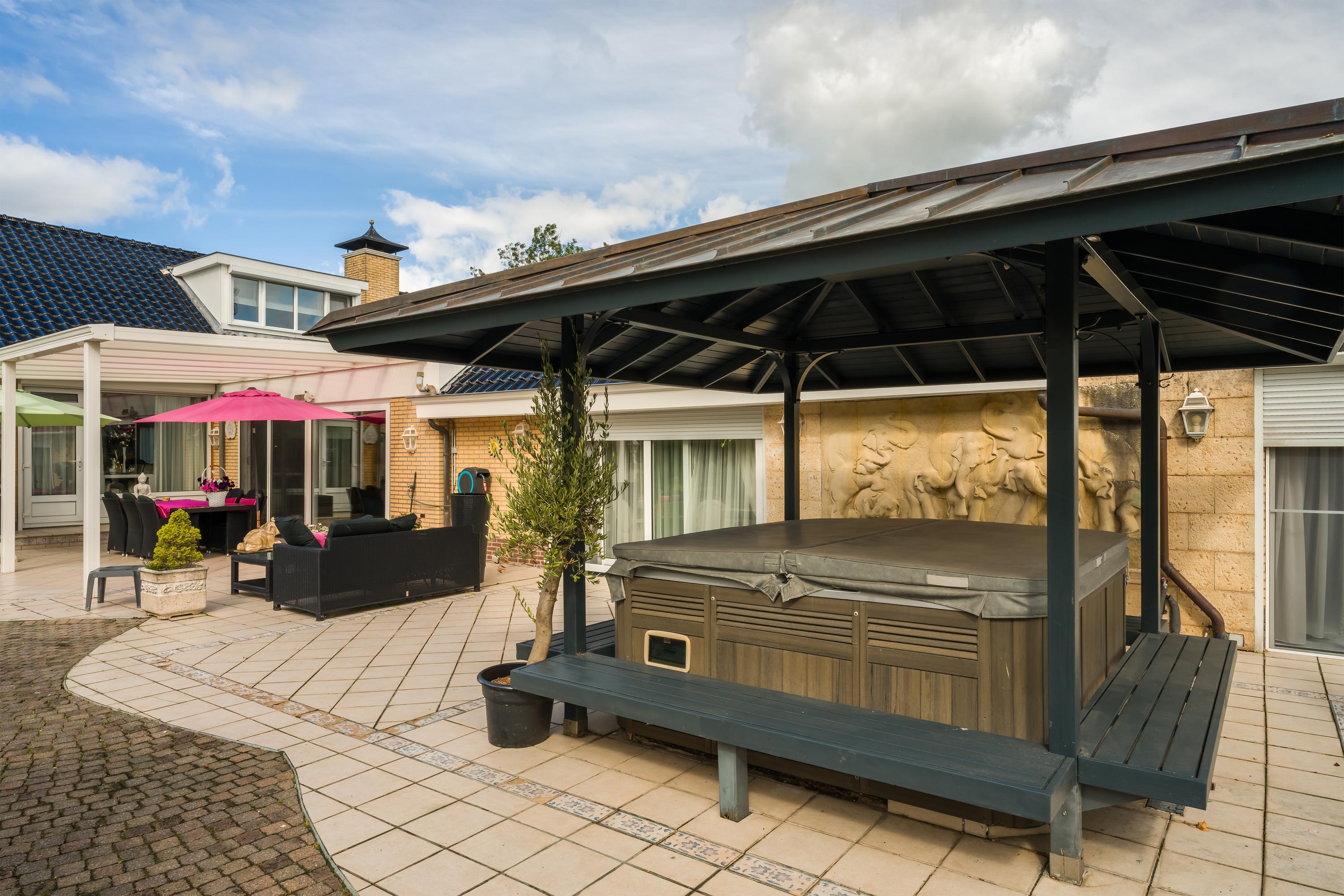 Een prachtig afgesloten privé domein ligt verscholen achter deze -slim op de kavel gesitueerde - vrijstaande woning met guesthouse. Het geheel geeft een grootse vibe, zodra je komt aanrijden. Je oog valt op de witte ijzeren hekken die het groene perceel accentueren, als je de poort benadert. Je reis vervolgt over de asfalt oprit, om achter op het erf te draaien en te parkeren op de rotonde. Vanaf hier kijk je naar de Amerikaans aandoende bungalow met onderheid terras, naar het ruime guesthouse, naar de bedrijfsruimte en de dierenverblijven, waar ooit flamingo's het Noord Hollandse landschap sierden.