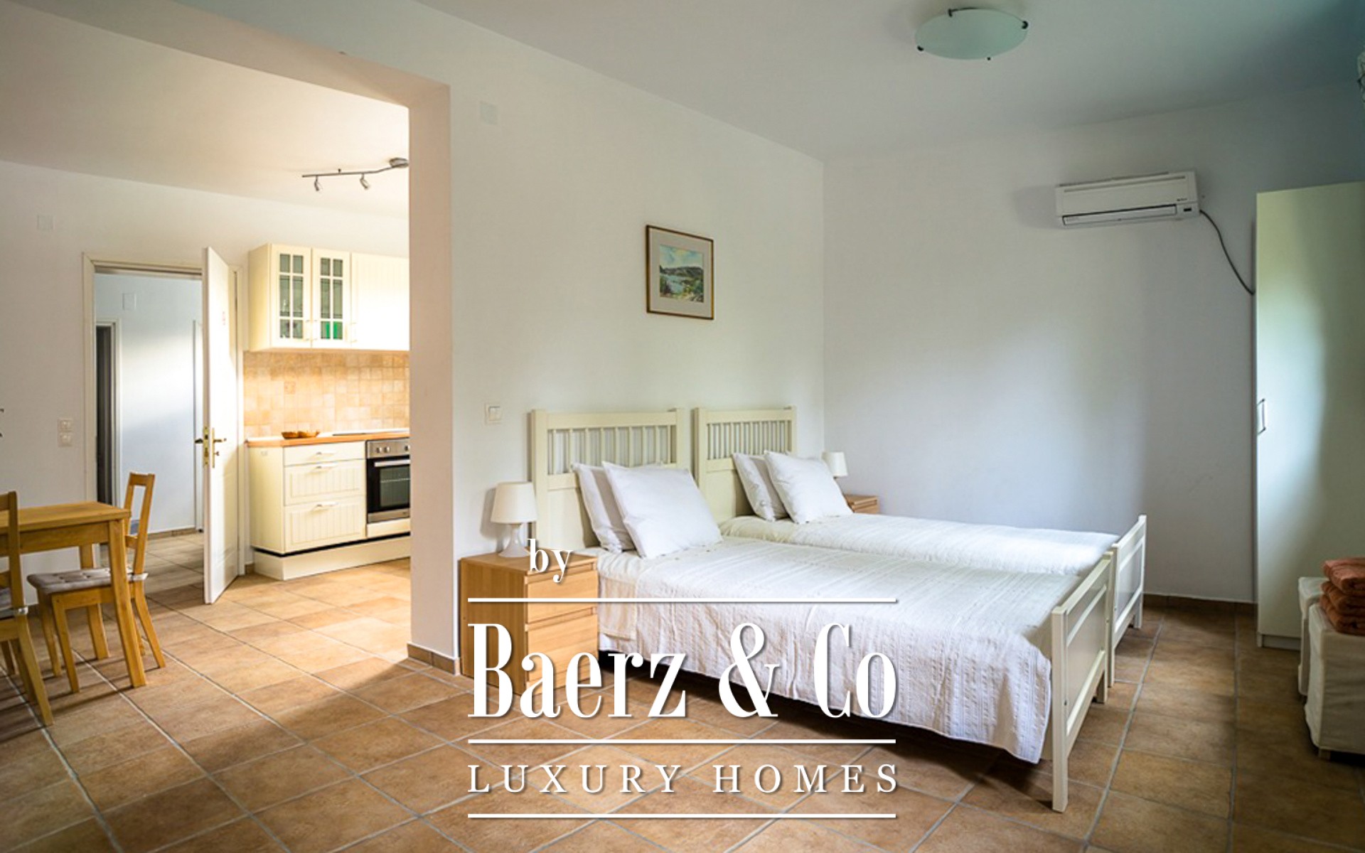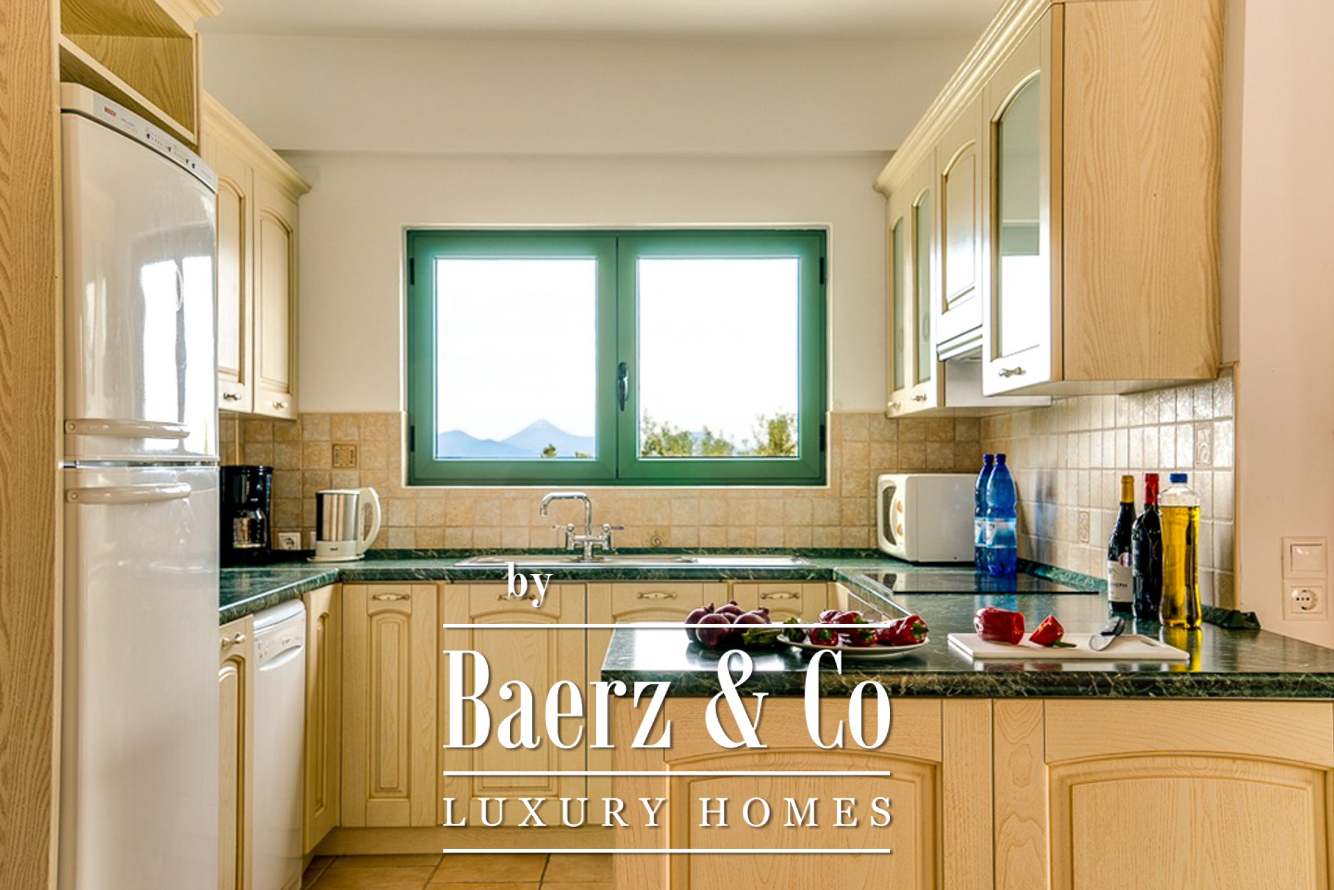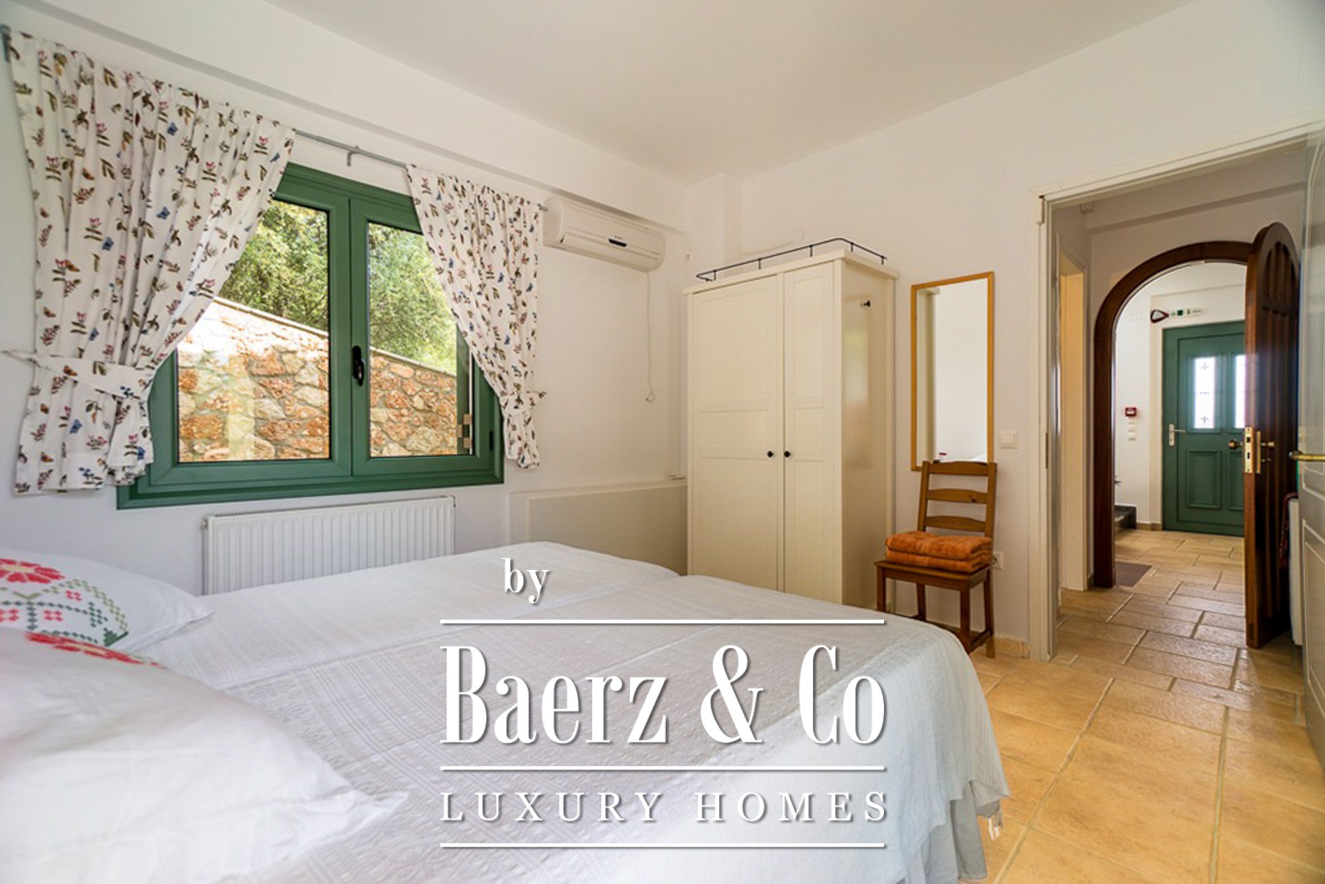 Bijzondere kenmerken zijn onder meer vloerverwarming in geselecteerde ruimtes, airconditioning in alle slaapkamers en het gastenappartement, een granieten trap, een open haard en een volledig uitgeruste keuken. Er zijn drie privéparkeerplaatsen en twee gedeelde plekken beschikbaar binnen een juridisch vastgelegde mede-eigendomstructuur. De villa is rustig gelegen, maar goed bereikbaar via een verharde weg en het uitzicht op bergen en natuur versterkt het gevoel van openheid. Villa Ellomeno is geschikt als privéwoning of voor verhuur en biedt tijdloze kwaliteit en doordacht design aan de Ionische kust.
