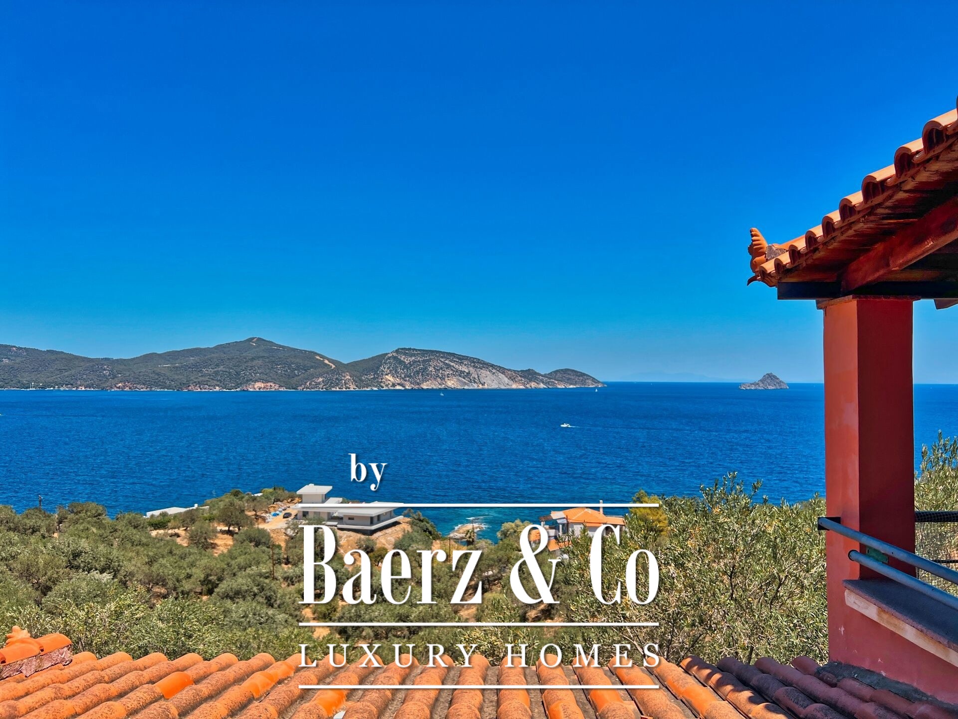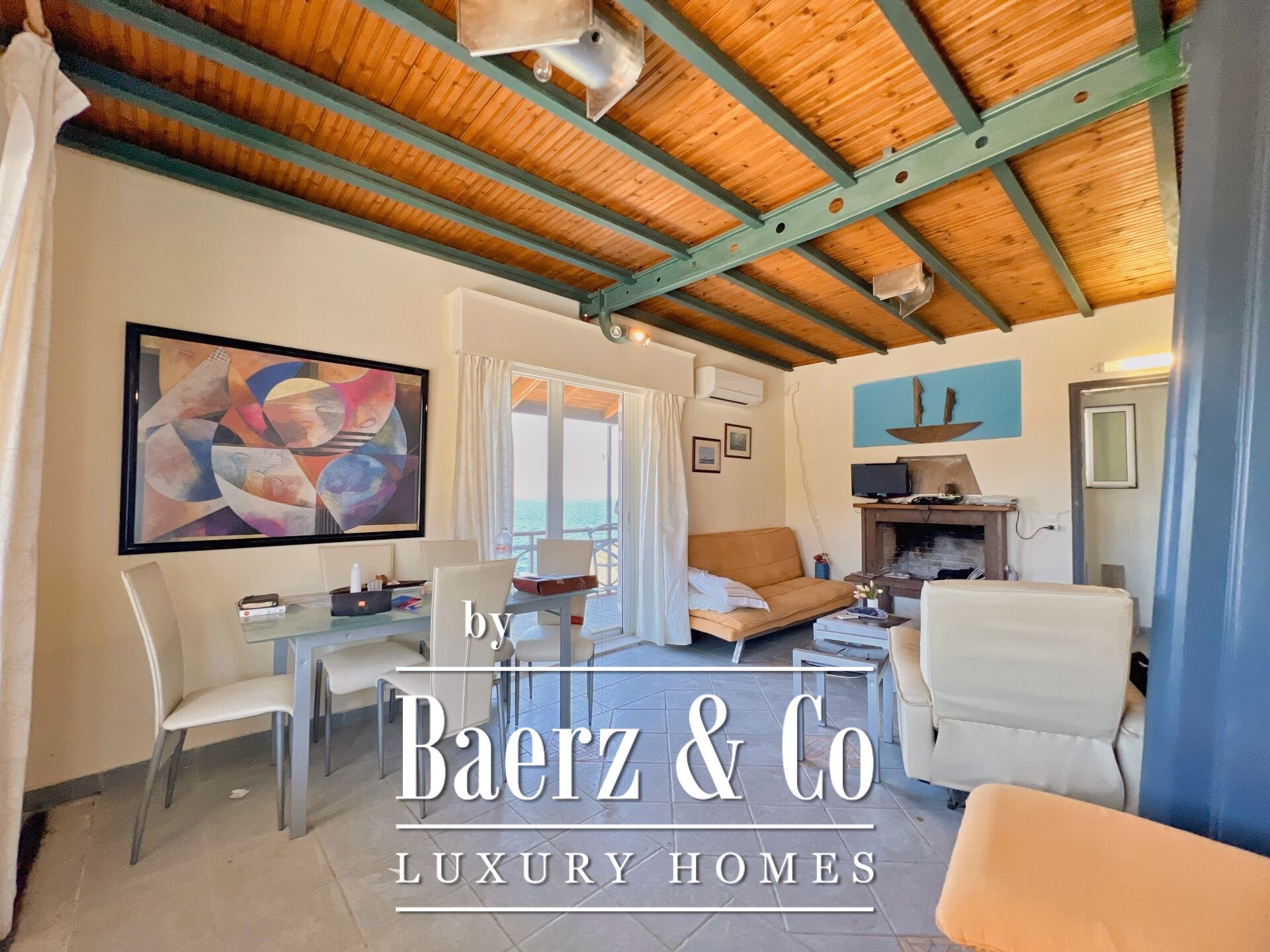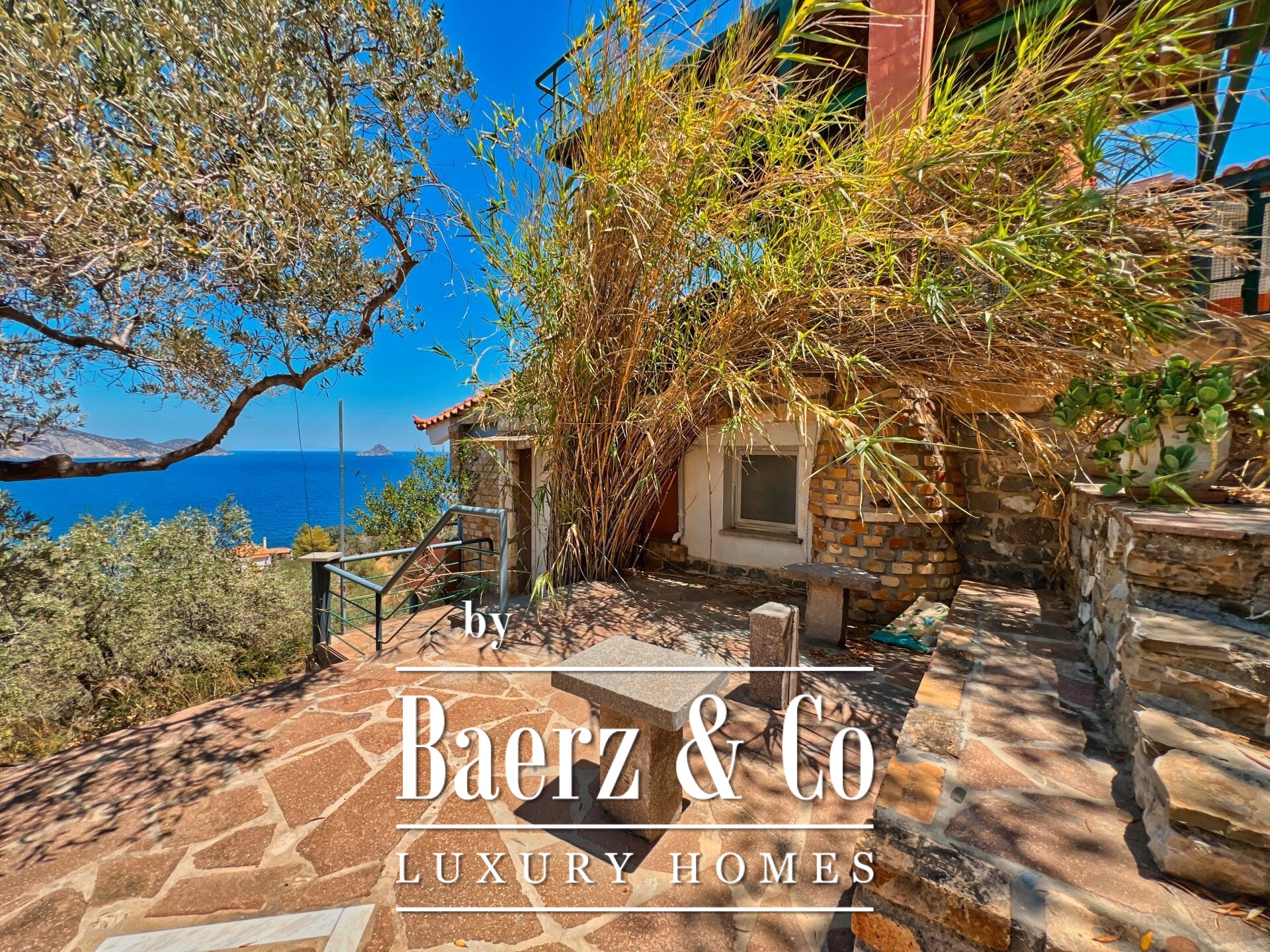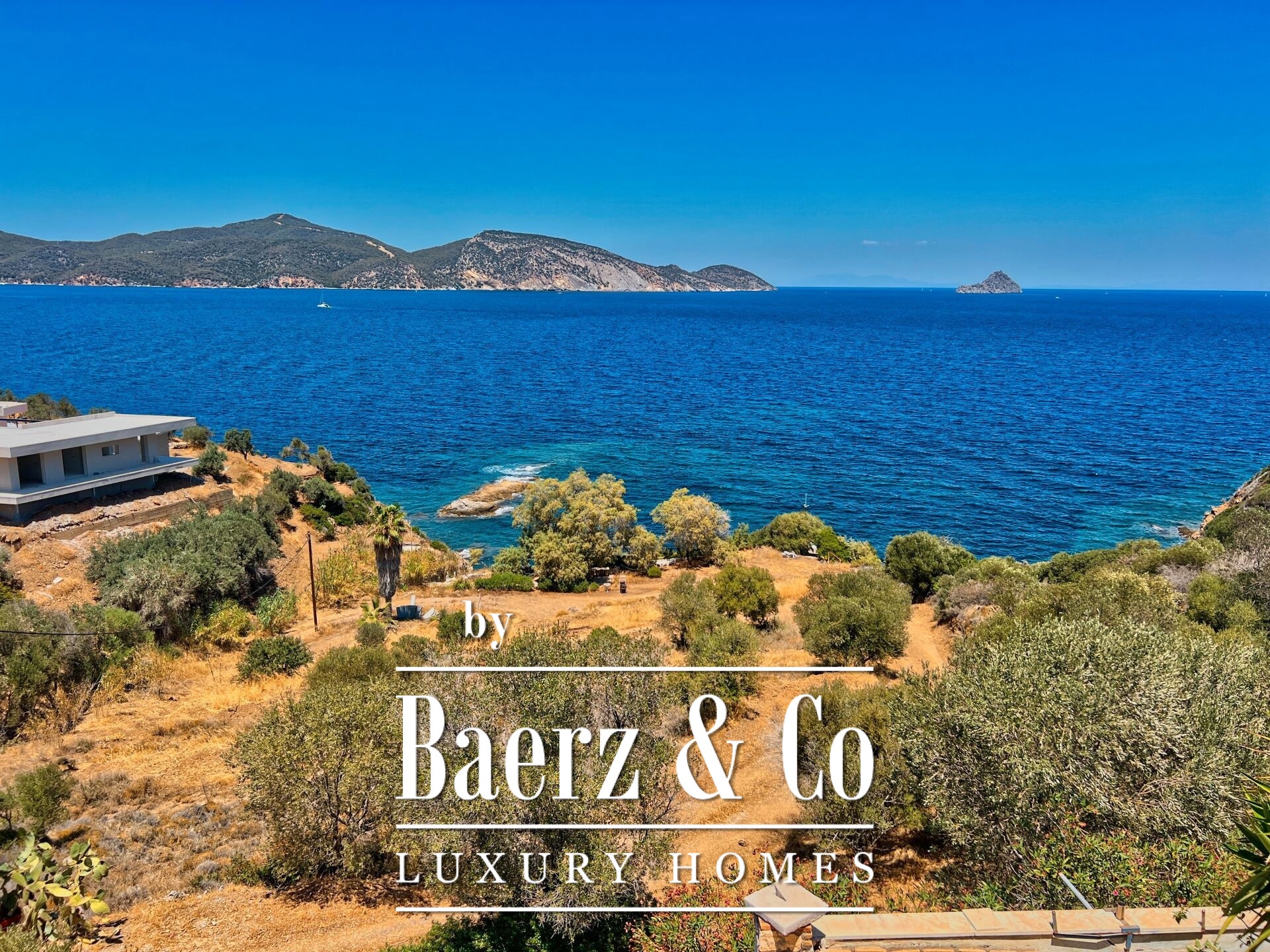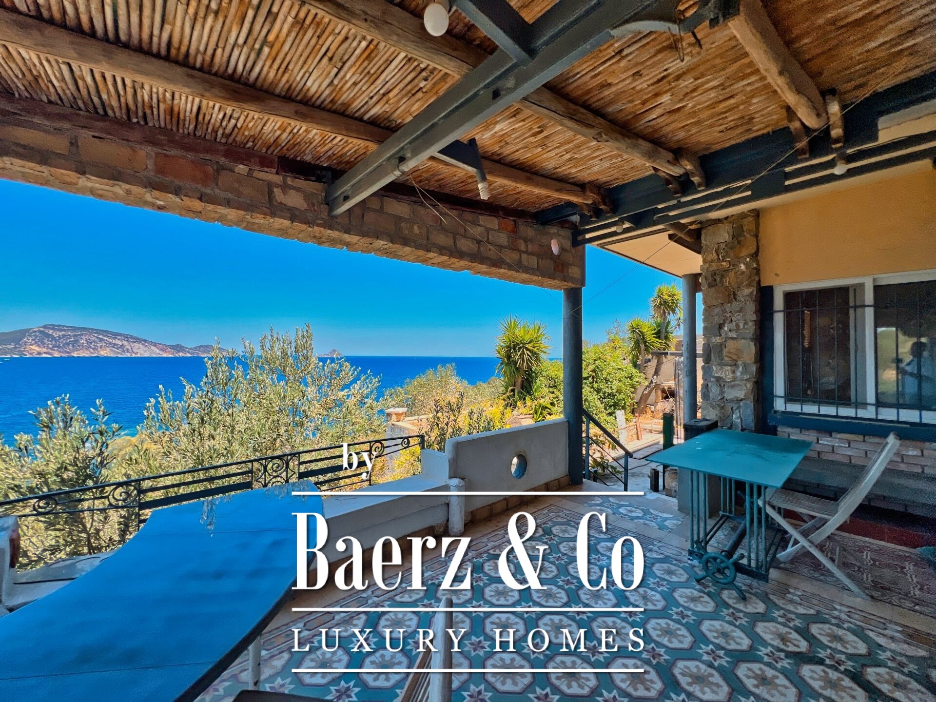 In an exceptionally beautiful and tranquil location, just 90 meters from the sea and a beach of wild, authentic beauty, a unified seaside plot of 12,997 sq.m. is available for sale, hosting two independent residences with a total surface of approximately 470 sq.m.