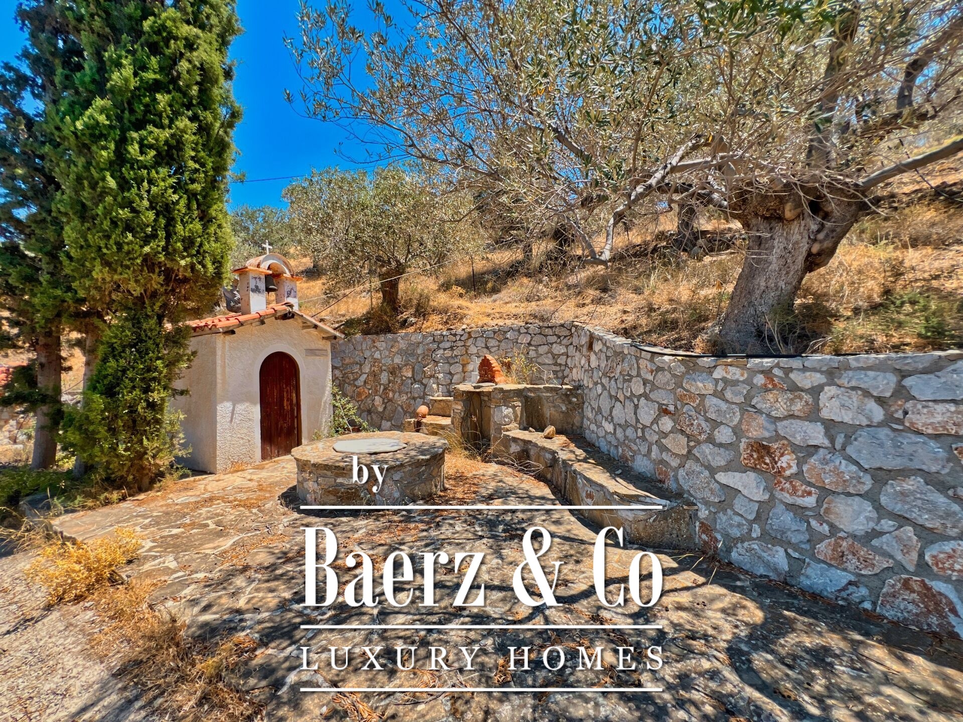 Access to the property is easy via a dirt road, and its location is particularly privileged, as it lies just 7 kilometers from the center of a charming seaside town and only 10 minutes from the island of Poros, offering immediate access to cosmopolitan options without sacrificing peace and seclusion.