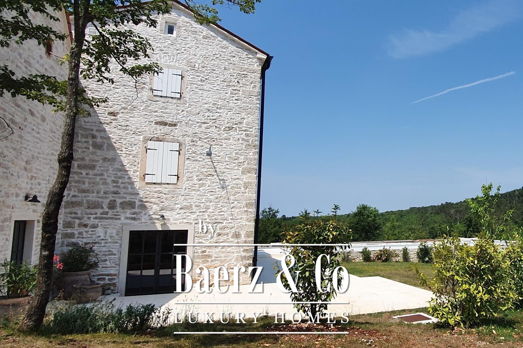 Luxe villa Grožnjan is een zeldzaam landgoed in het hart van het binnenland van Istrië, waar authentiek erfgoed harmonieus samengaat met verfijnd hedendaags wonen. Op een perceel van 13.497 m² biedt deze eigendom 517 m² woonruimte, verdeeld over drie afzonderlijke gebouwen: een hoofdgebouw in natuursteen, een intiem loungehuis en een architectonisch nieuwbouwdeel. De originele stenen gebouwen zijn met de grootste zorg gerestaureerd, waarbij meer dan 250 jaar Istrische traditie en architectonisch karakter bewaard zijn gebleven.