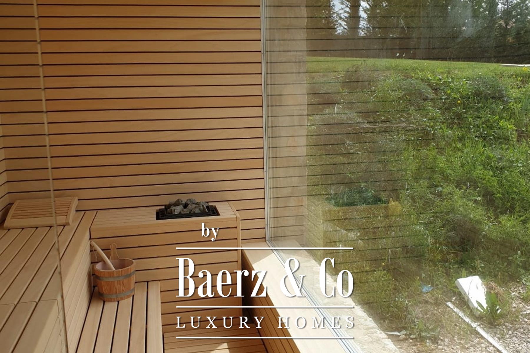 Het moderne gebouw voegt verfijnde ontspanning toe, waaronder een wellnessruimte, mediaruimte, loungegedeelte en een zwembad van 18 meter met een aangrenzend zonneterras. Er is voorzien in de mogelijkheid voor een extra poolhouse met zomerse keuken en wijnkelder, wat een unieke kans biedt voor persoonlijke invulling, aangezien het hedendaagse gedeelte nog in aanbouw is.