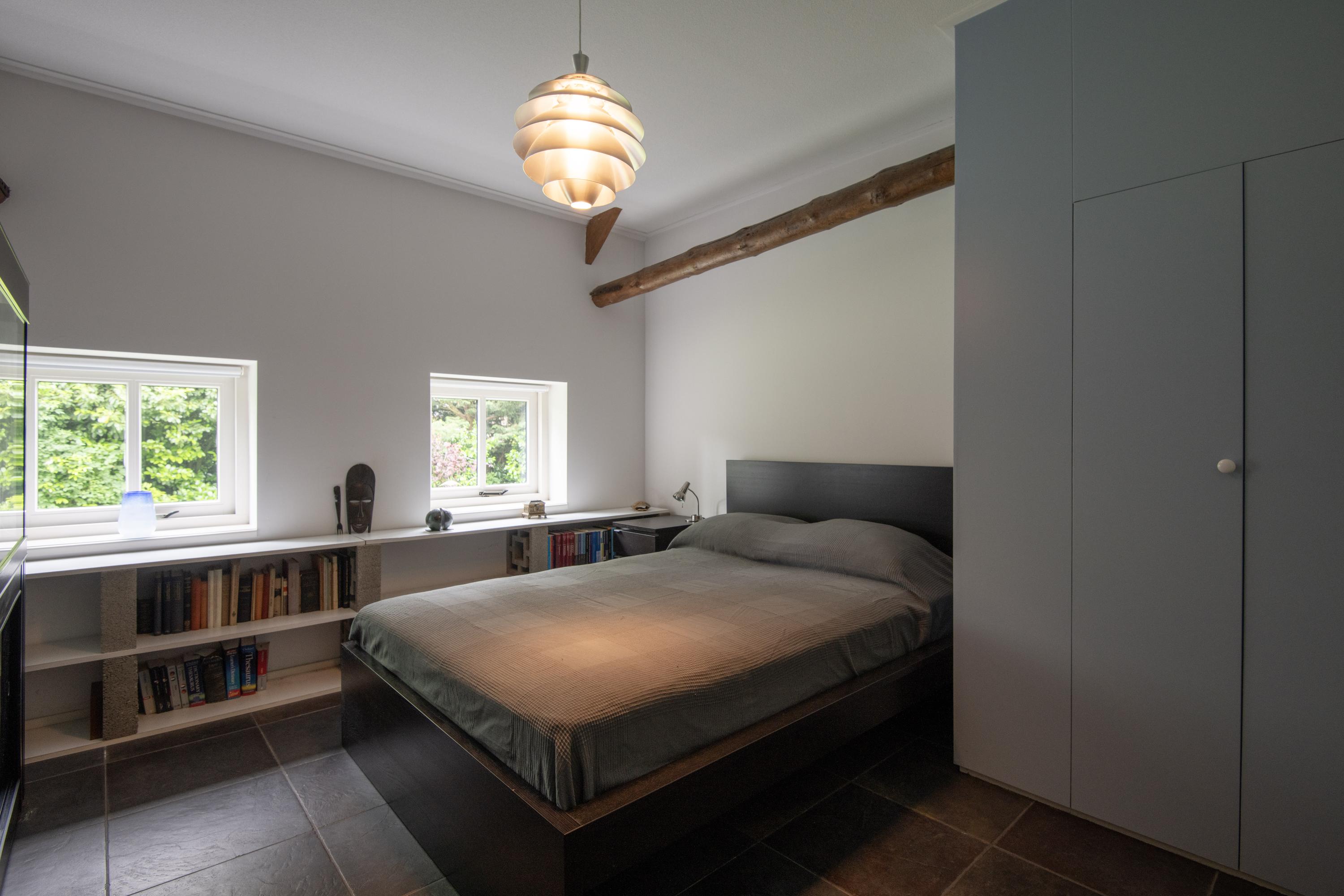 De dakvensters zorgen voor een zee aan licht. Aan de bibliotheek grenst een tweede woonkamer, atelier, tv-kamer; zomaar een paar functies die u aan die 60m2 zou kunnen toekennen. Aan de andere kant van de bibliotheek is nog een slaapkamer met aangrenzende 3e badkamer. Deze is ingericht met een grote douche, wastafel en het
