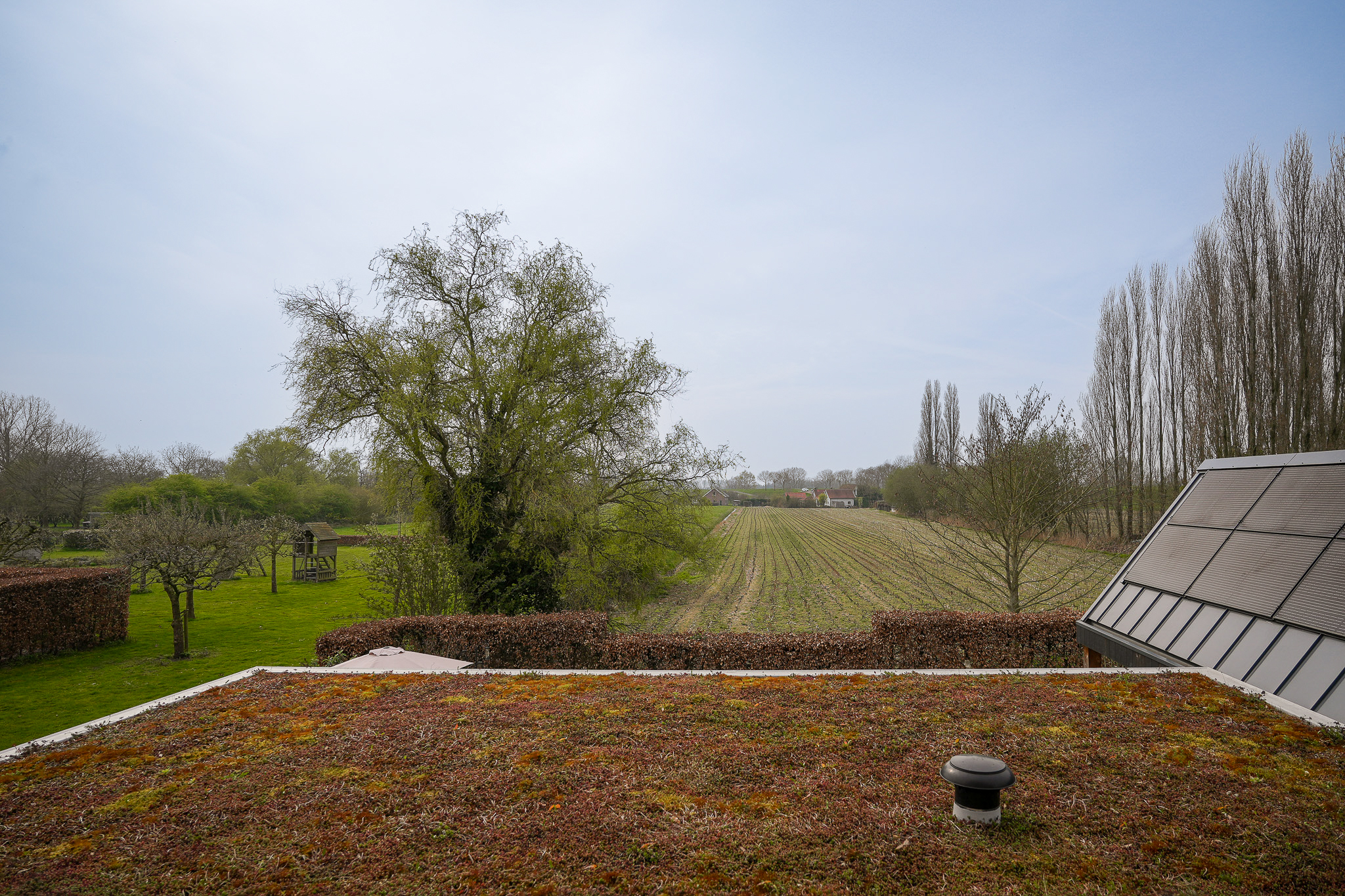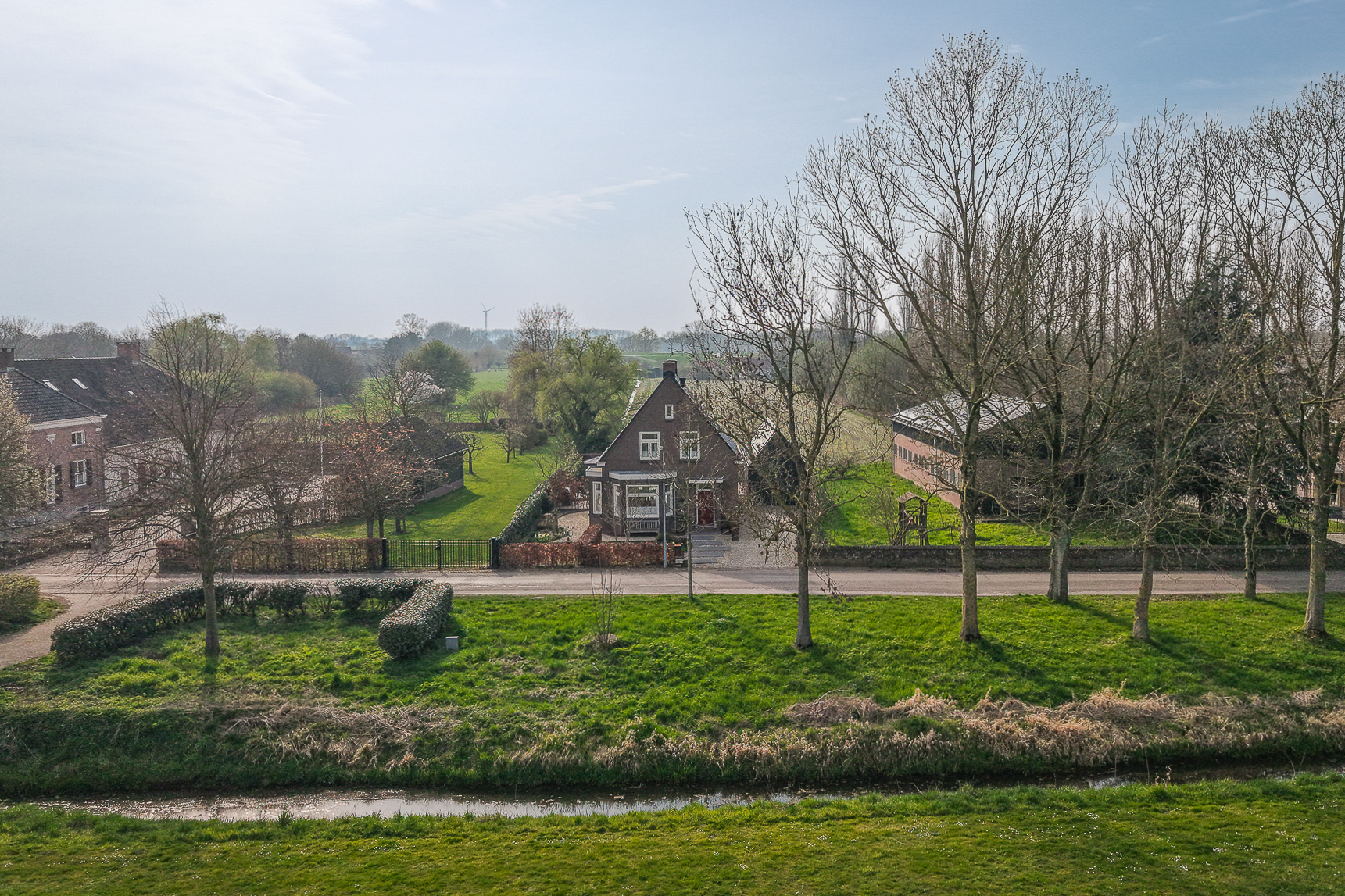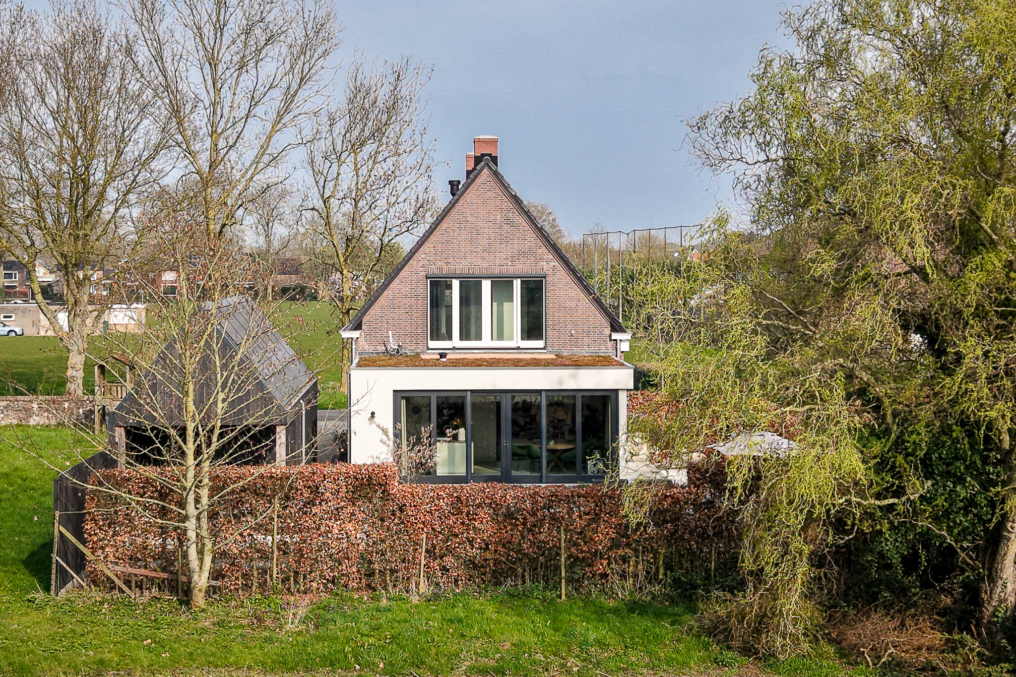 Deze opzet zorgt voor een prettige indeling van het perceel, met beschutte plekken bij de woning en open zichtlijnen naar de achterliggende landerijen.