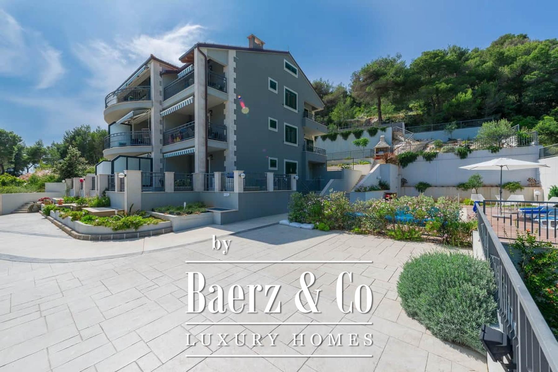 Buiten vormt het aangelegde perceel van 1.012 m² het hart van het eigendom, met een gedeeld zwembad omgeven door volwassen groen. De rustige sfeer en de uitzonderlijke nabijheid tot zee en strand onderscheiden dit object voor wie investeringsoverwegingen én een privé toevluchtsoord aan de Middellandse Zee zoekt. Appartementenhuis Hvar Milna is een buitenkans in een felbegeerd kustgebied.