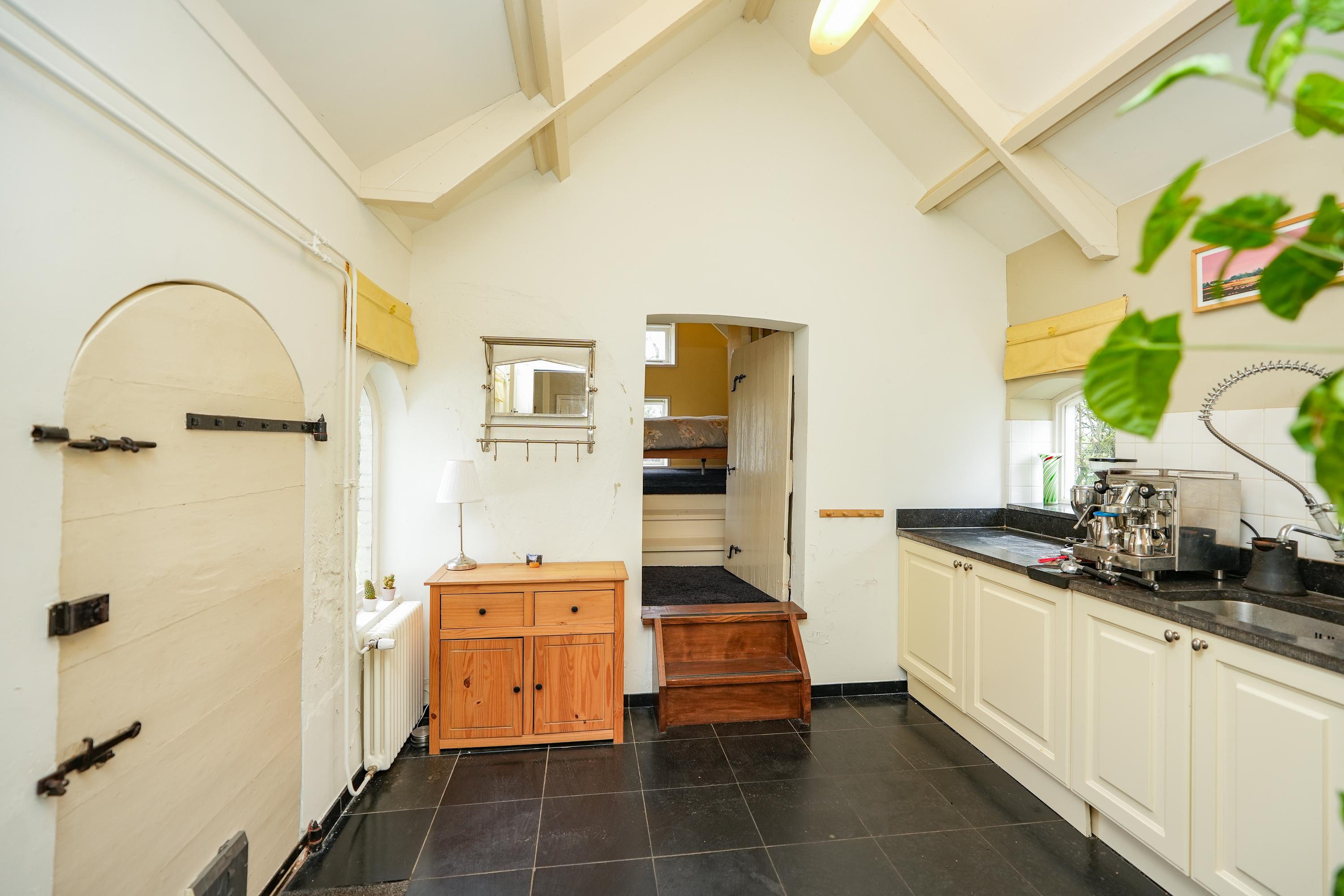Onder de bijkeuken/slaapkamer is een paardenstal gevestigd die nu in gebruik is als schuur.
