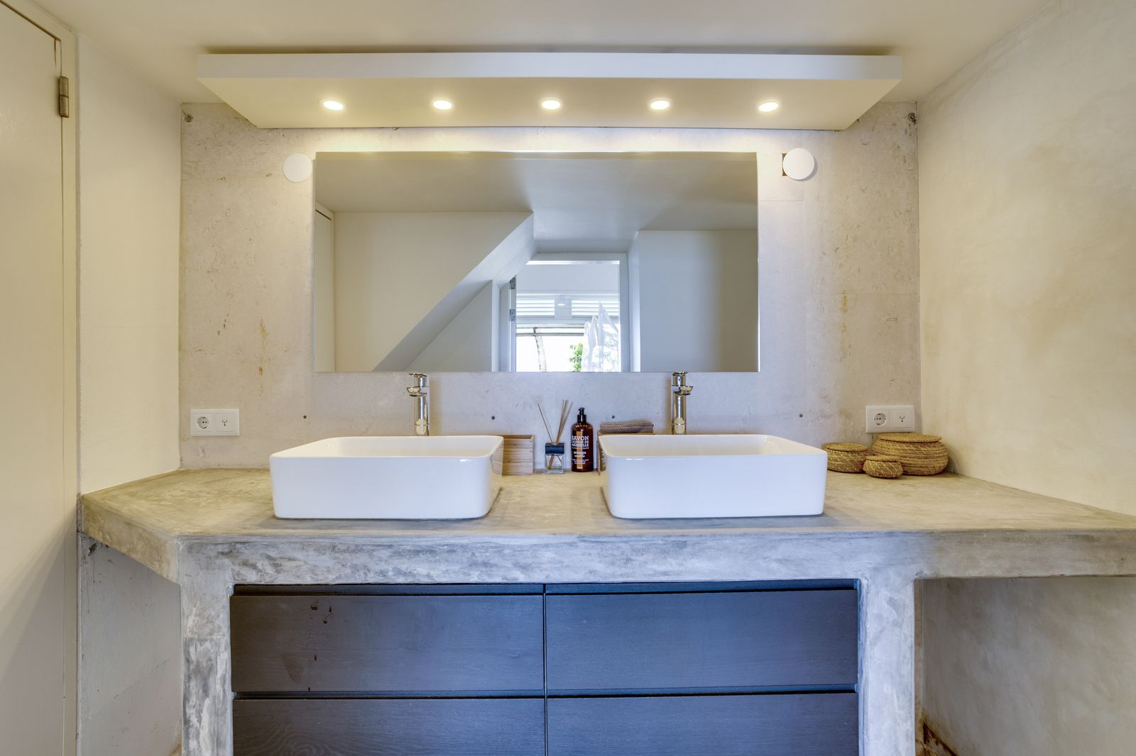Het hoofdgebouw biedt een lichte en ruime woonkamer, een volledig uitgeruste moderne keuken, de master bedroom en een gasten-toilet. In het tweede gedeelte bevinden zich de overige drie slaapkamers: twee grote slaapkamers met adembenemend uitzicht op zee en een knusse slaapkamer op de bovenverdieping, perfect voor kinderen of als extra logeerkamer. Alle vier de slaapkamers hebben een eigen badkamer, waardoor de villa in totaal beschikt over 4 slaapkamers en 4,5 badkamers.