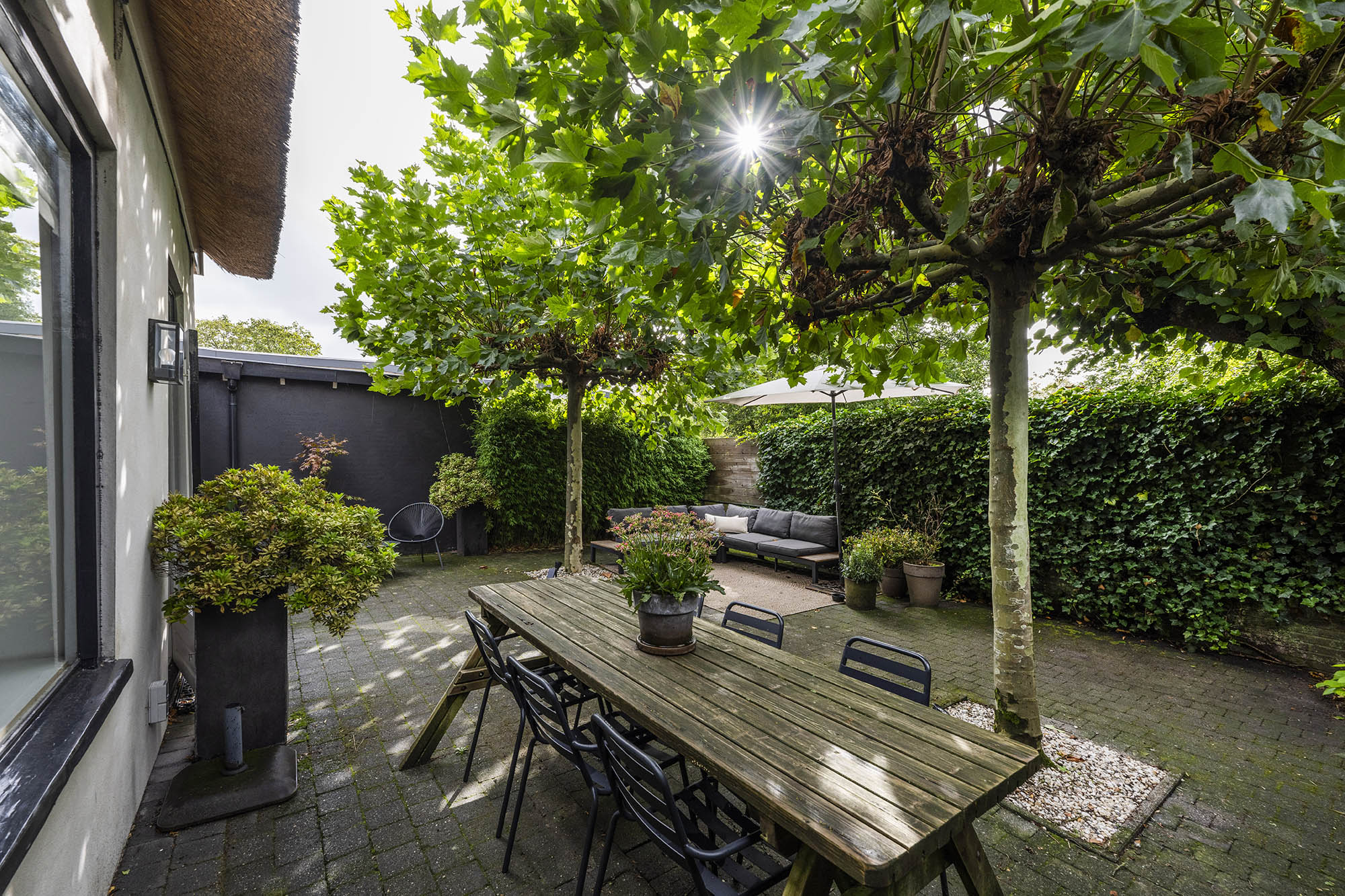 Kortom: een ruim, sfeervol, rietgedekt en verrassend huis op een unieke plek in het bruisende hart van Laren.