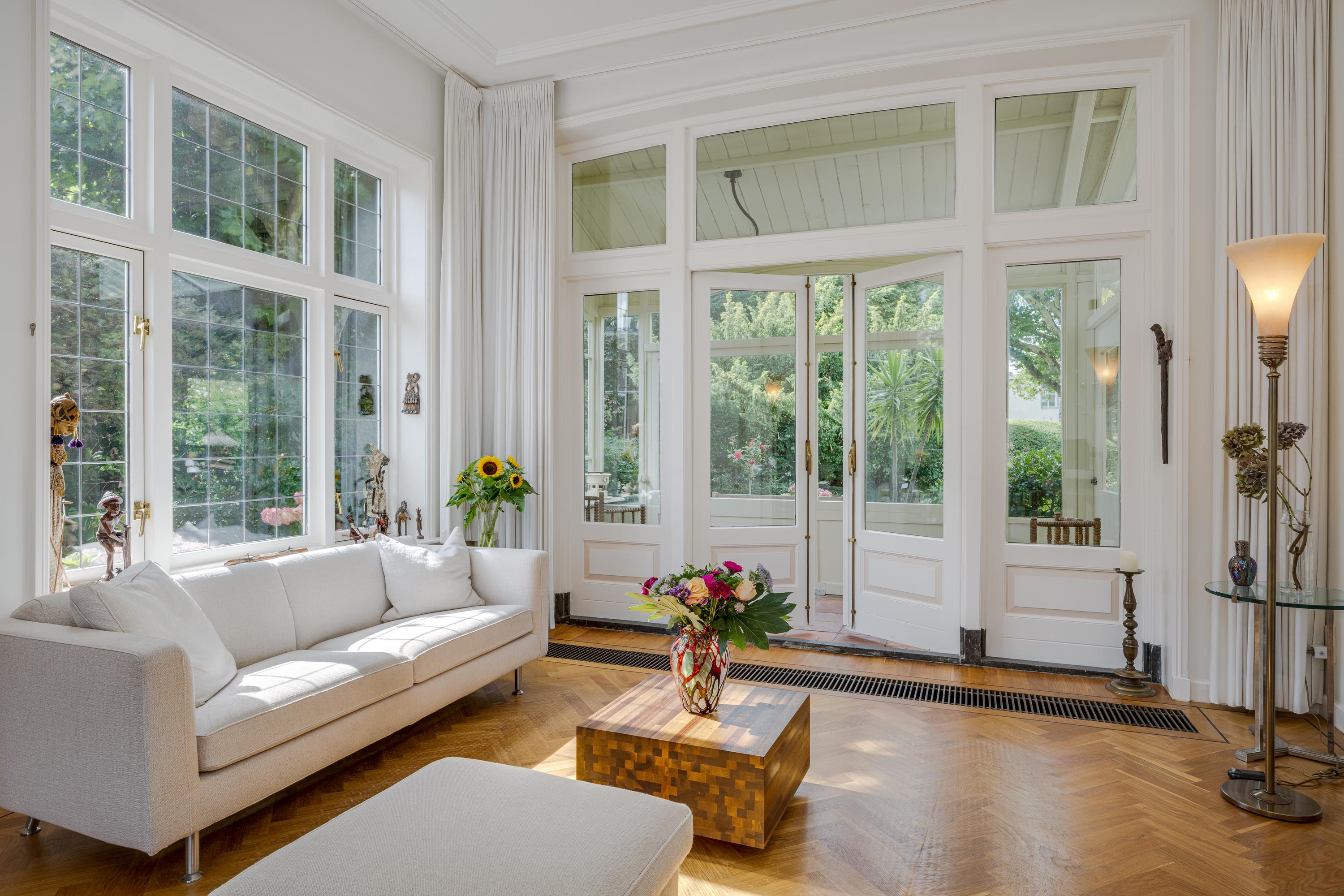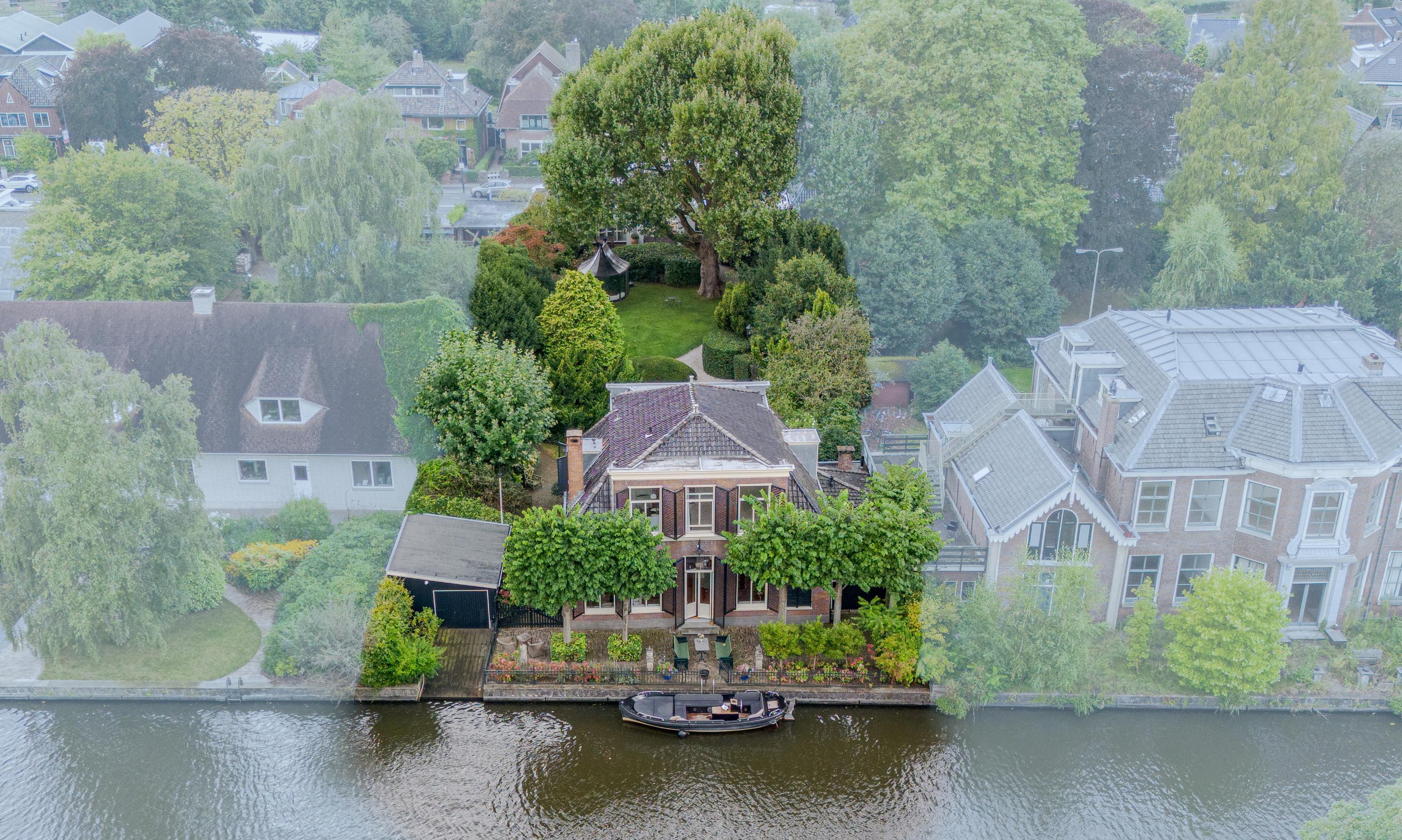 Het hoofdgebouw uit 1820 wordt getypeerd door de klassieke stijlelementen uit die periode: een centrale entree met aan weerszijden twee raampartijen met luiken en op de eerste etage de aanzet van de kap met centraal een gevel met drie raampartijen met luiken. Ook binnen zijn de voor deze bouwperiode kenmerkende eigenschappen aanwezig; hoge statige plafonds en raampartijen aan alle zijden zorgen voor een prachtige lichtinval op elk moment van de dag. Op de begane grond zijn een L-vormige woonkamer en suite, open haard met aan de tuinzijde een serre en aan de waterzijde zicht op de Rijn. De centrale hal loopt van voor- naar achterzijde en heeft openslaande deuren naar de tuin met terras aan de waterkant. Aan de linkerzijde van de hal liggen de keuken met bijkeuken met een doorloop naar de schuur, de ruime kelder en de formele eetkamer met ook weer een prachtig zicht op de Rijn en de voorbijvarende boten.