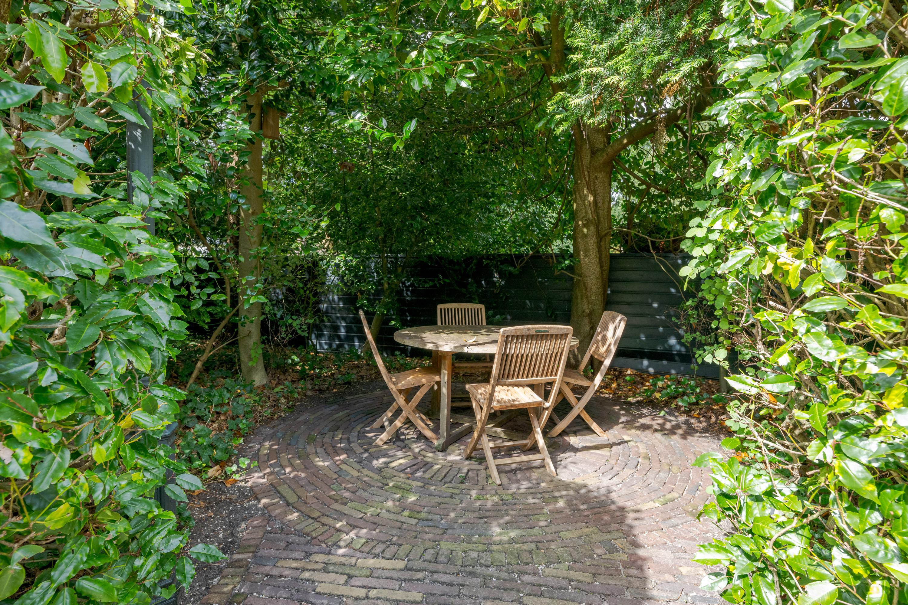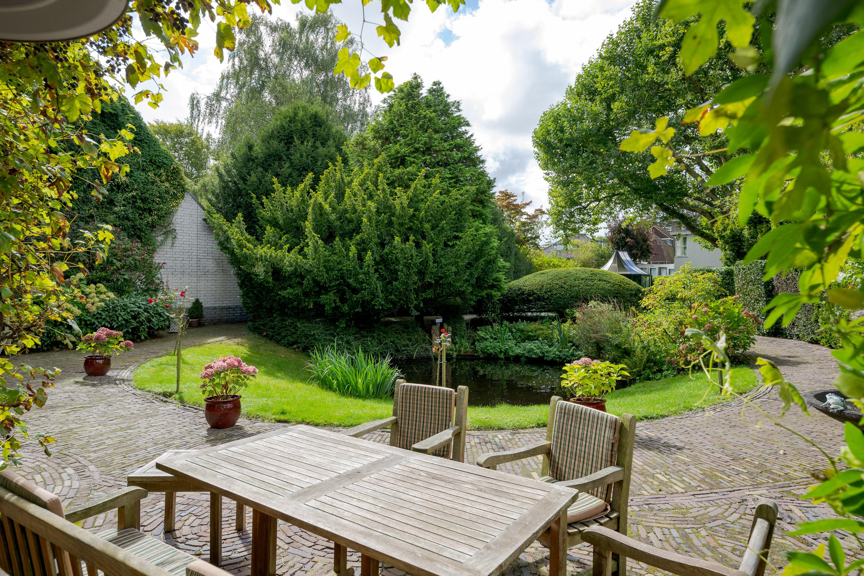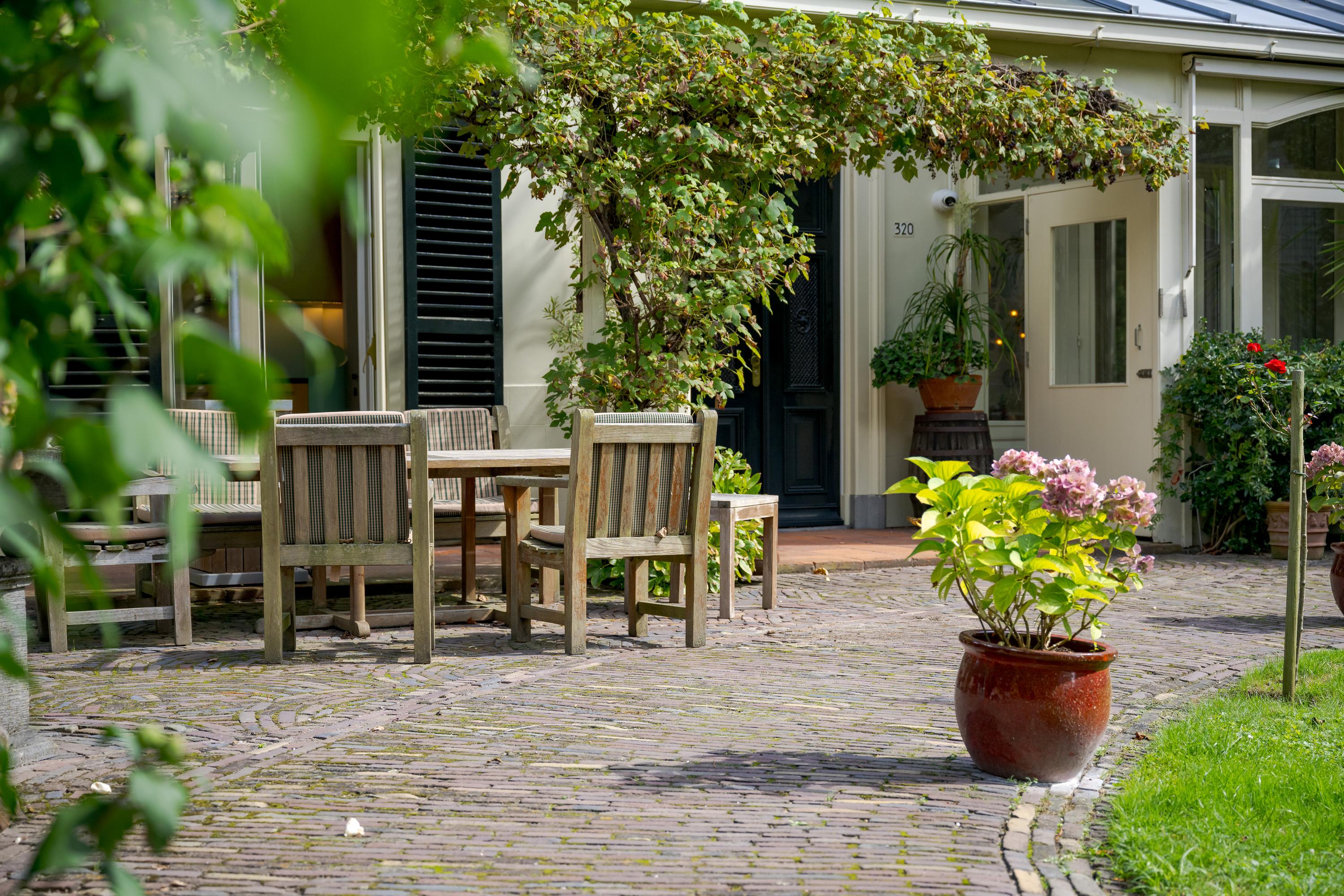 In de tuin met terras langs het water kunnen ontbijt, lunch, borrel en diner tegen een achtergrond van voorbijvarende bootjes genuttigd worden. Mocht er een bekende voorbij varen, dan kan er even aangelegd worden om in te stappen. Uiteraard zou je ook de eigen boot kunnen pakken. De woning beschikt immers over een eigen botenhuis met helling, waar je zou ook nog een insteekhaven zou kunnen maken en met een klein stukje varen ben je op De Kaag of naar het midden in het Groene Hart, het centrum van Leiden met haar vele romantische grachten en terrassen.