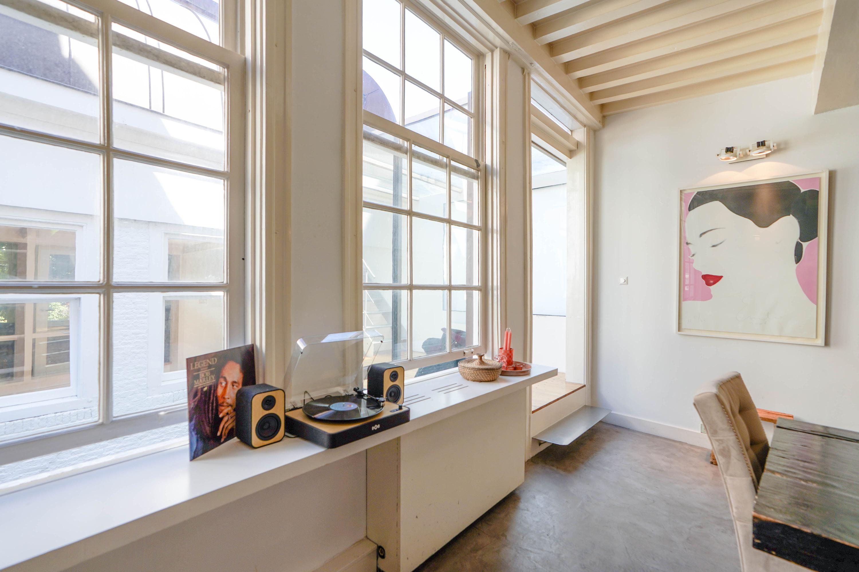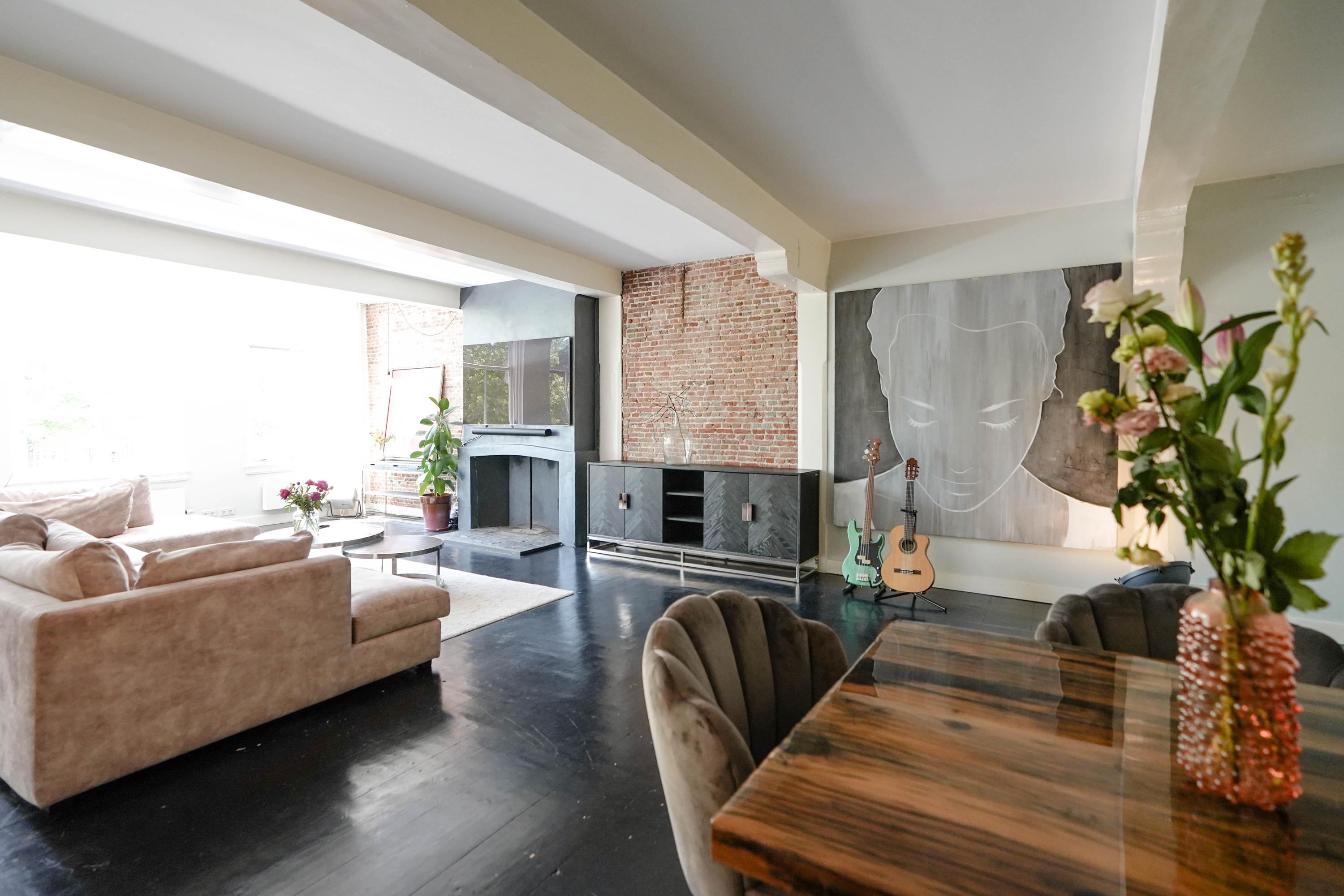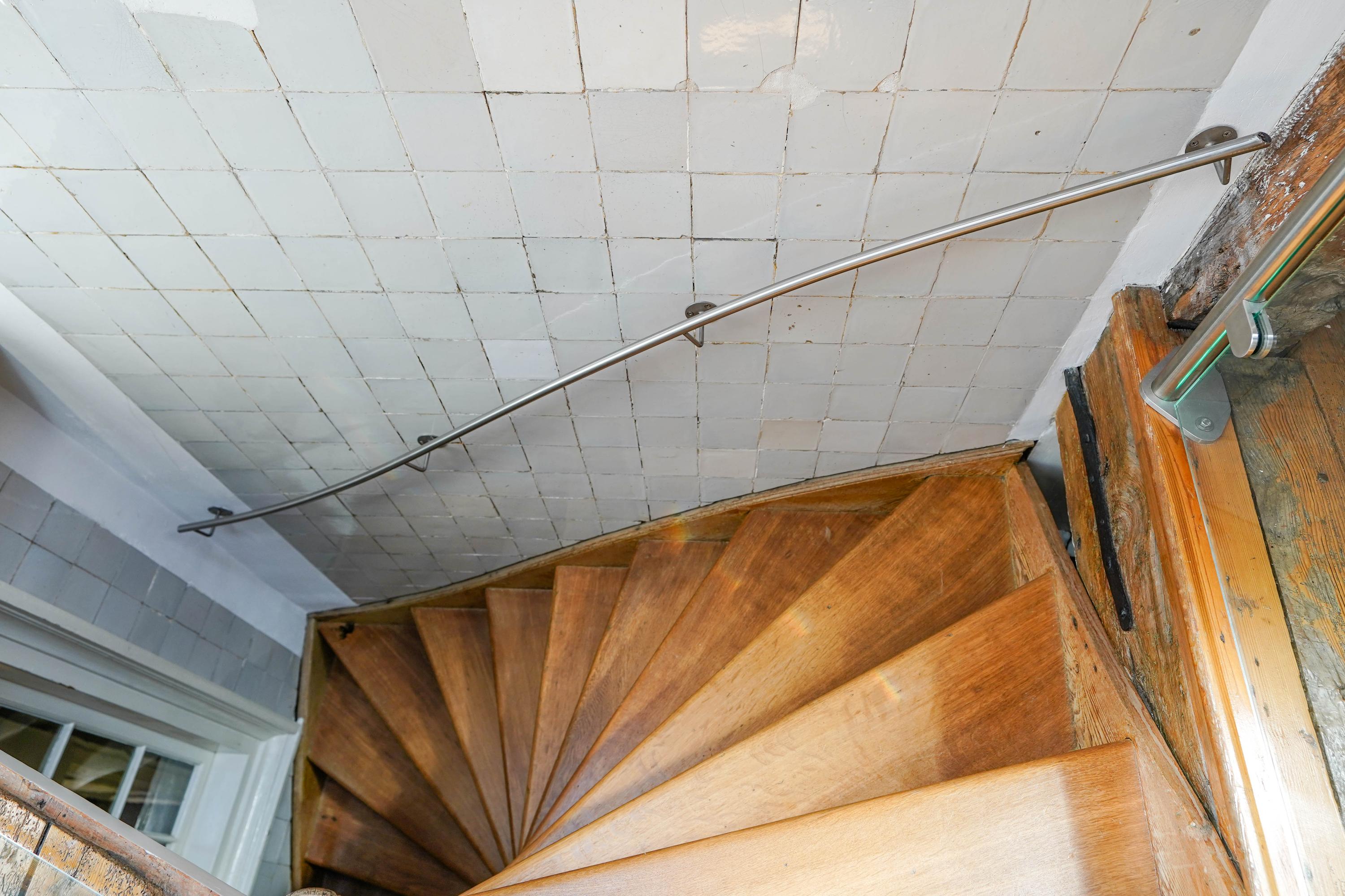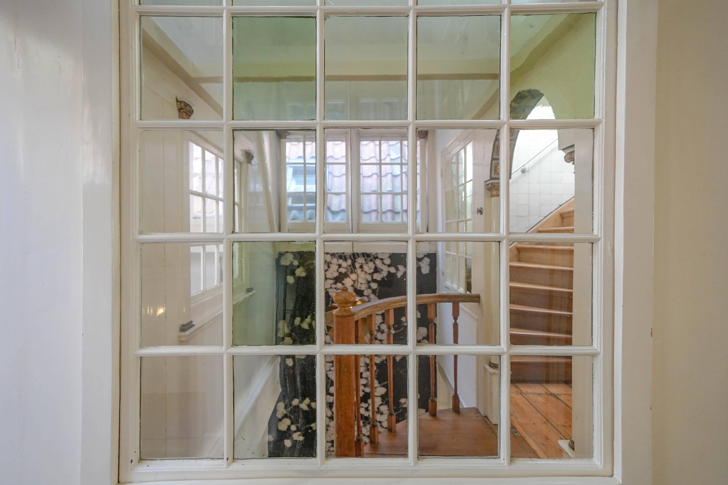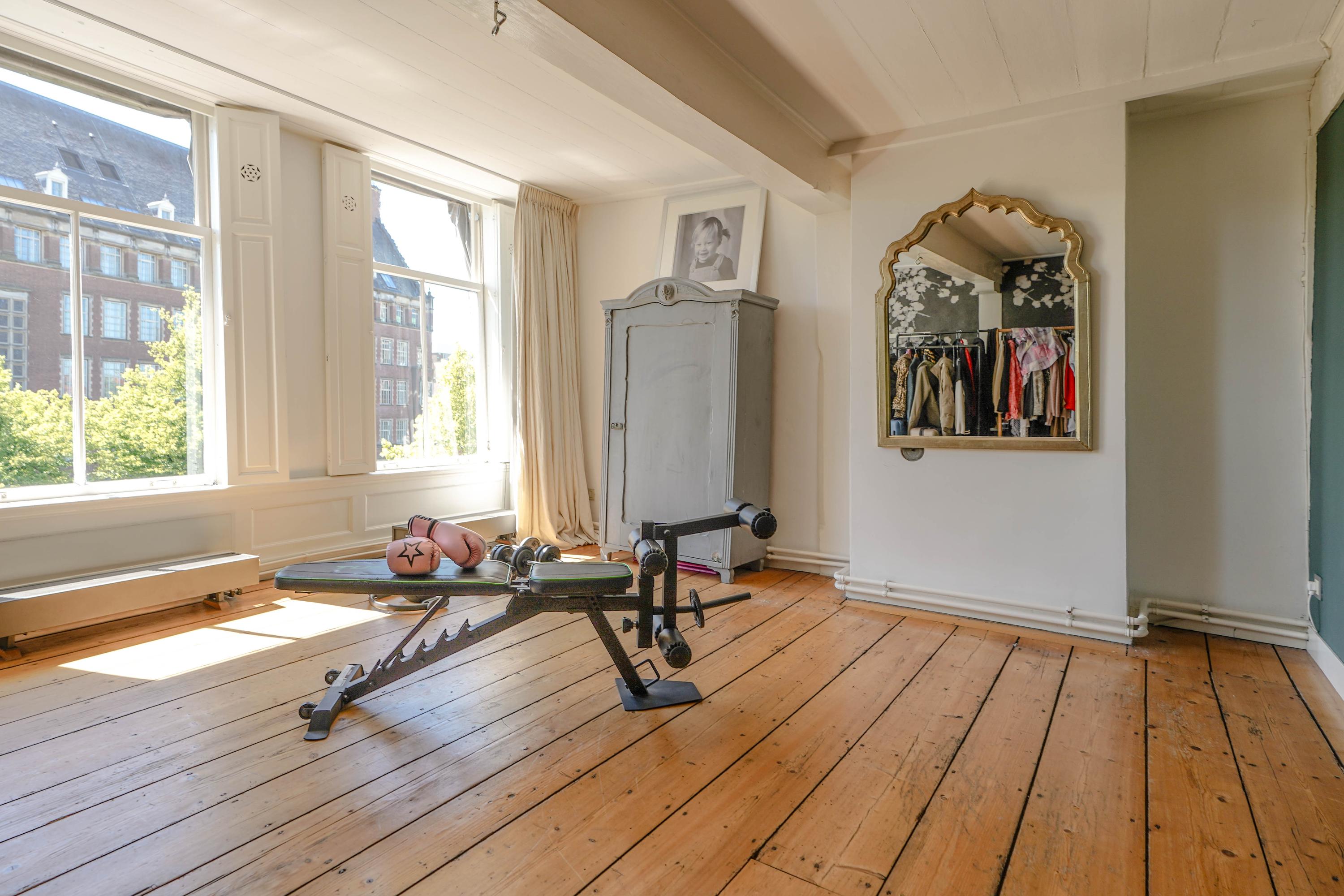 Het voorhuis is het oorspronkelijke hoofdhuis. Op de begane grond is een winkel gevestigd (kan in verhuurde staat worden gekocht) en hier vindt je nu op de 1e etage de woonkamer van maar liefst 70 m² van waar je uitkijkt over de Rijn en het Stadhuisplein. Aan de achterzijde ligt de woonkeuken met ruimte. Veel ruimte. Met 50 m², lange werkbladen en een eettafel met plek voor 12 is dit nu het hart van het huis. Vanuit hier is ook een van de doorgangen naar het achterhuis langs de binnenplaats wat voor veel lichtinval zorgt. Een etage hoger zijn de slaapverdiepingen. Hier is de woning afgepeld tot de structuur met de prachtige houten sporenkap vol in het zicht. Tussen de sporen zijn hoge Velux ramen aangebracht die zorgen voor een fraaie lichtinval op elk moment van de dag. Aan voorzijde vindt je verdeeld over twee verdiepingen drie slaapkamers, een badkamer en vooral veel bergruimte met inbouwkasten en een linnenkamer. Aan achterzijde beslaat de master bedroom met badkamer ensuite de gehele kap met een nok van maar liefst 8 meter hoog.