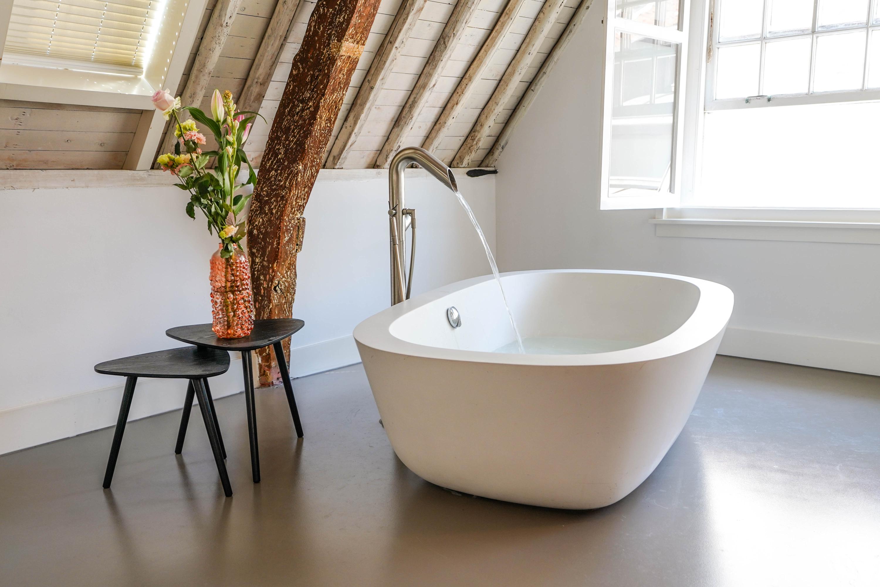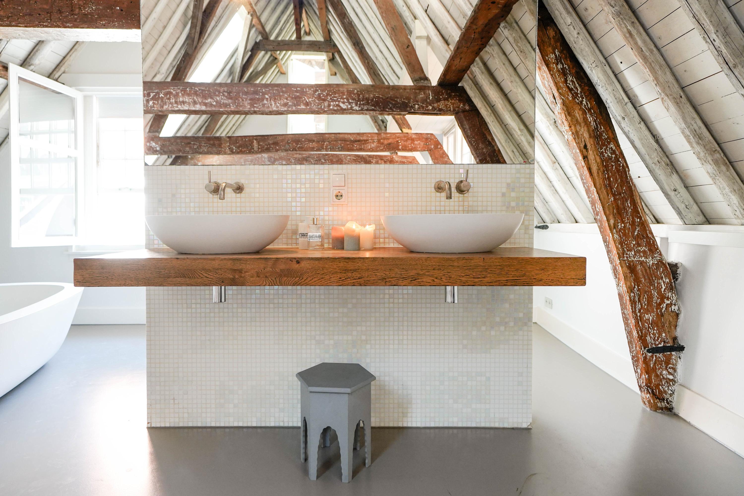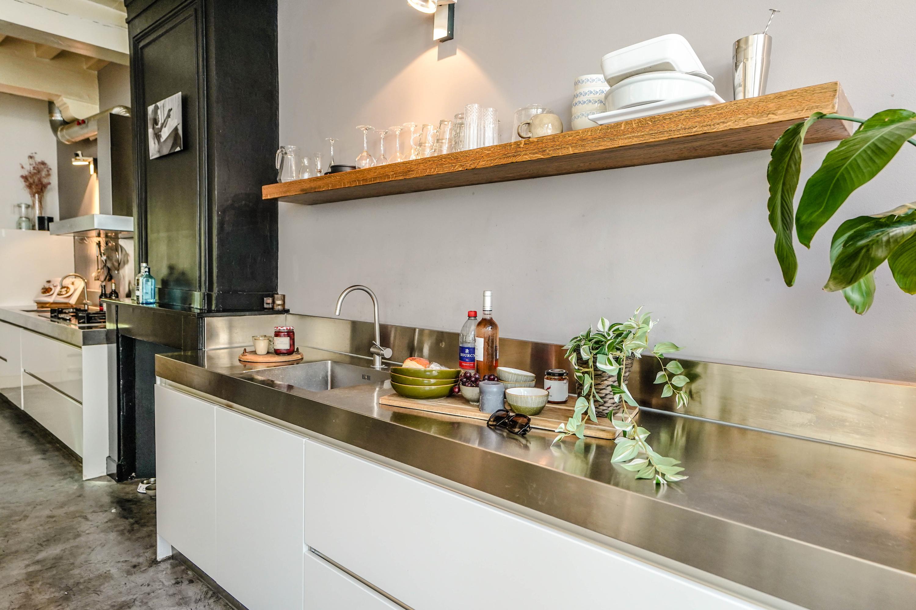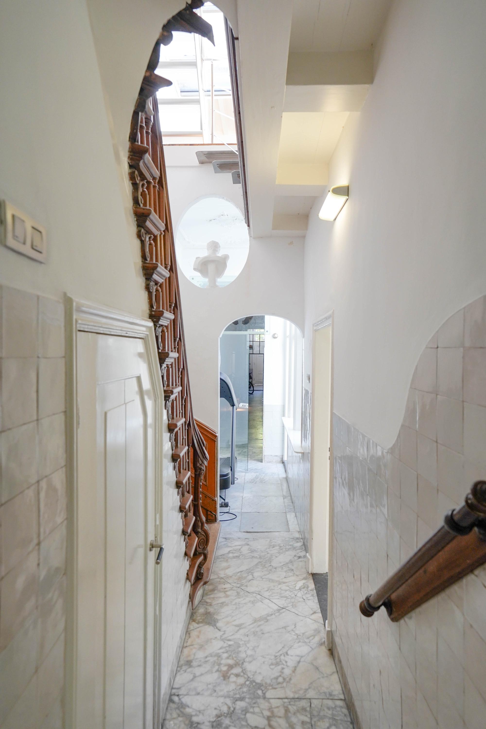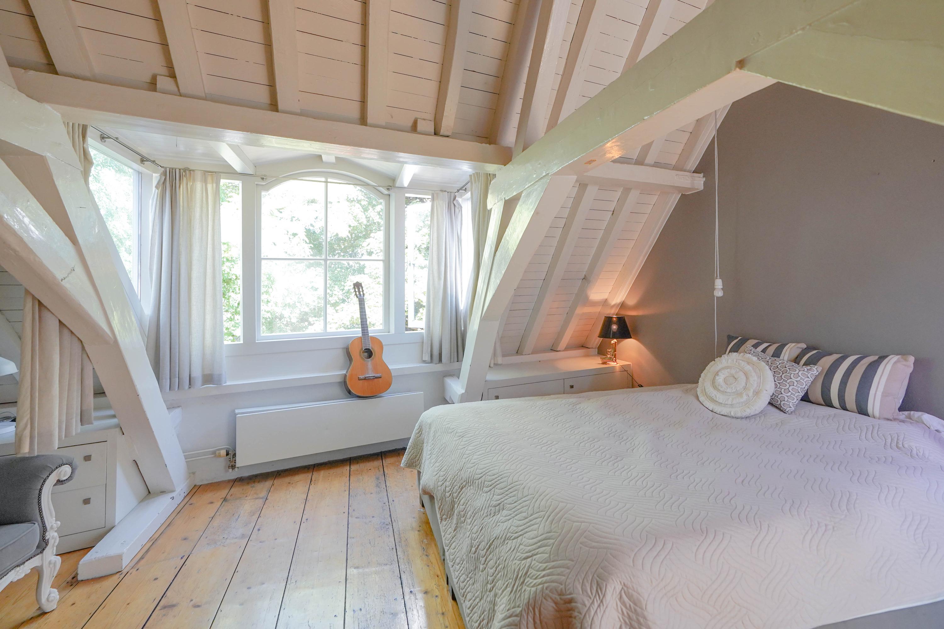 Het voorhuis is het oorspronkelijke hoofdhuis. Op de begane grond is een winkel gevestigd (kan in verhuurde staat worden gekocht) en hier vindt je nu op de 1e etage de woonkamer van maar liefst 70 m² van waar je uitkijkt over de Rijn en het Stadhuisplein. Aan de achterzijde ligt de woonkeuken met ruimte. Veel ruimte. Met 50 m², lange werkbladen en een eettafel met plek voor 12 is dit nu het hart van het huis. Vanuit hier is ook een van de doorgangen naar het achterhuis langs de binnenplaats wat voor veel lichtinval zorgt. Een etage hoger zijn de slaapverdiepingen. Hier is de woning afgepeld tot de structuur met de prachtige houten sporenkap vol in het zicht. Tussen de sporen zijn hoge Velux ramen aangebracht die zorgen voor een fraaie lichtinval op elk moment van de dag. Aan voorzijde vindt je verdeeld over twee verdiepingen drie slaapkamers, een badkamer en vooral veel bergruimte met inbouwkasten en een linnenkamer. Aan achterzijde beslaat de master bedroom met badkamer ensuite de gehele kap met een nok van maar liefst 8 meter hoog.