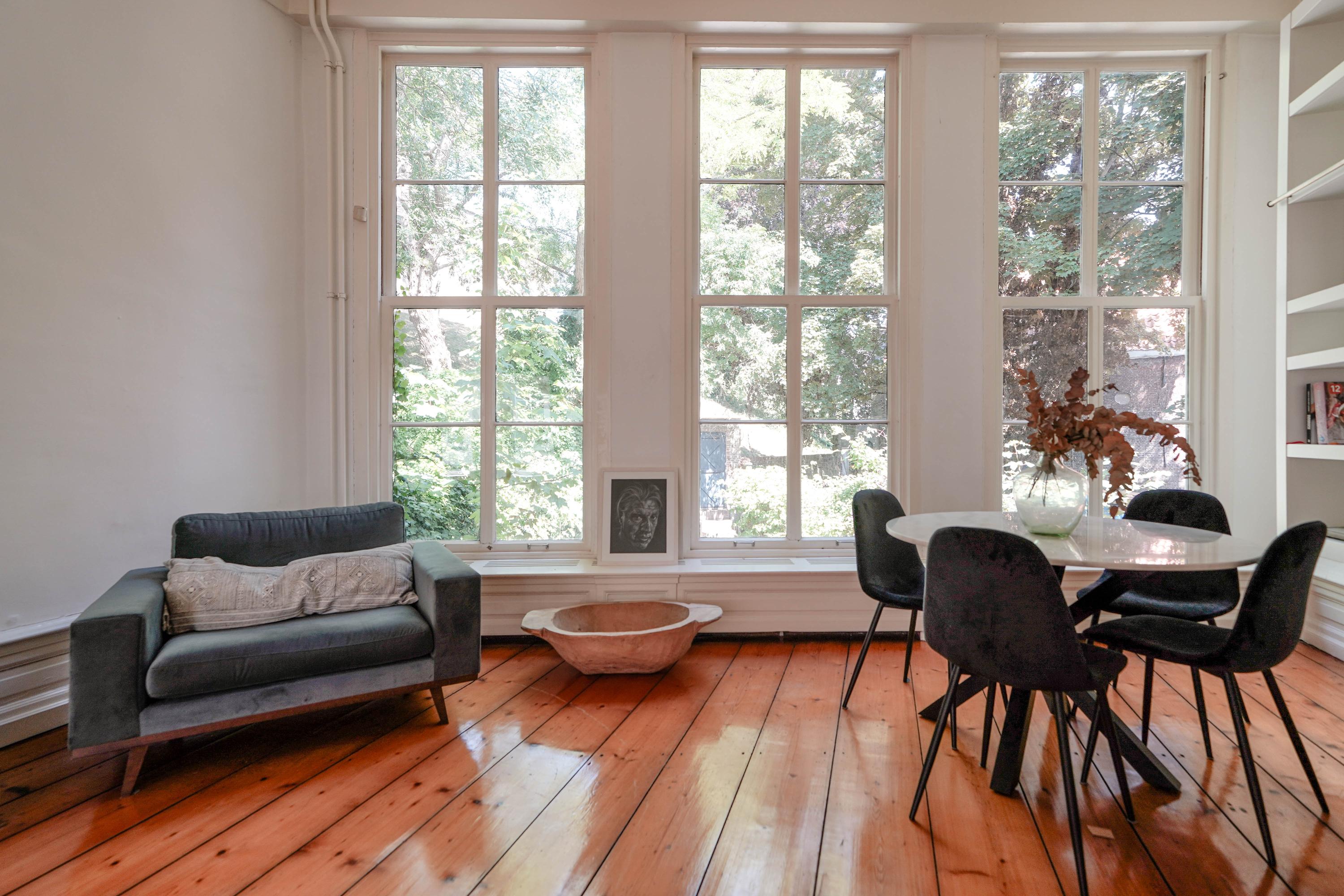 Stap je de voordeur uit, dan sta je midden in het hart van het middeleeuwse en bruisende centrum van Leiden: terrassen, de markt, voorbijvarende bootjes. musea, restaurants. Werkelijk alles ligt op loopafstand. Scholen, sportclubs en andere activiteiten zijn op korte afstand met de fiets te bereiken, net als Leiden Centraal. Voor de auto krijg je in de binnenstad een vergunning. Je kan hem niet direct voor de deur kwijt, maar in de ochtenden en avonden kan je wel even voorrijden. Parkeren kan prima iets verderop en bezoek kan in één van de parkeergarages in de buurt parkeren.
