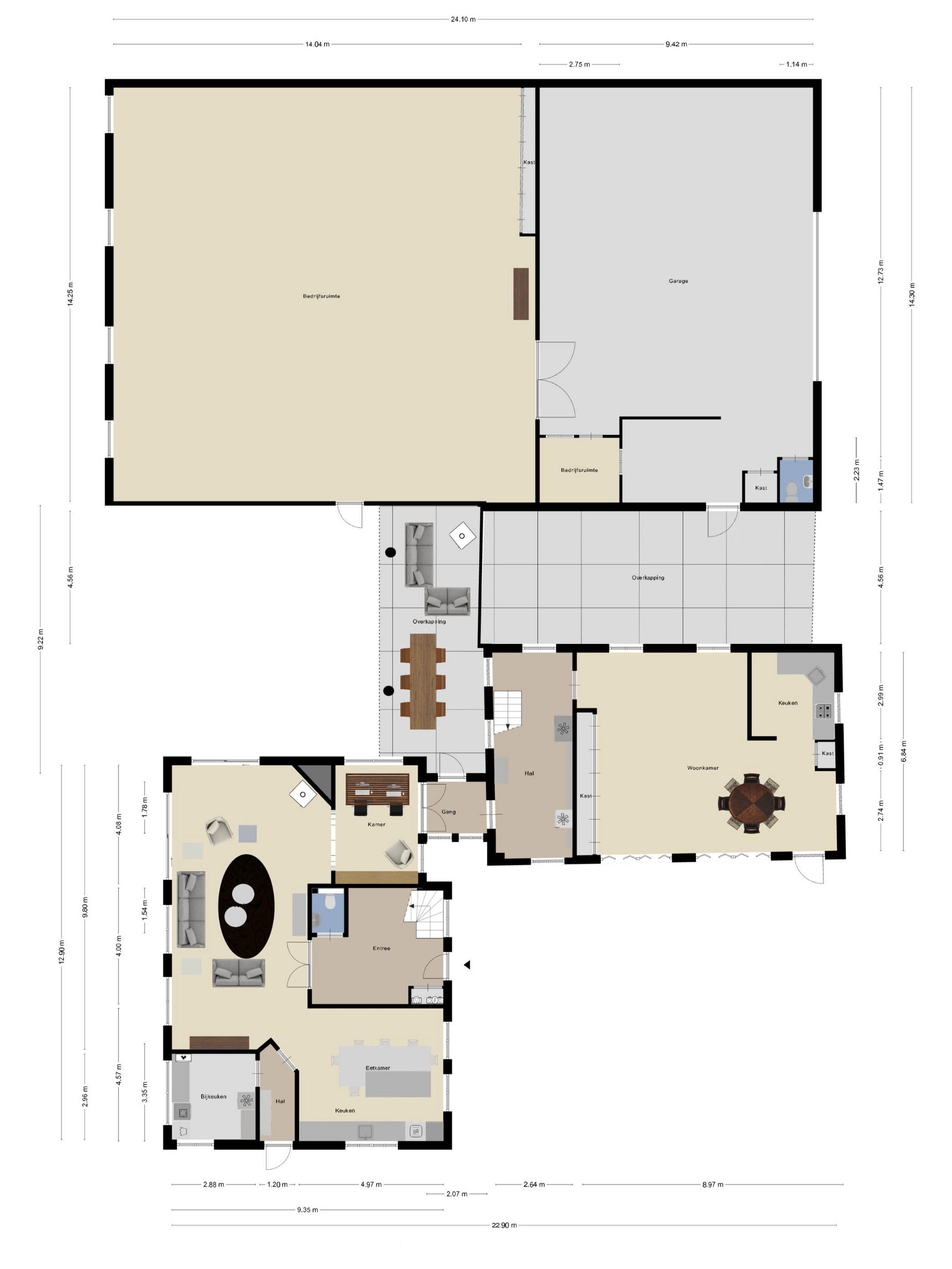 Overkapping tussen de woning en de loods t.b.v. extra opslag (ca. 45 m²).