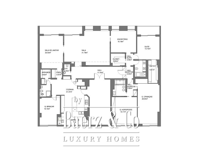 Appartement Lisboa Amoreiras staat synoniem voor discreet stedelijk comfort in een van de meest gewaardeerde wijken van Lissabon. Met een volledig gerenoveerd woonoppervlak van 301 m² biedt dit vierkamerappartement een harmonieuze balans tussen ruimtelijkheid, zeldzaam daglicht en een praktische, evenwichtige indeling; ideaal voor gezinnen en internationaal georiënteerden. De royale entreehal van 17,8 m² leidt op stijlvolle wijze naar een woonkamer van 41,8 m² en een aparte eetkamer van 22 m². Een moderne keuken van 31,4 m², met aangrenzende bijkeuken en eethoek, vormt het decor voor zowel intieme als levendige momenten. De vier slaapkamers omvatten onder meer een verfijnde master suite met dubbele inloopkasten en een privébadkamer, alsmede een aparte kantoorruimte en een personeelskamer met eigen badkamer, geschikt voor uiteenlopende woonwensen.