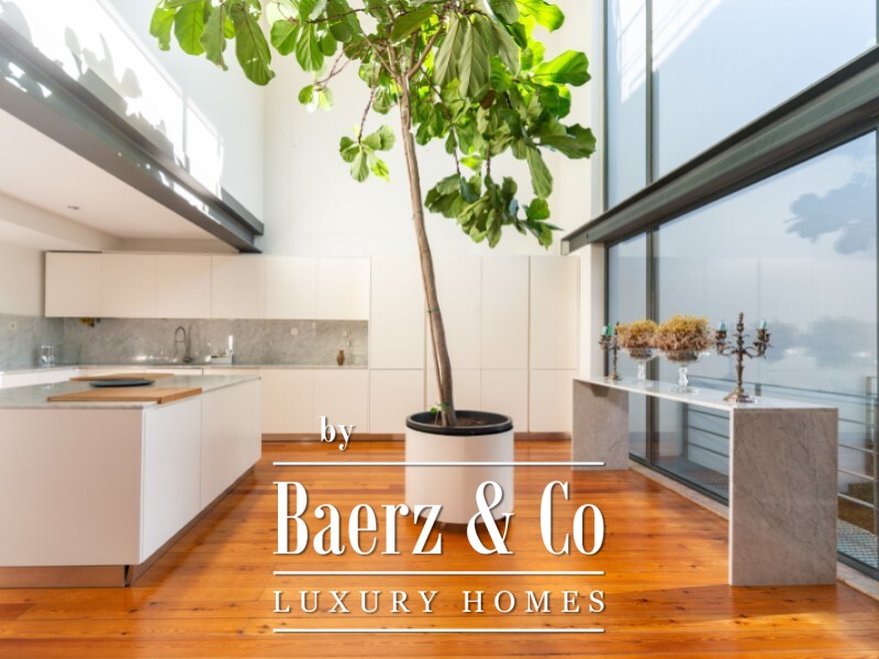 Dit duplexloft in Lissabon bevindt zich in een van de meest iconische industrieel erfgoedpanden van de stad en biedt circa 330 m² zorgvuldig ingedeelde leefruimte. De woning is ontworpen met oog voor open zichten op de rivier en weet industrieel karakter te combineren met moderniteit en comfort. Op de begane grond lopen de verschillende leefruimtes naadloos in elkaar over, gecentreerd rond een haard en twee grote ramen die direct uitzicht bieden op het water. De volledig uitgeruste keuken, gekenmerkt door een kookeiland en dubbele plafondhoogte, nodigt uit tot zowel rustige ochtenden als sfeervolle avonden, waarbij het glazen lichtschacht zorgt voor een overvloed aan daglicht.