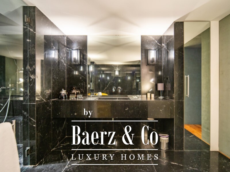 Op de bovenverdieping grenst de woon- en tv-kamer aan een entresol met zicht op zowel het hoofdverblijf als de keuken, terwijl een glazen wand uitkijkt op de lichtschacht en het daglicht diep doordringt in het interieur. De master suite beschikt over op maat gemaakte garderobekasten en een geïntegreerde badkamer, aangevuld met een volwaardige extra badkamer voor optimale flexibiliteit.