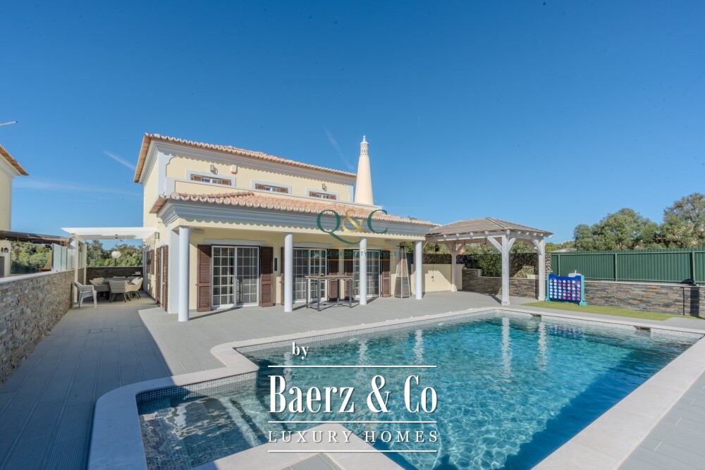 Bij aankomst bij Casa Oliveiras verwelkomen een privézwembad en een ruim terras u, ideaal voor stille ontspanning of moeiteloos entertainen onder de Algarvezon. De villa beschikt over een garage, een kelder en een aparte wasruimte – dagelijkse functionaliteit gecombineerd met ingetogen comfort. Airconditioning, een muzieksysteem, dubbele beglazing en een centraal stofzuigsysteem verhogen het woongenot, terwijl een volledig uitgeruste keuken en ingebouwde kasten extra gemak bieden.