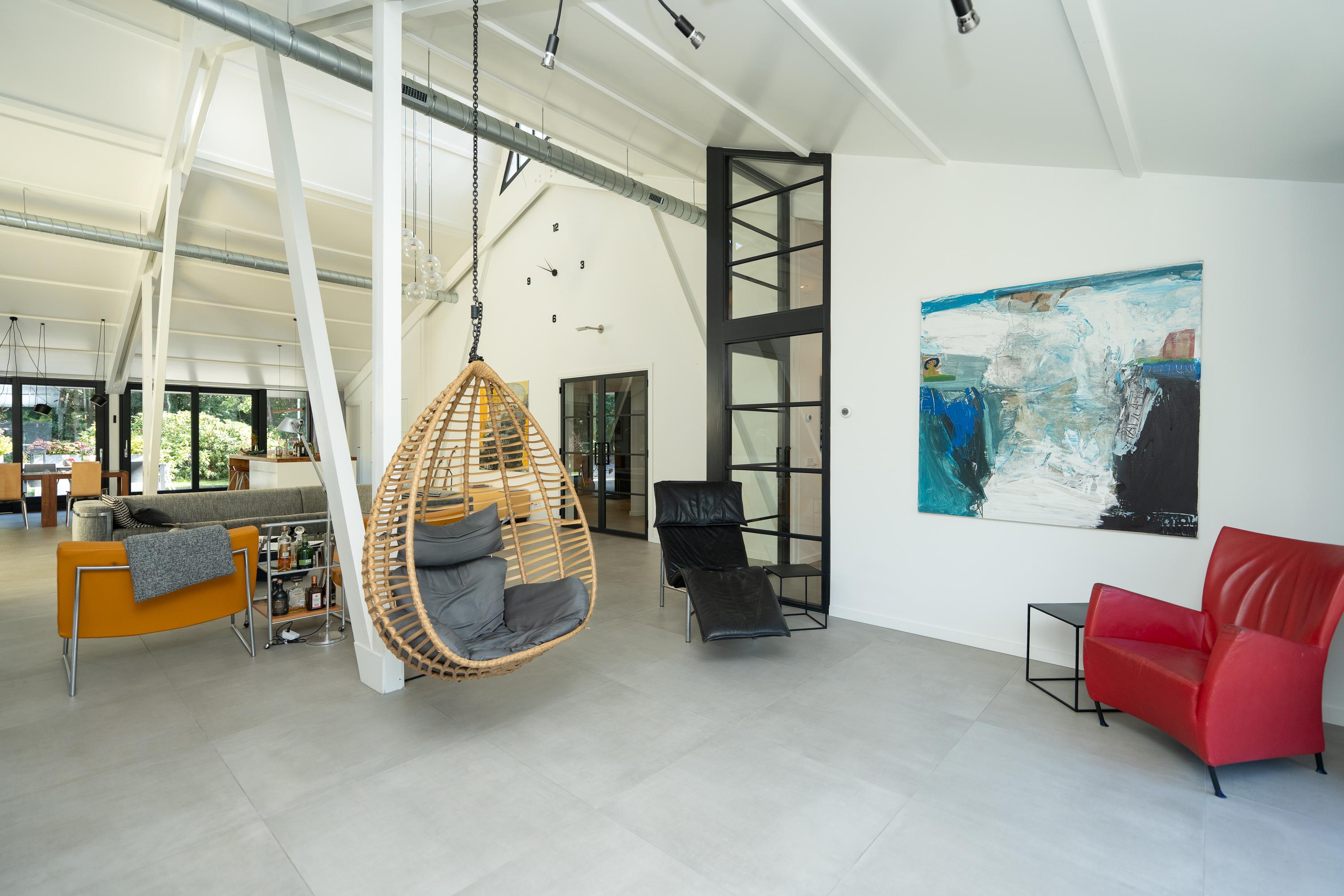 Fraaie vide bij de woonkamer, deze is nu in gebruik als studeerruimte. Ruime berging. Boven de entree is nog een vliering gesitueerd.