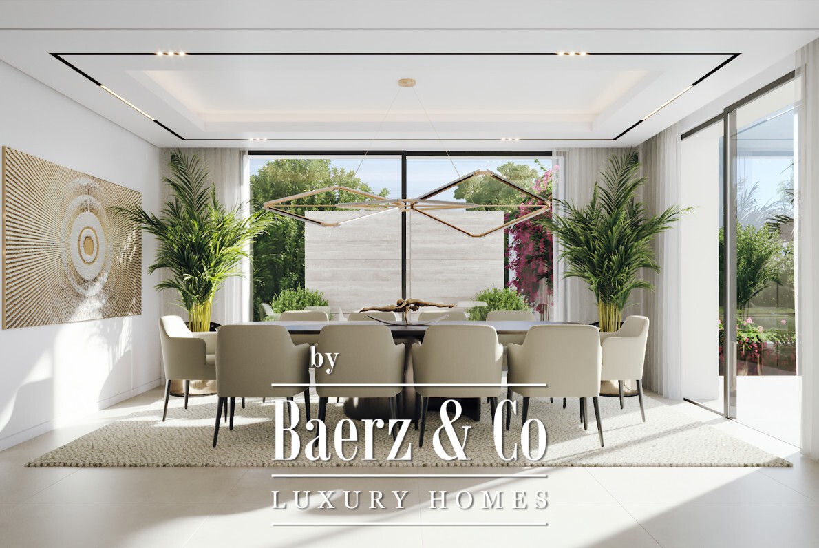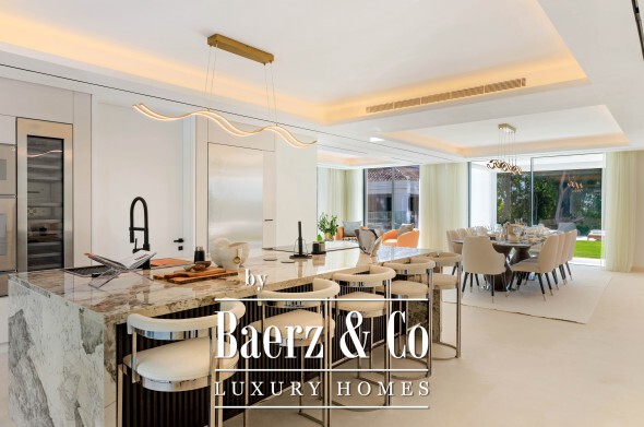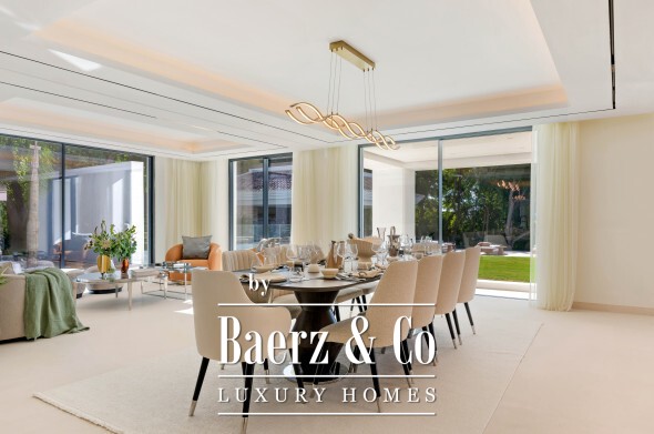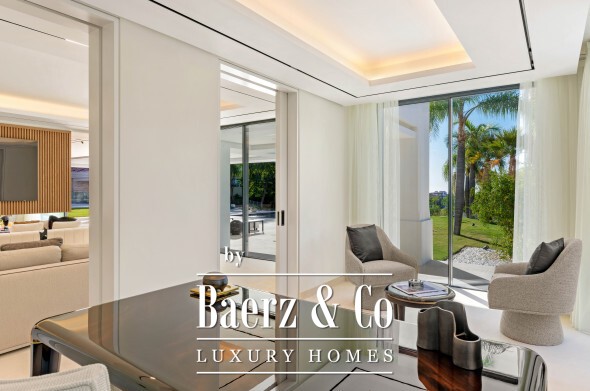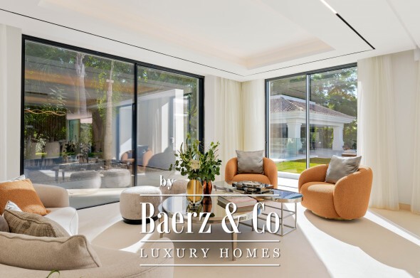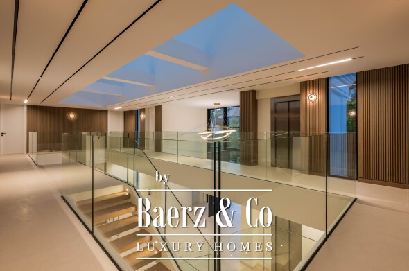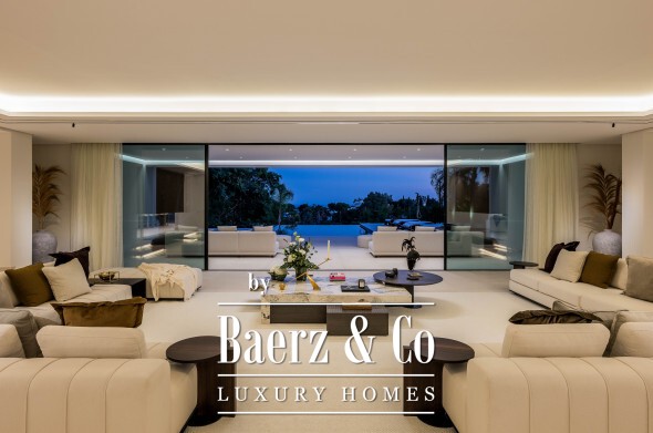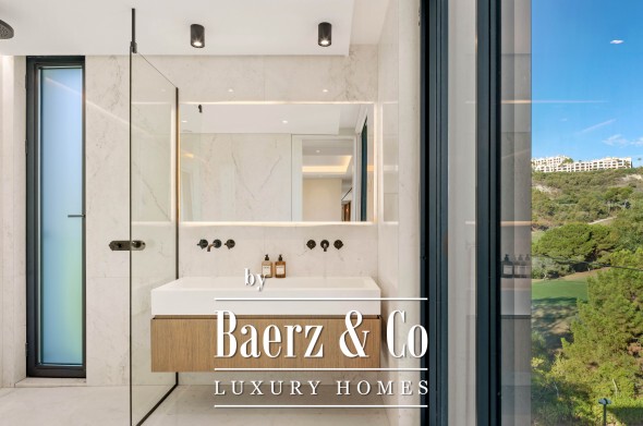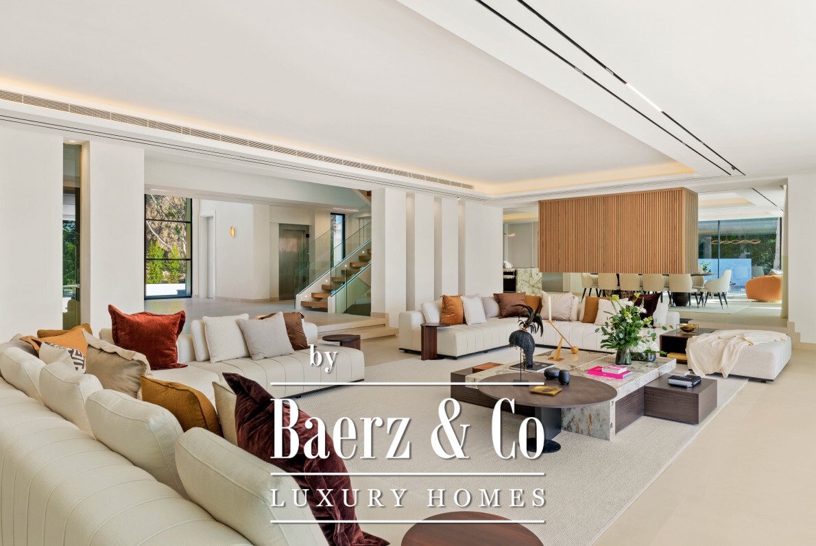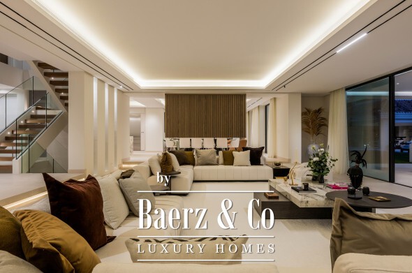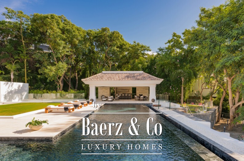 Buiten omringt een vlak aangelegde tuin het 20 meter lange infinity zwembad en biedt een serene setting voor dineren en samenkomen onder het prieel. Voorzieningen als geavanceerde klimaatbeheersing, haarden, vloerverwarming en lift waarborgen maximaal comfort. Deze villa belichaamt de kalme cadans van het mediterrane leven, gecombineerd met gemakkelijke toegang tot de kust en voorzieningen van Marbella. Hier vindt men privacy, verfijning en een verheven levensstijl in Marbella.