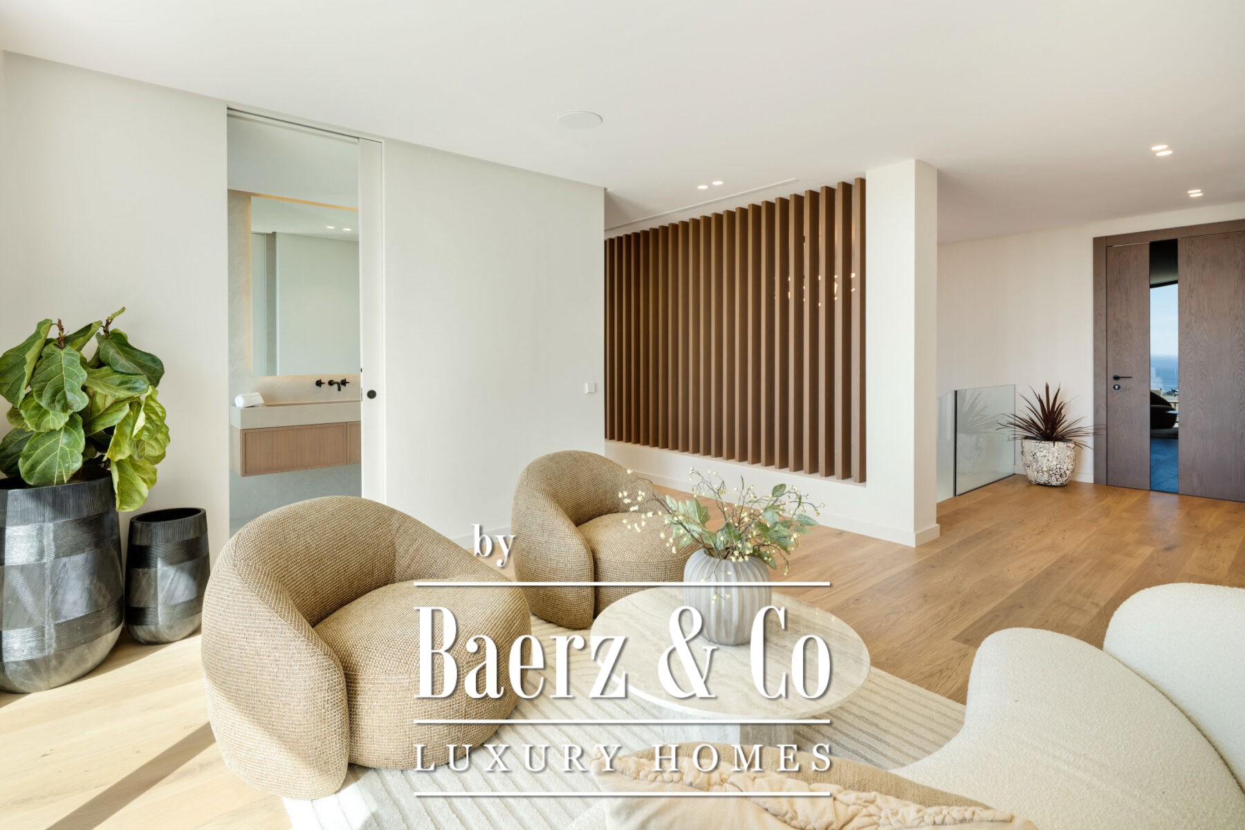 De zuidelijke oriëntatie biedt een spectaculair uitzicht over de Middellandse Zee. In dit afgesloten en veilige domein profiteren bewoners van de geruststellende aanwezigheid van geavanceerde camerasystemen en een geïntegreerd alarmsysteem. Dankzij royale terrassen vloeien binnen- en buitenleven naadloos in elkaar over, waarbij licht en ruimte samensmelten en buitenleven een dagelijks ritueel wordt.