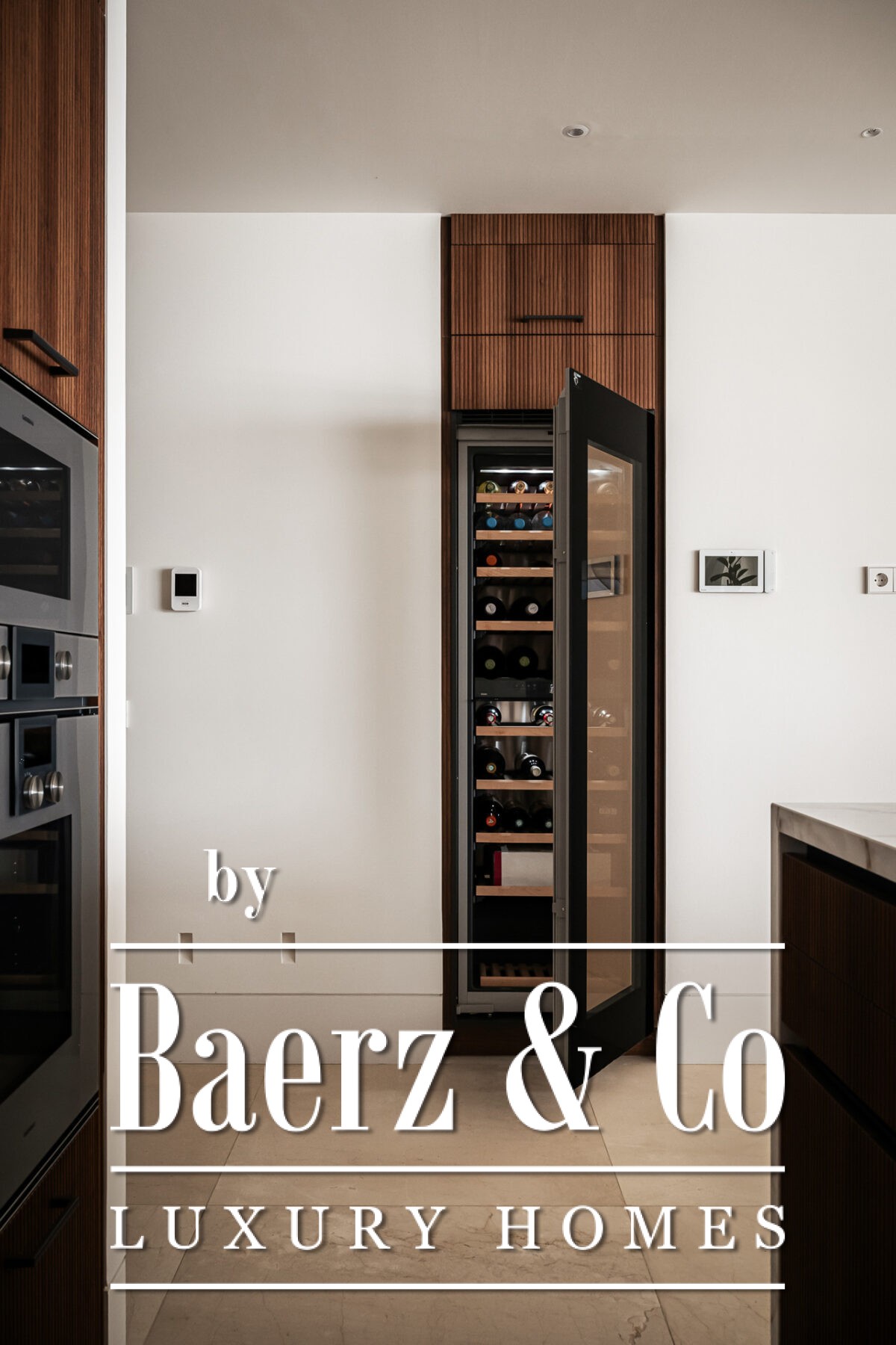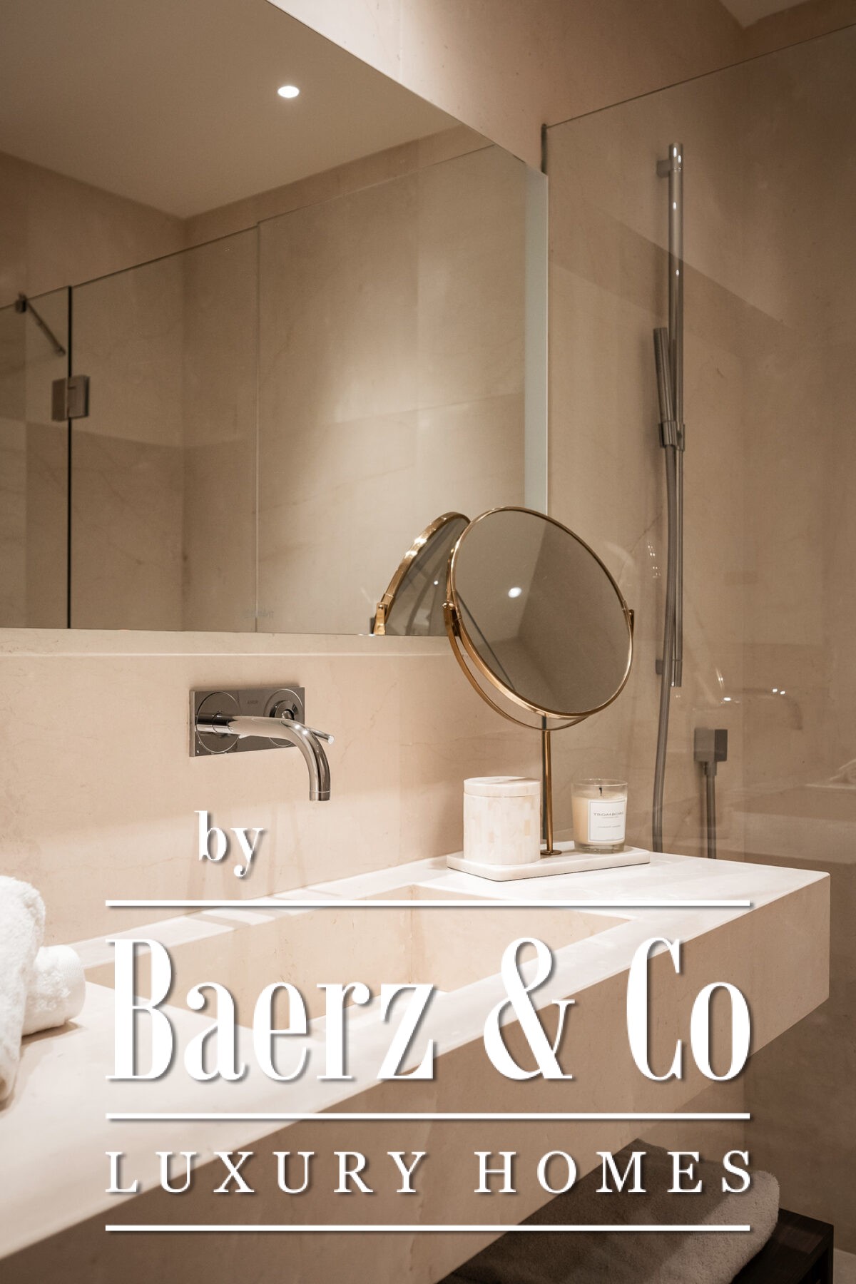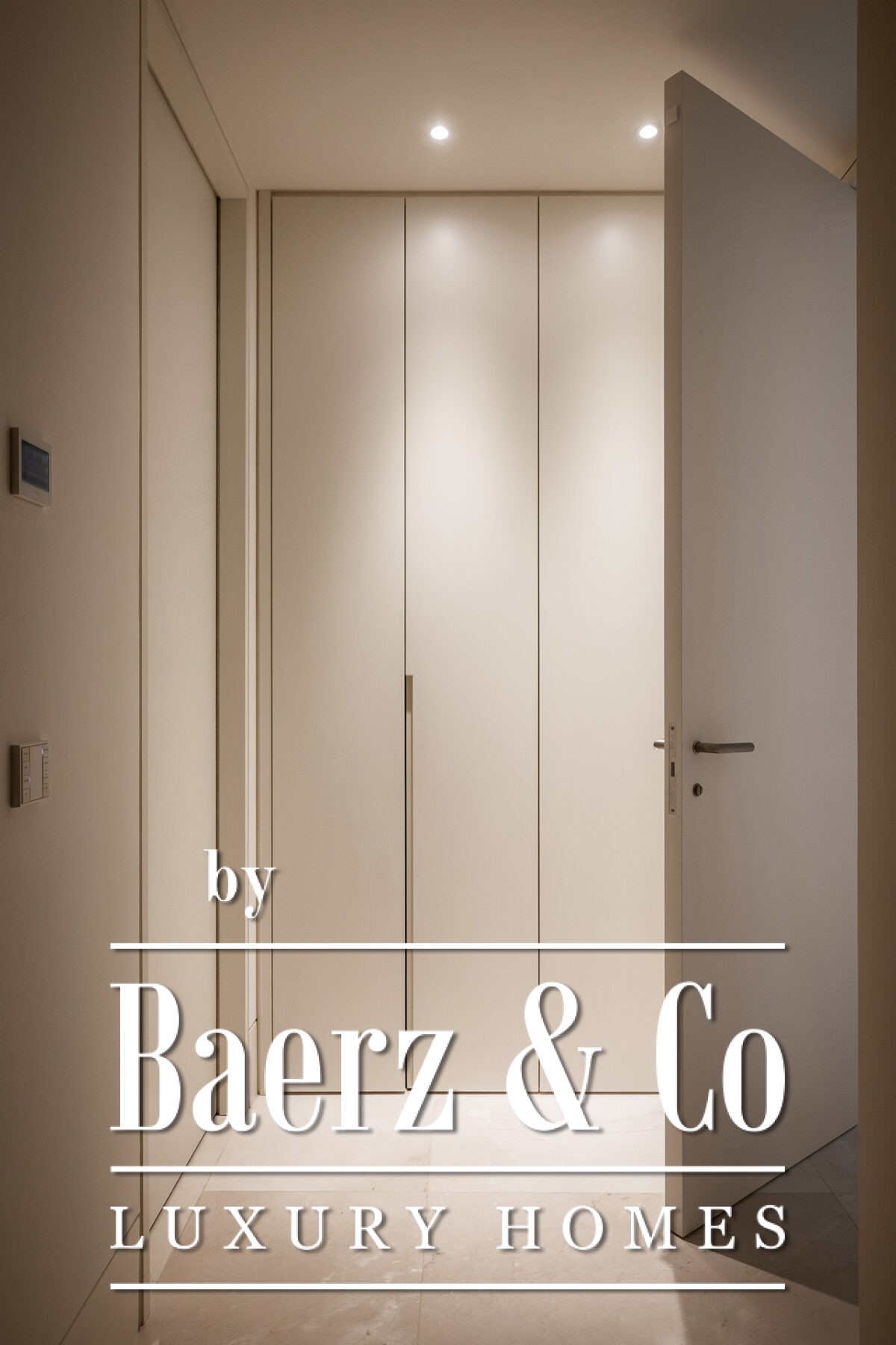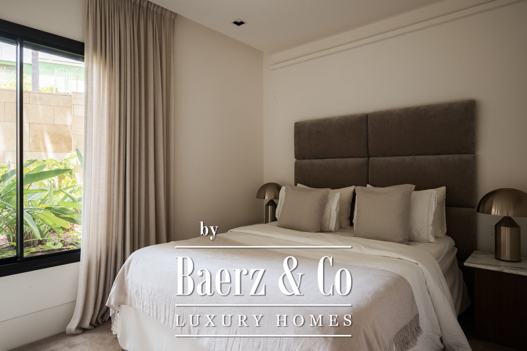 Binnenkomst via een centrale hal leidt tot een indeling die efficiënt het sociale en het privédeel van elkaar scheidt. De open leefruimte vloeit over in een keuken voorzien van Gaggenau en Miele apparatuur, een indrukwekkende wijnkast van vloer tot plafond en volledig automatische beglazing die binnen en buiten naadloos verbindt. In de privévleugel beschikt de master suite over een inloopkast en complete badkamer, aangevuld met twee extra slaapkamers met eigen badkamer en uitzicht op de rustige tuinen. Verdere voorzieningen zijn een wasruimte, domoticasysteem, hoogwaardige materialen door het gehele appartement en twee garageplaatsen met geregistreerde elektrische buggy en berging.
