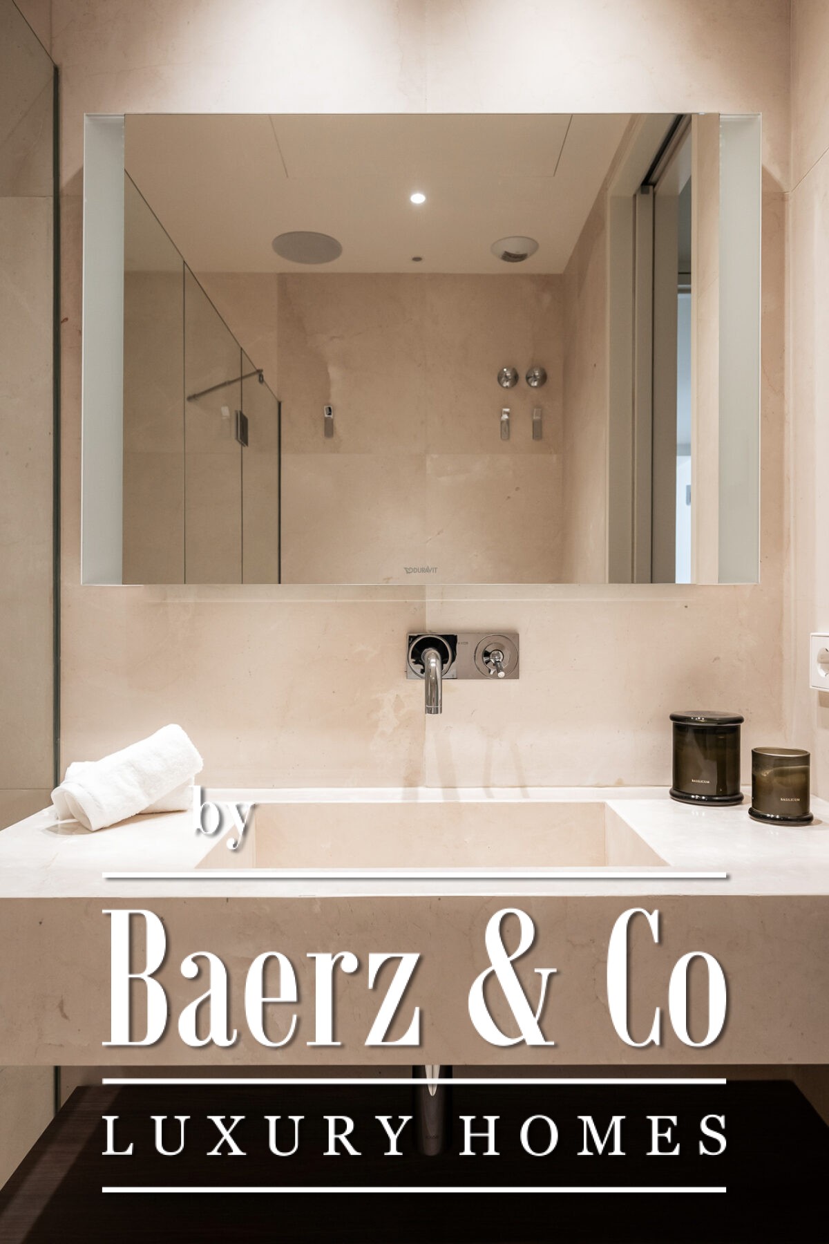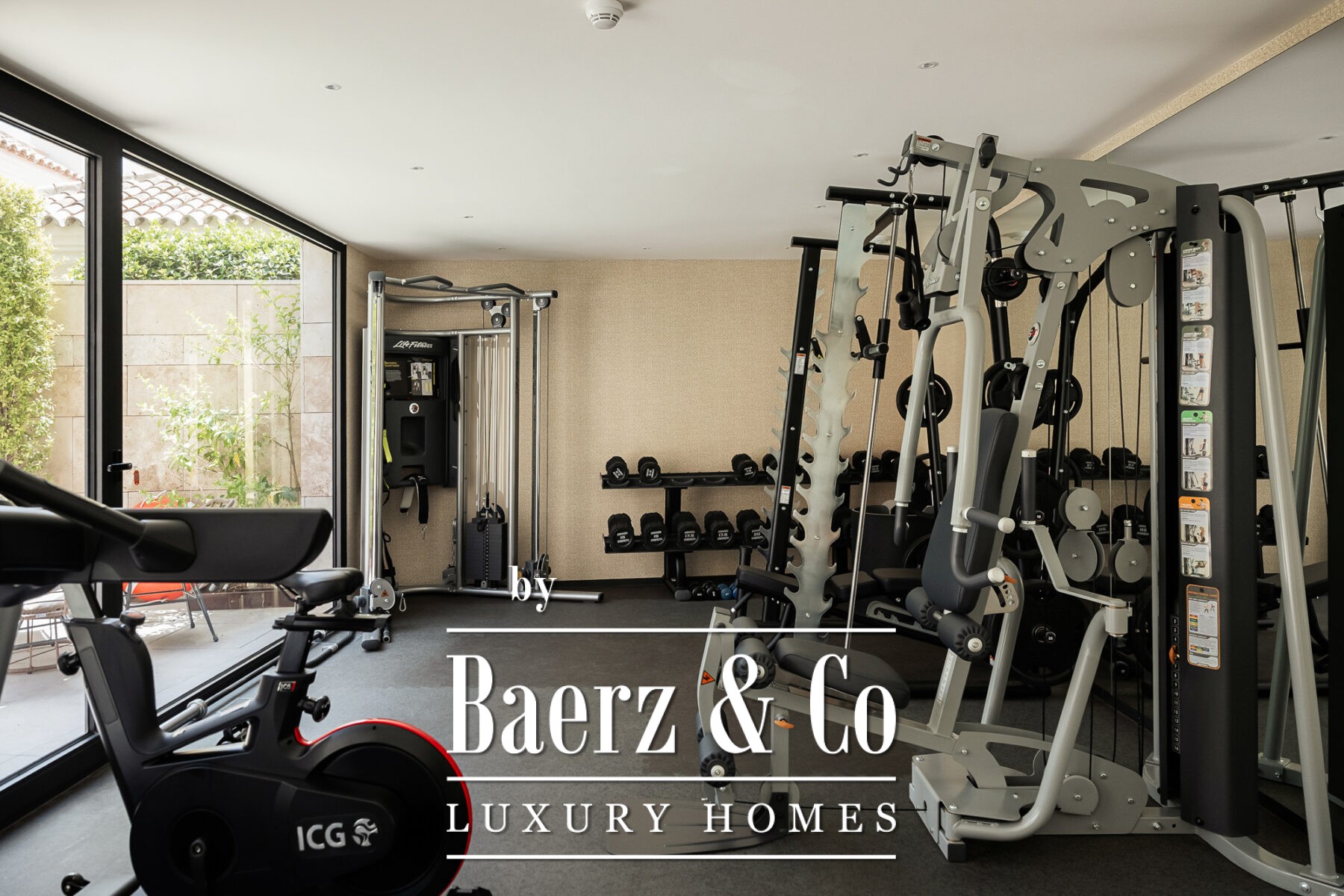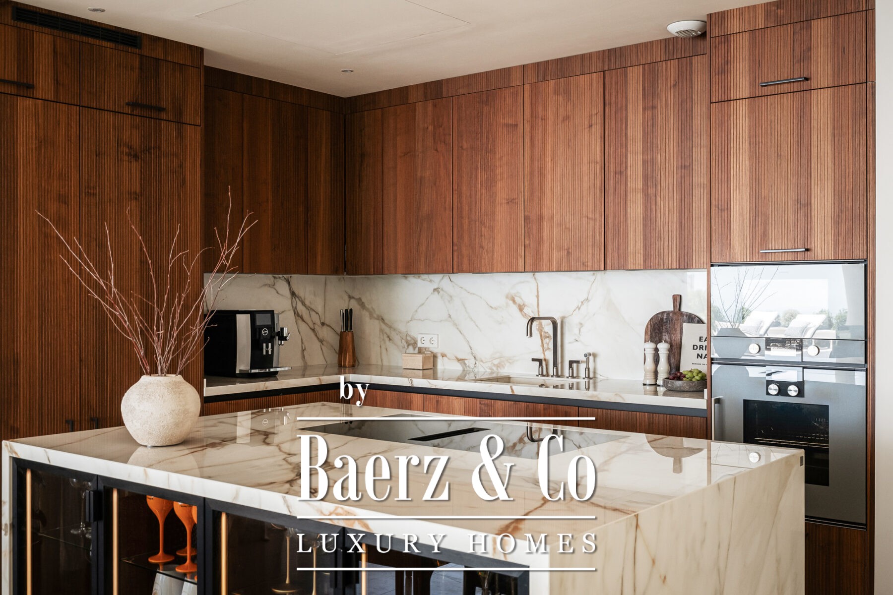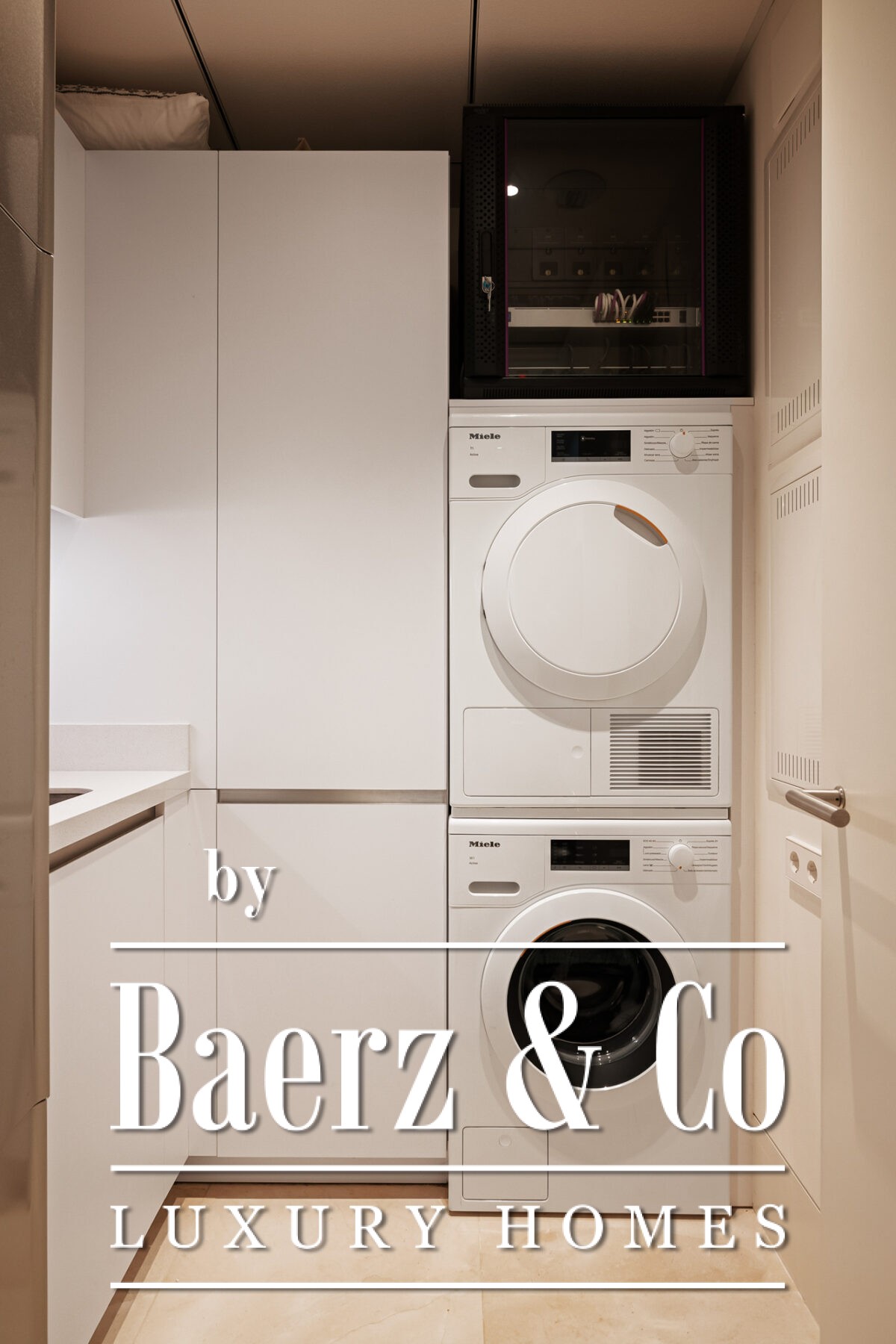 Binnenkomst via een centrale hal leidt tot een indeling die efficiënt het sociale en het privédeel van elkaar scheidt. De open leefruimte vloeit over in een keuken voorzien van Gaggenau en Miele apparatuur, een indrukwekkende wijnkast van vloer tot plafond en volledig automatische beglazing die binnen en buiten naadloos verbindt. In de privévleugel beschikt de master suite over een inloopkast en complete badkamer, aangevuld met twee extra slaapkamers met eigen badkamer en uitzicht op de rustige tuinen. Verdere voorzieningen zijn een wasruimte, domoticasysteem, hoogwaardige materialen door het gehele appartement en twee garageplaatsen met geregistreerde elektrische buggy en berging.