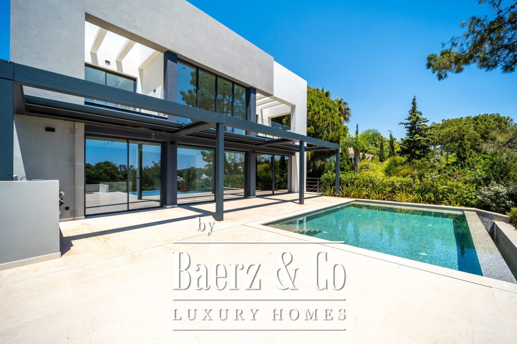 Deze eigentijdse villa in Marbella bepaalt het tempo van het moderne mediterrane leven en combineert expressieve architectuur met een subliem comfort in Hacienda Las Chapas. De nieuw gebouwde villa omvat 545 m² verdeeld over drie niveaus, gelegen op een royaal perceel van 1.344 m². Het ontwerp haalt overvloedig natuurlijk licht binnen via grote kamerhoge raampartijen, waardoor de luchtige interieurs naadloos aansluiten op meer dan 100 m² terras, deels beschaduwd door een bioklimatische pergola en daardoor het hele jaar rond te gebruiken.